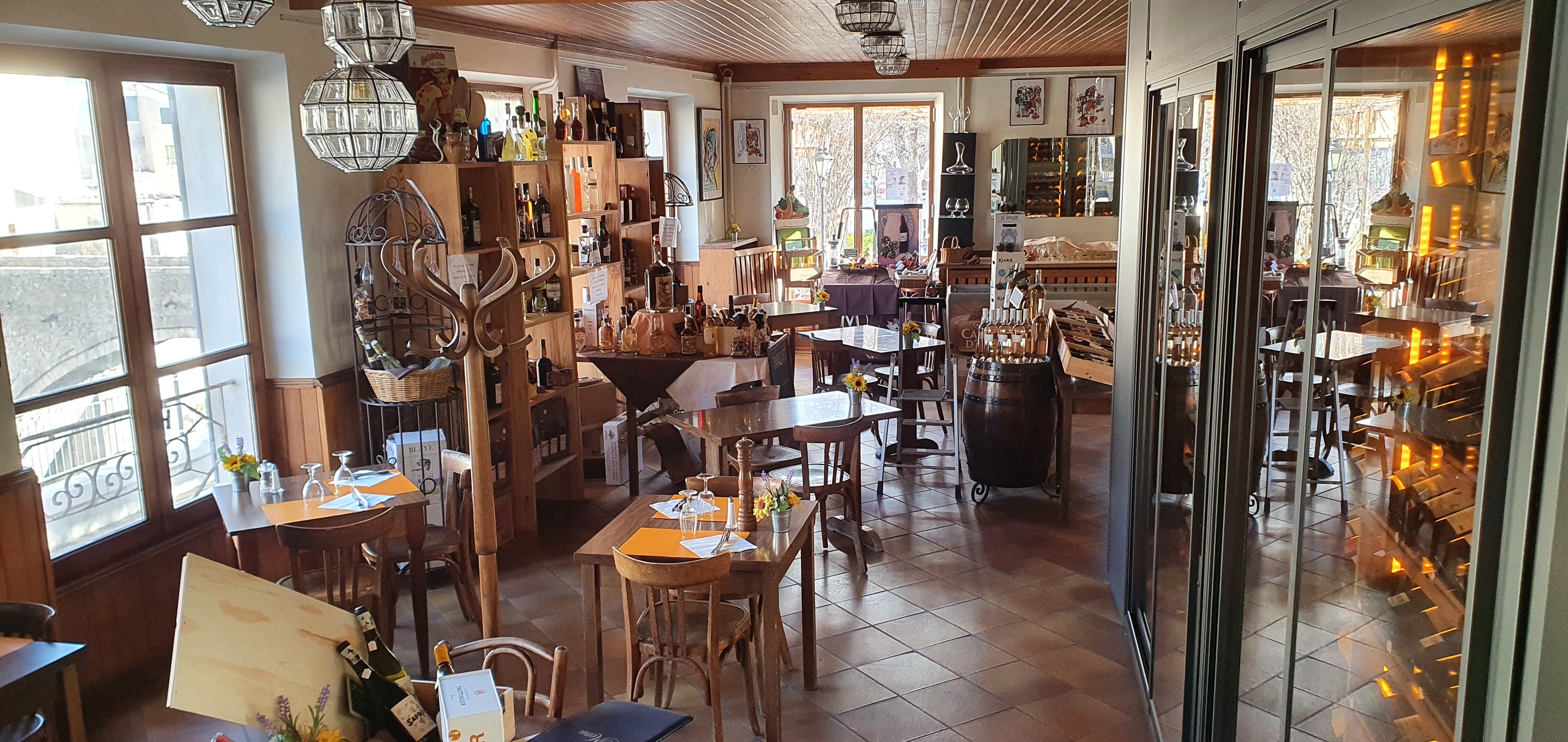Halte sur la route vers les lacs ,présent aimable tout au long de l'année ( hors saison le seul! Sur des km et tant mieux il est sympathique ;-) pour une pause snack un café une petite glace mais surtout de très bonnes tartes salées et sucrées un petit rosé bien frais super (caviste ,bières, coffret cadeaux hyper sympa) on apprécie sa jolie terrasse.