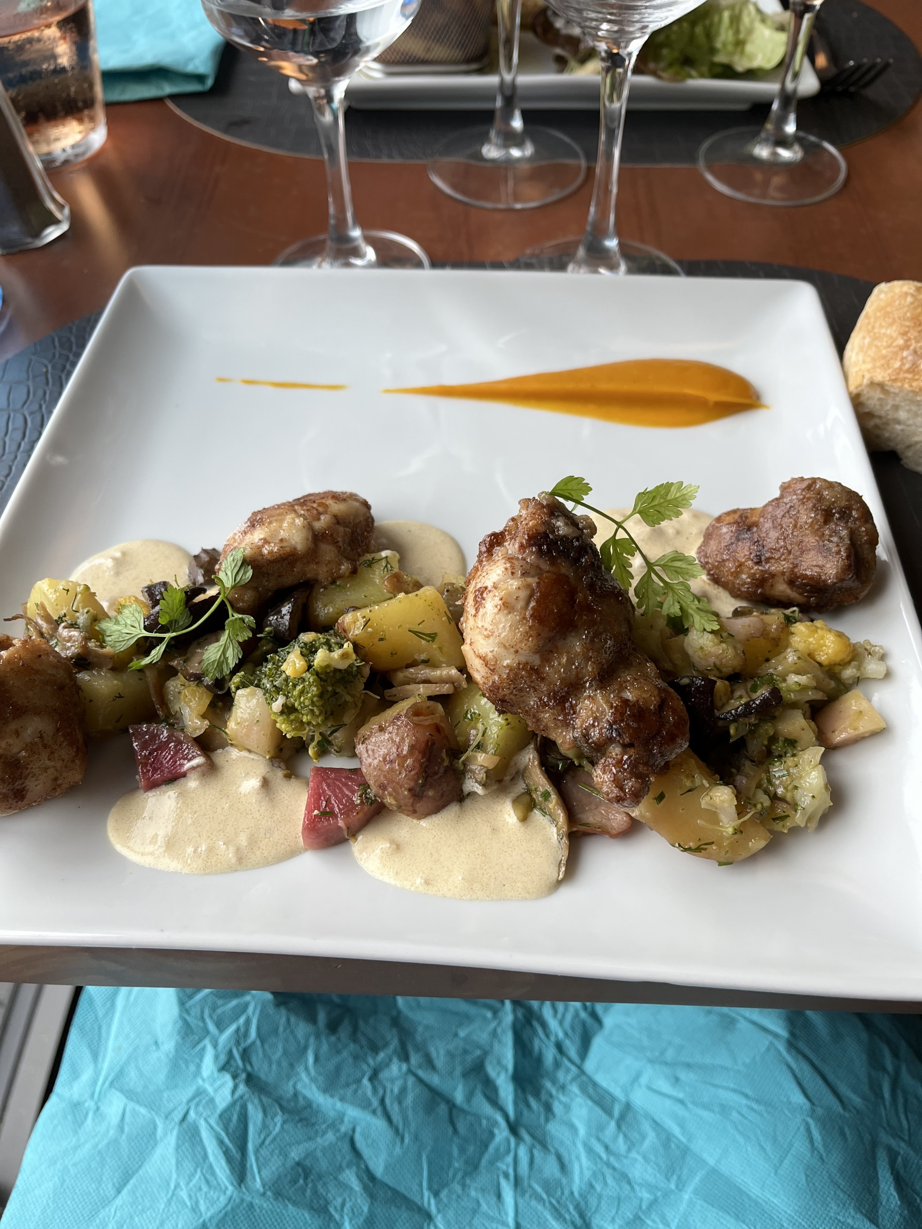 Nous avons mangé au restaurant du port,la cuisine y est raffinée et bien présentée,un vrai régal pour les yeux et les papilles,les employés y sont sympas,je vous recommande ce lieu en terrasse,la vue sur le port est splendide.
