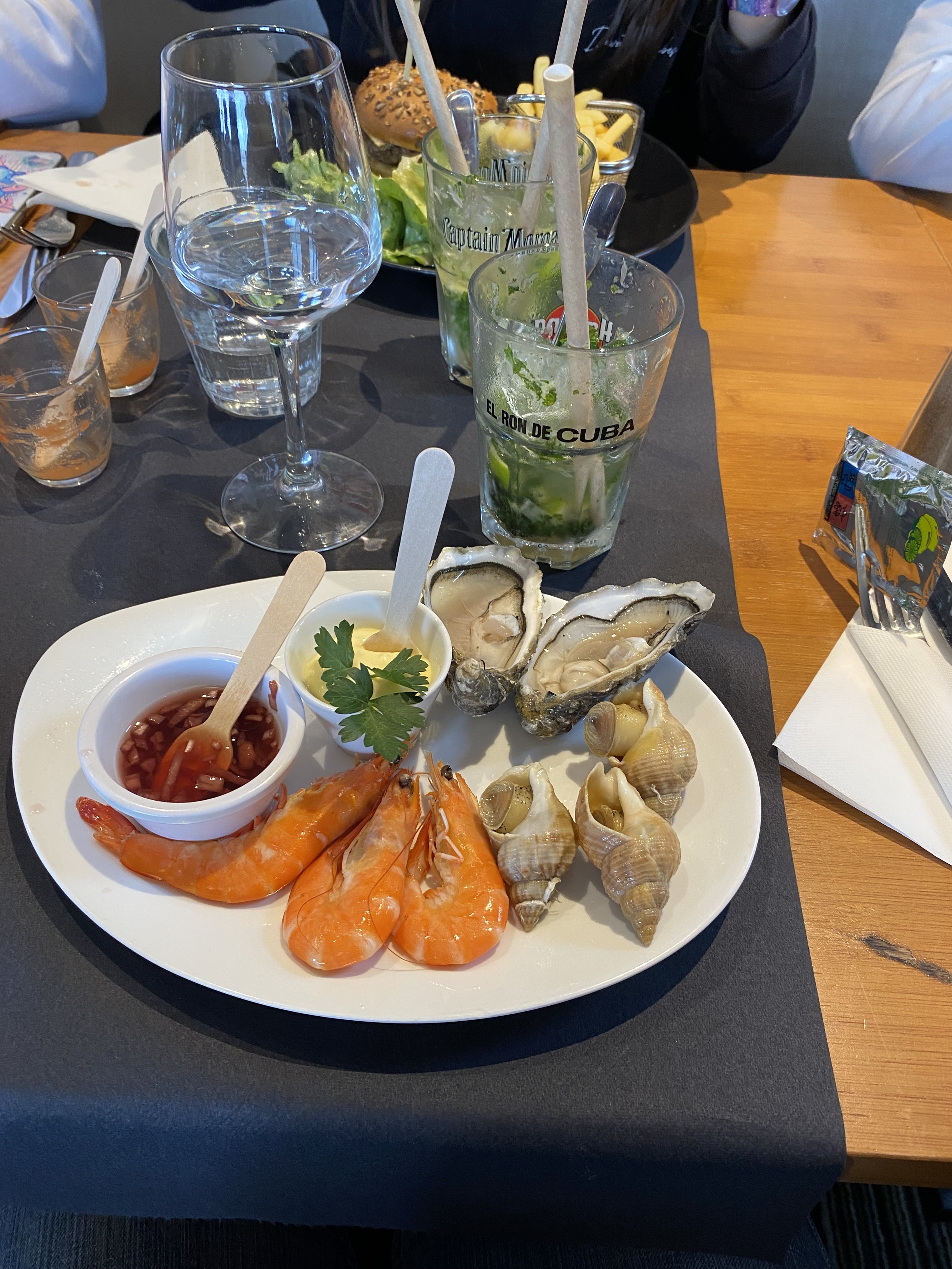 Fruits de mer absolument délicieux, je me suis régalée ! Le plateau pour une personne est juste parfait, il y a largement ce qu'il faut. Le personnel a été attentionné. Dessert un peu écoeurant mais assez bon.