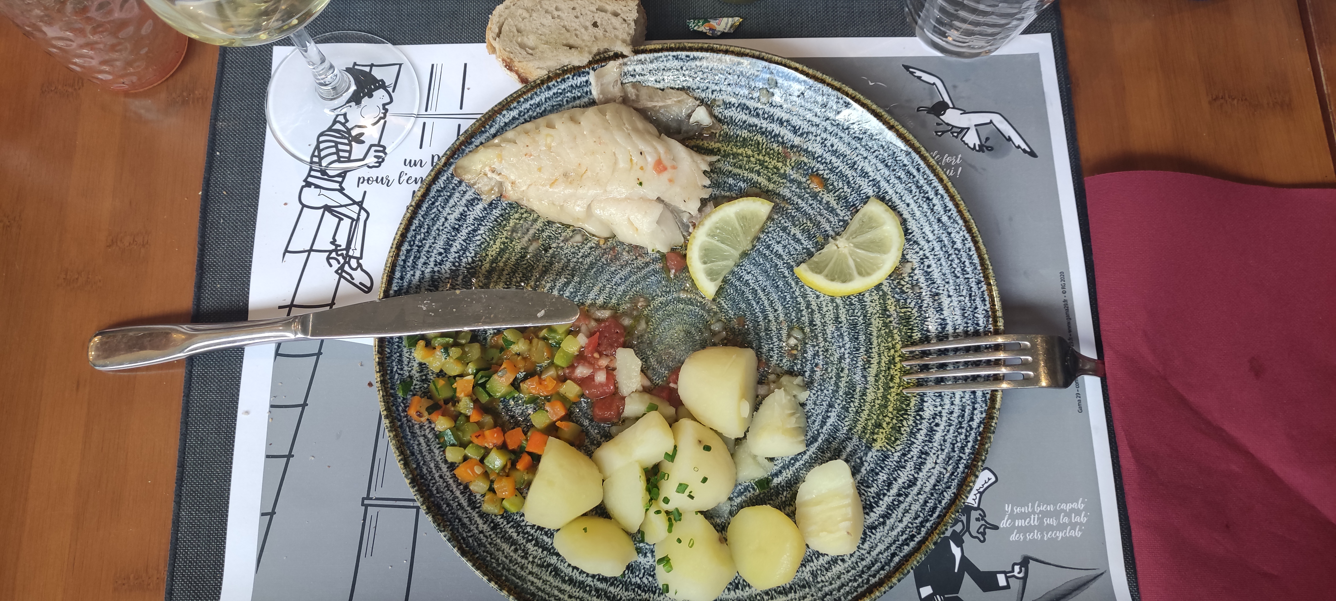 Nous avons passé une bonne soirée dans ce restaurant où les serveurs sont vraiment très gentils. Sur la photo une cotriade de poisson.