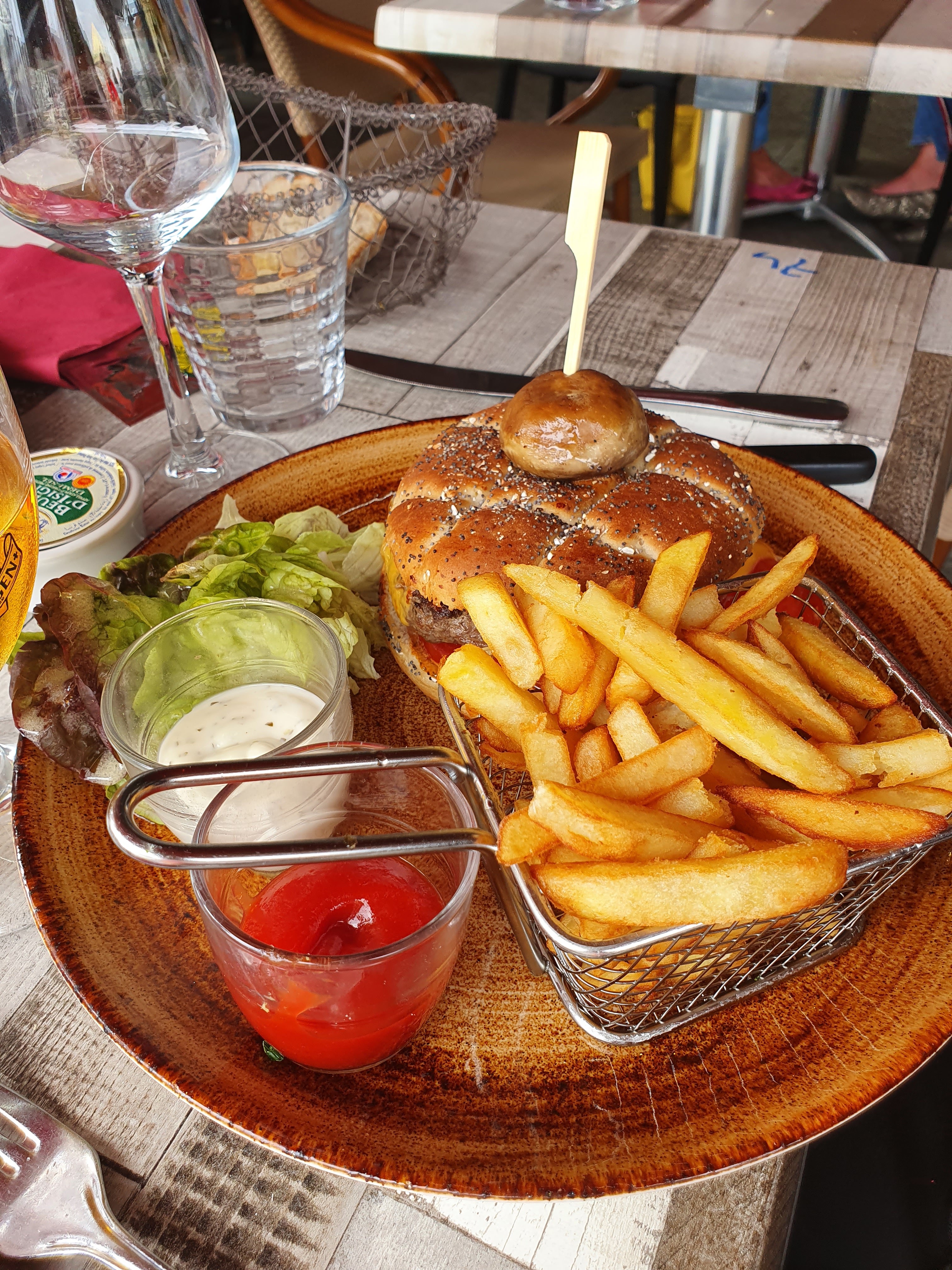 Par suggestion je met deux étoiles L'entrée gourmande bien servi, excellente Le plat bof, manque de saveur Brochette de Saint Jacques avec de la pomme, non signalé, avec de la pauvre bonne de terre perse il qui me rappelle les pommes de terre de la cantine Par contre un ami a pris un burger magnifique Le serveur aucun sourire, je peut comprend qu'il soit pas bien. Mais attention Vraiment pas agréable Perso je n'aurais mis qu'une étoile Bonne appétit