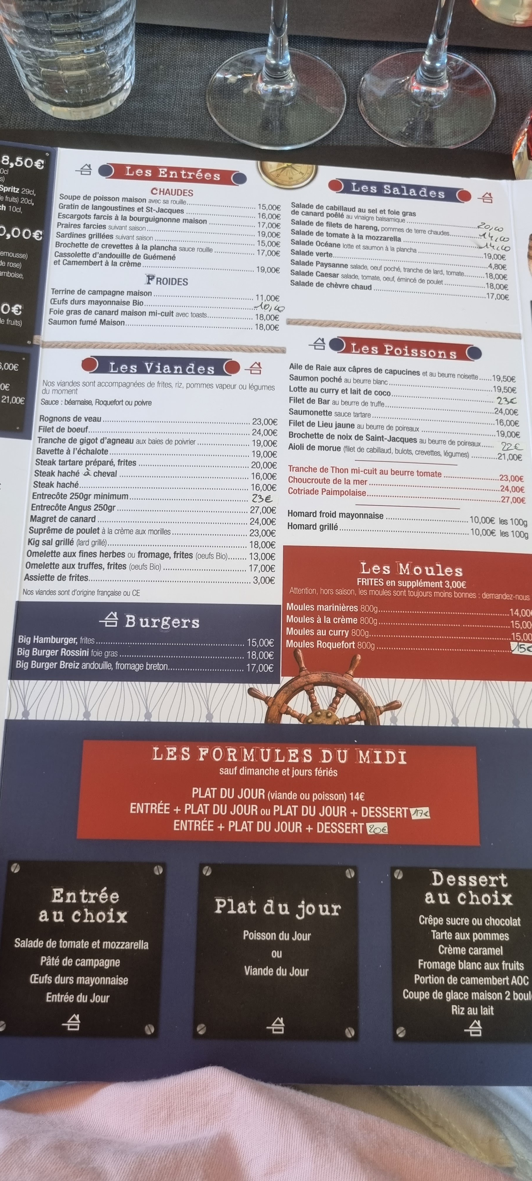 ✅ •Bon repas, très belle salle et serveurs très sympa. • Formule du midi très intéressante, 20€ entrée, plat du jour, dessert. • Bon dessert, coupe de glace avec des fruits, bonne mousse au chocolat. • Servis très rapidement. • Toilettes propres, table a langer. ⛔ • La carte dans la rue n'affiche pas les mêmes prix que celle qu'on nous donne. • Chose la plus ettonante est que les moules sont servies sans frites... Qui sont en supplément pour 3€ ! Ce qui fait des moules frites à 17€, les frites ne sont pas si bonne, elles sont bourratives il y a certainement un soucis sur le choix de la pomme de terre si celles ci sont faites maisons. Même sans frites on retrouve son compte avec les 800g. • Les basiques comme le steak haché sont à un prix excessif (16€)