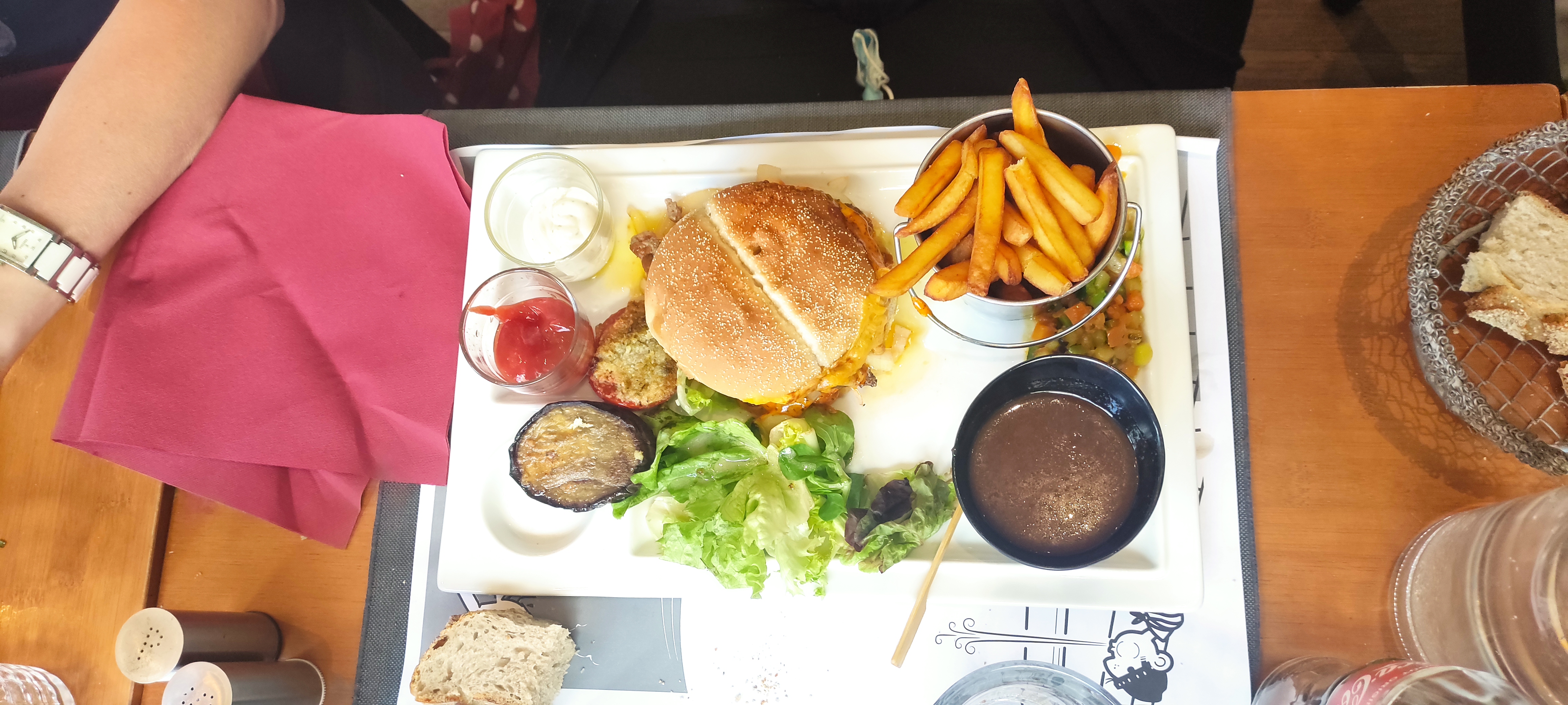 Plats bons, de bonne qualité, un soucis de connaissance des cuissons des steaks des burgers ( un bleu s'est transformé en à point et un à point en charbon) pour le reste amabilité plus qu'à revoir de la part de la responsable. Les 2 petits jeunes qui ont assuré le reste du service ont été très attentionnés.