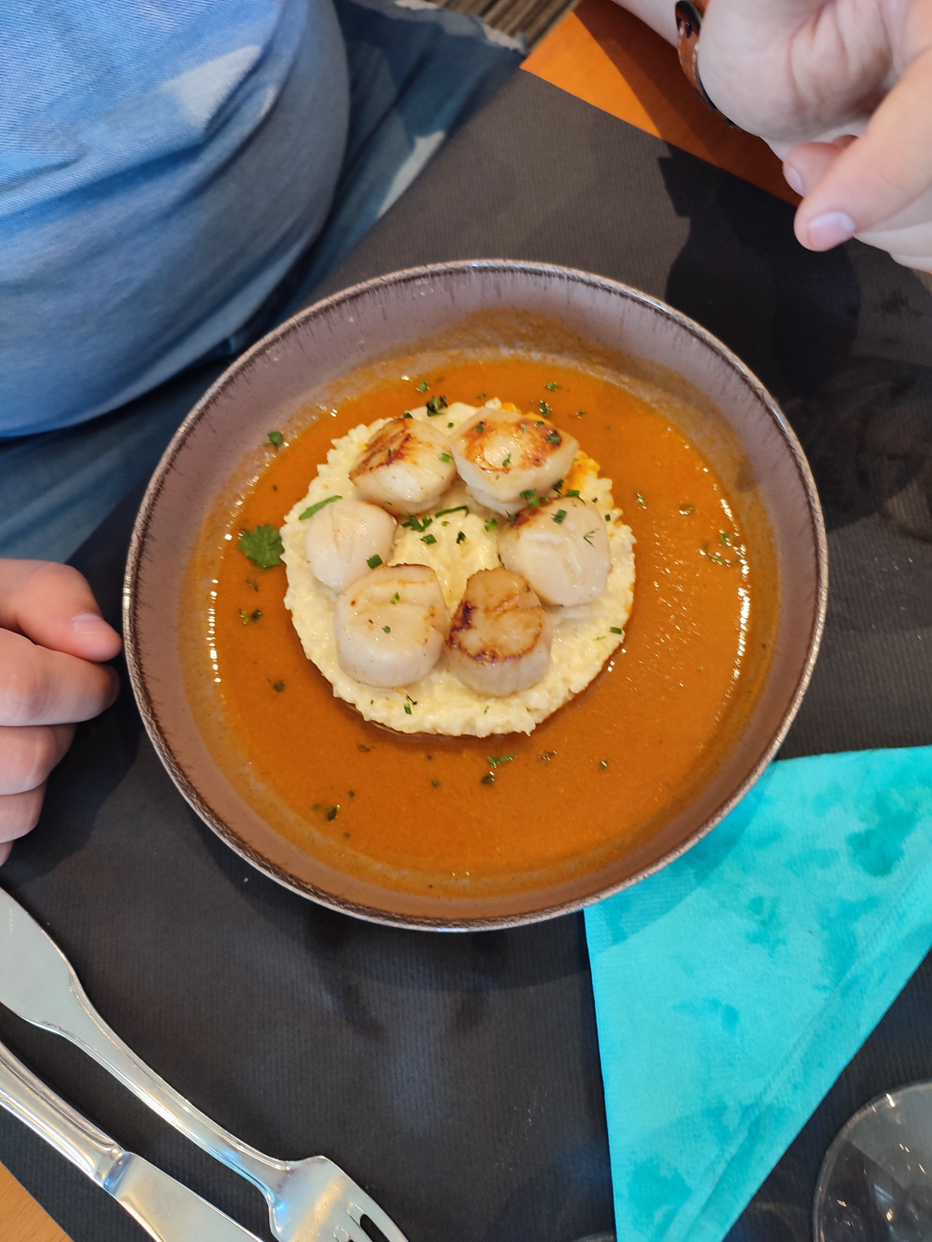 Nous sommes venus manger hier soir, produits exceptionnels, brochette de Saint Jacques cuite à la perfection. Nous avons passé un agréable moment, les serveurs sont très sympathiques et attentionnés. Félicitations au chef et à sa brigade. 👍 et accueil très chaleureux.