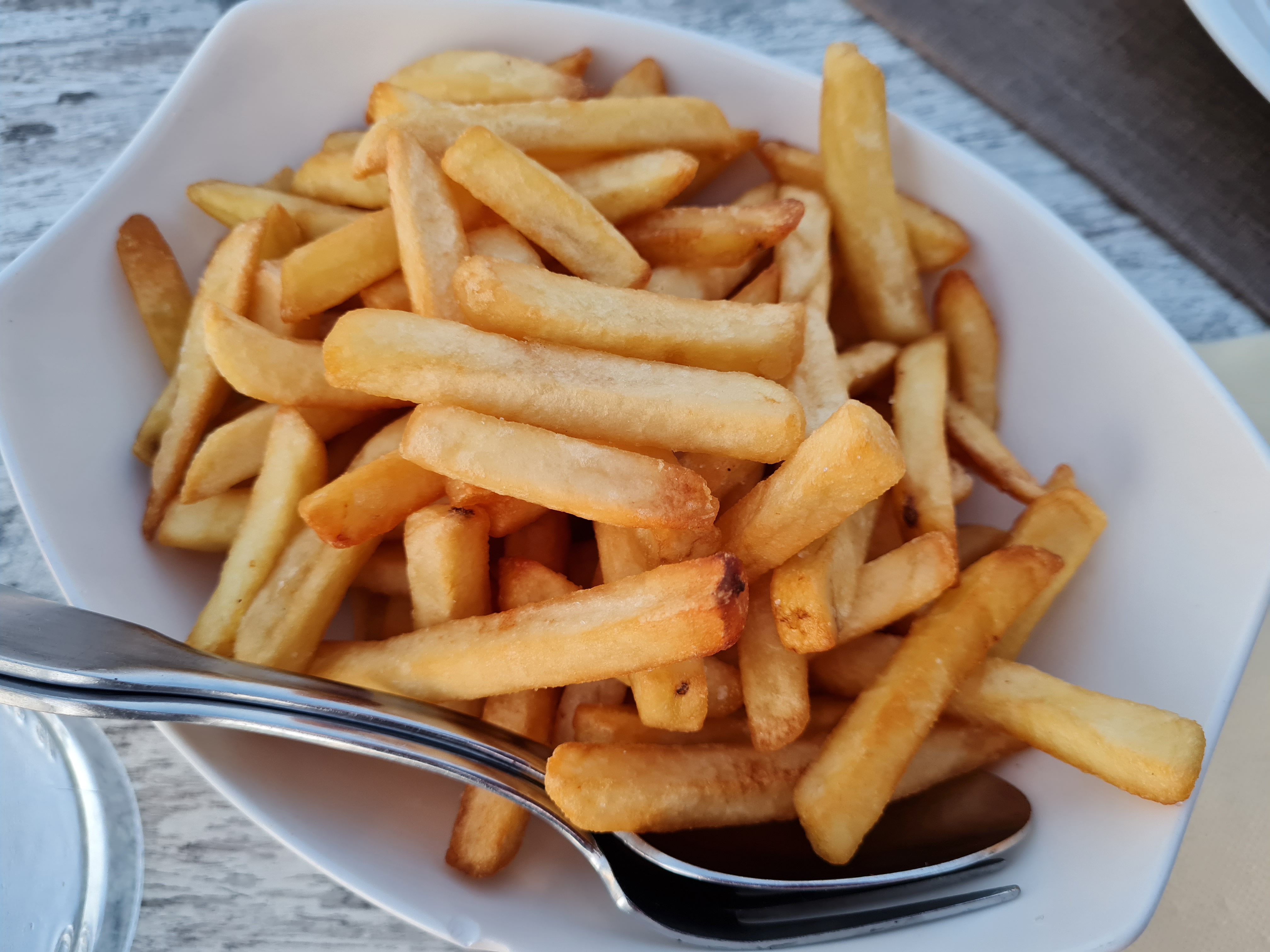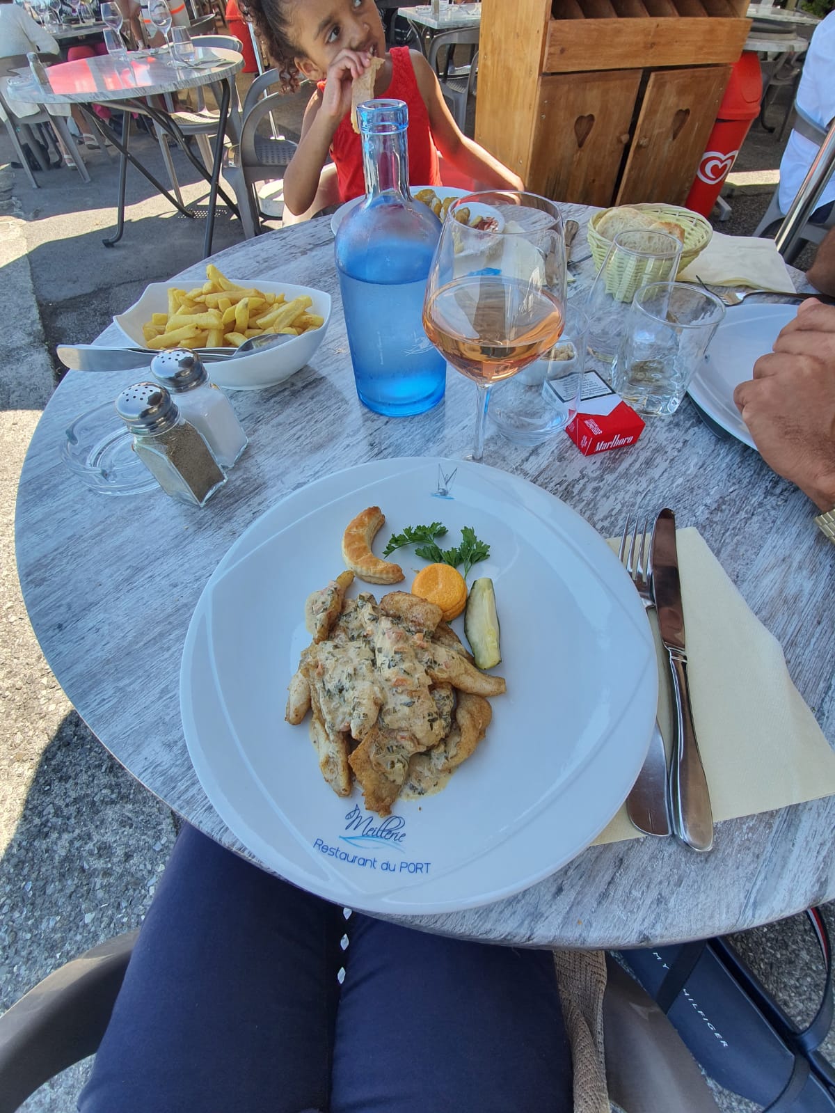 Belle friture de filets de perches à un prix raisonnable. Excellent vin rosé comme accompagnement.