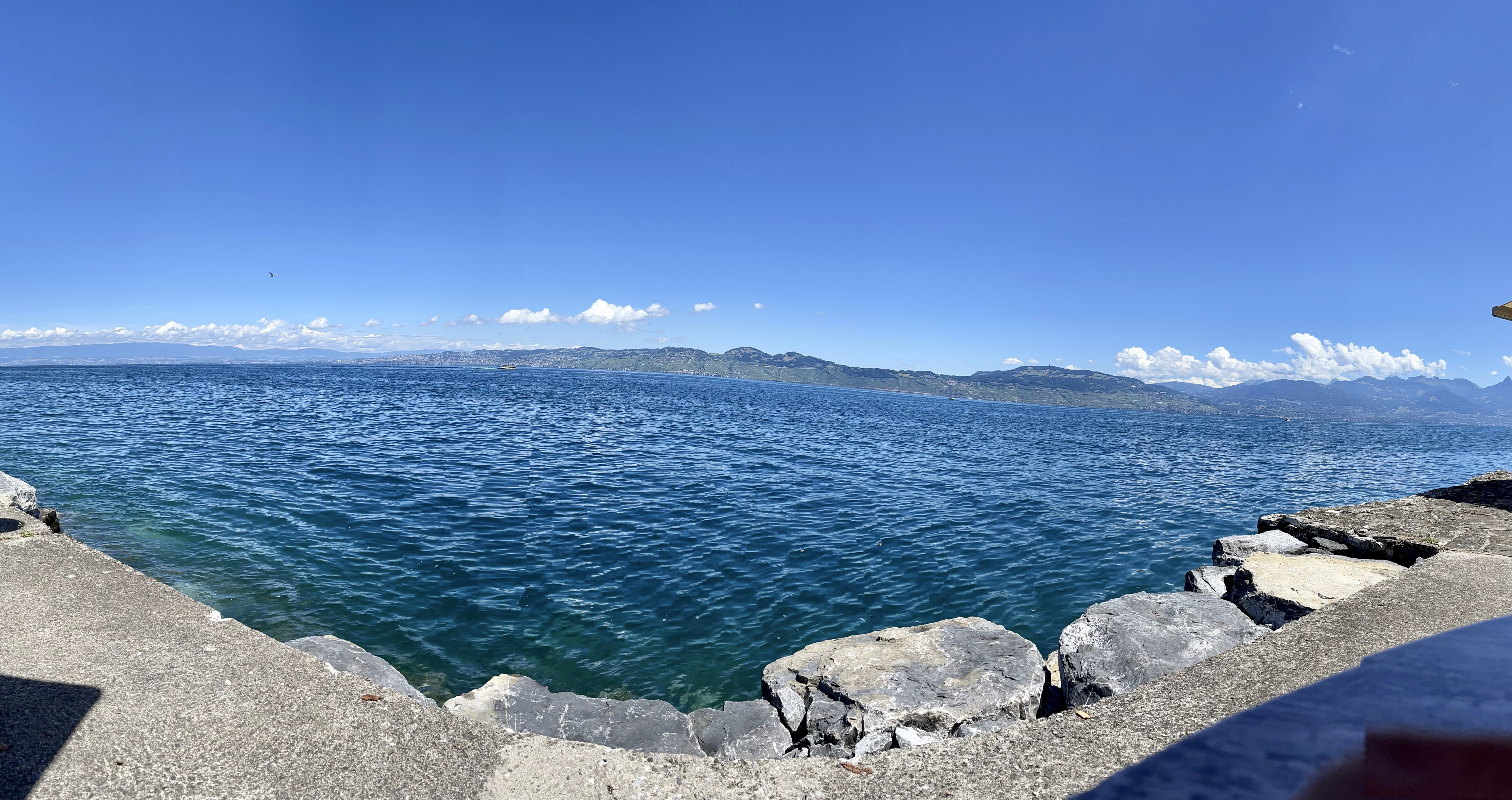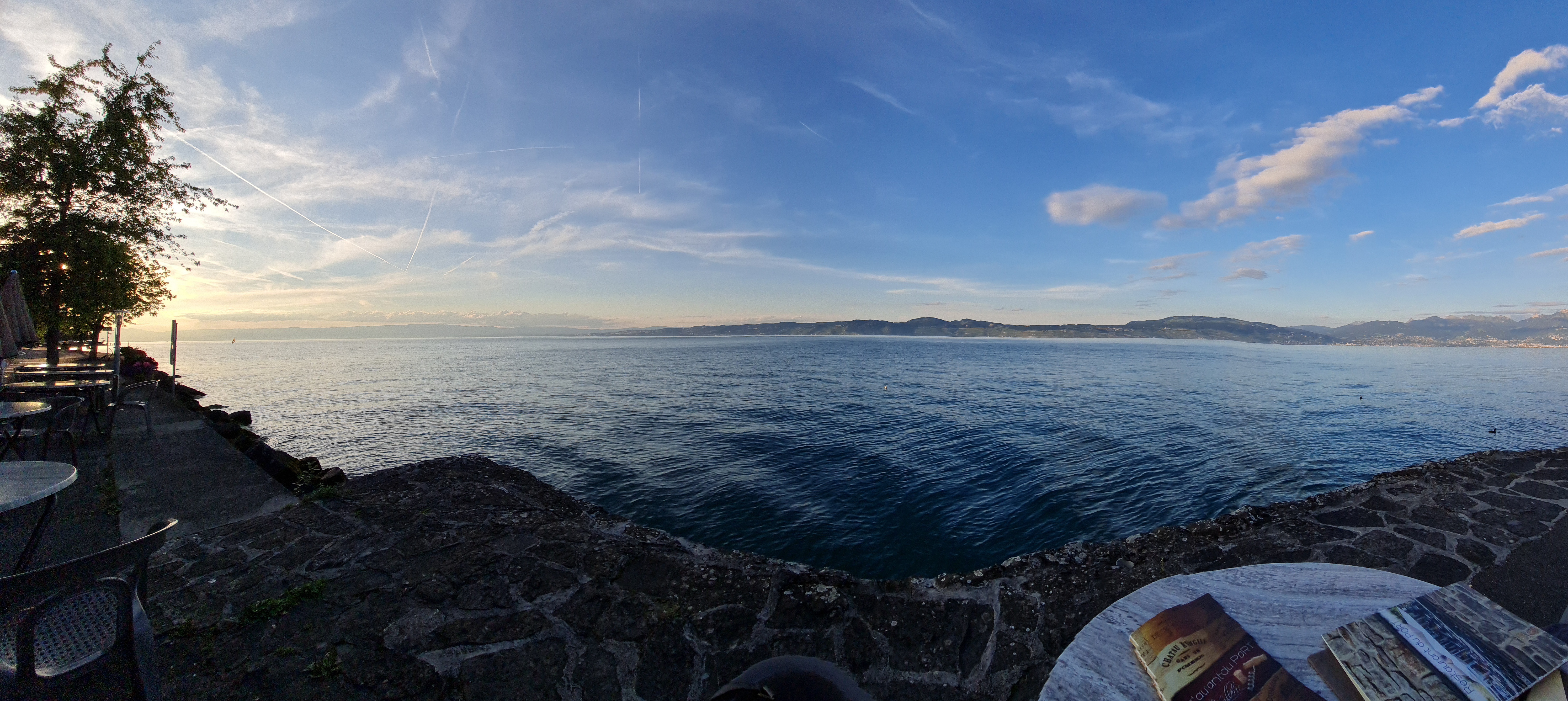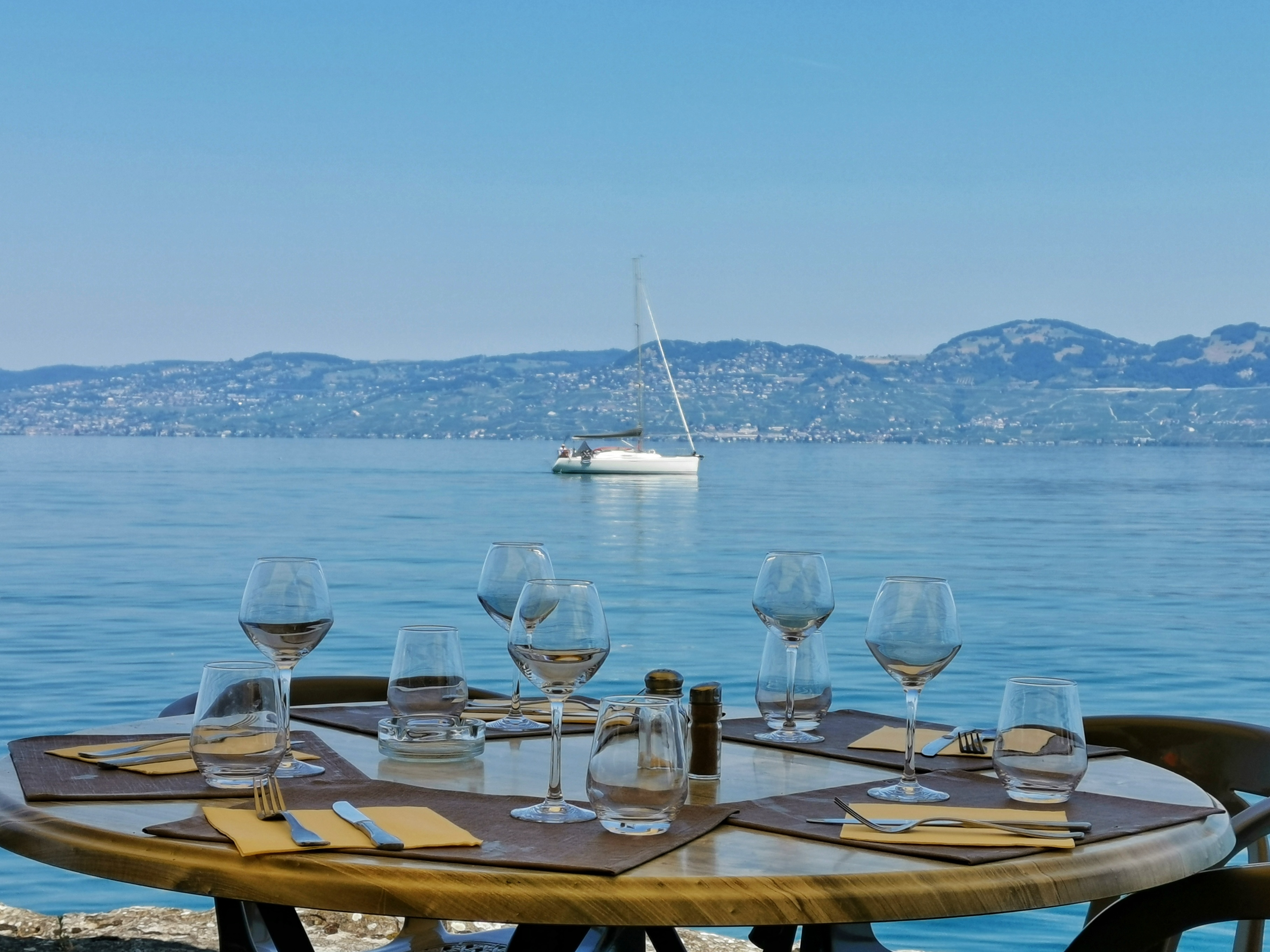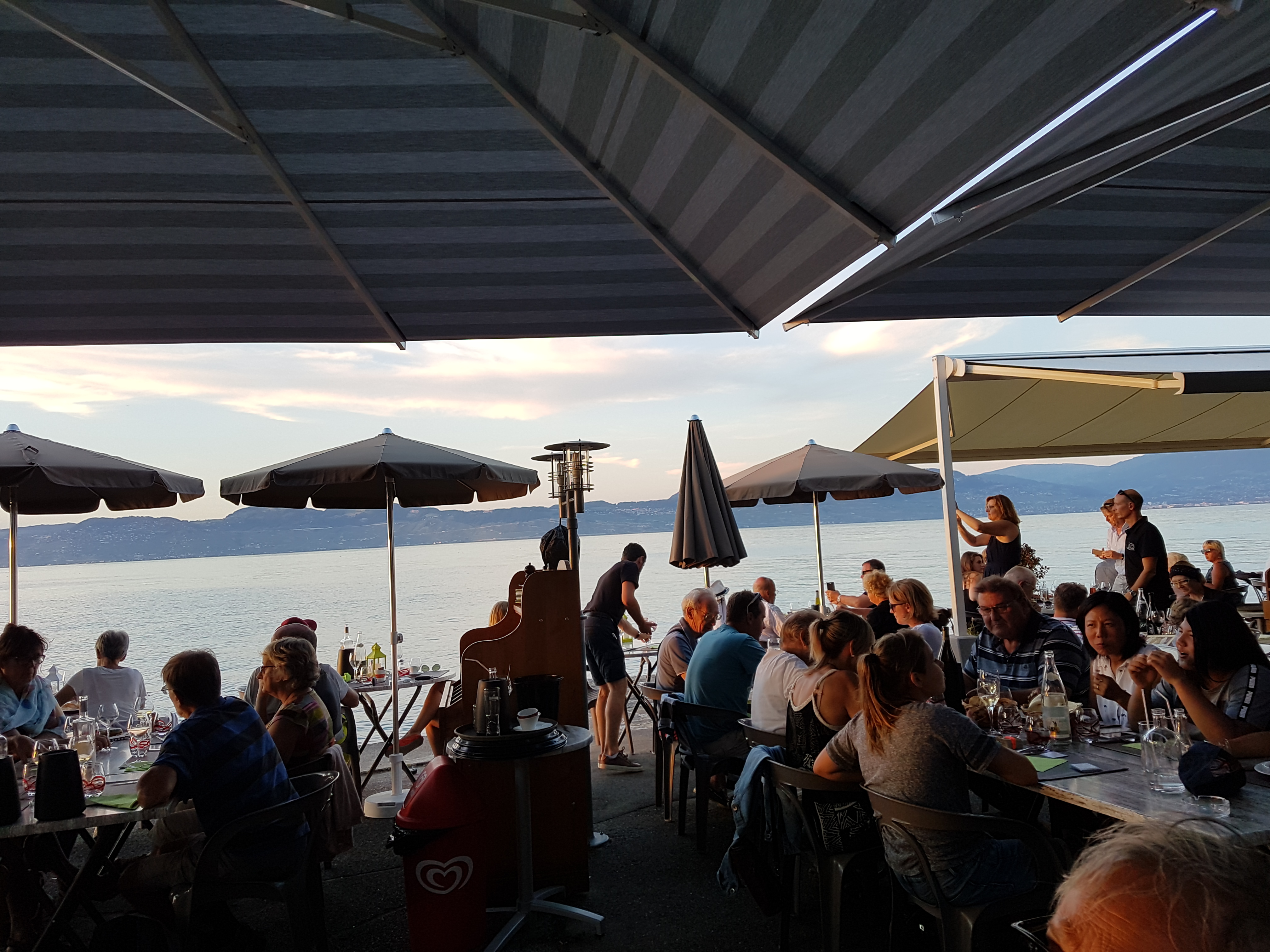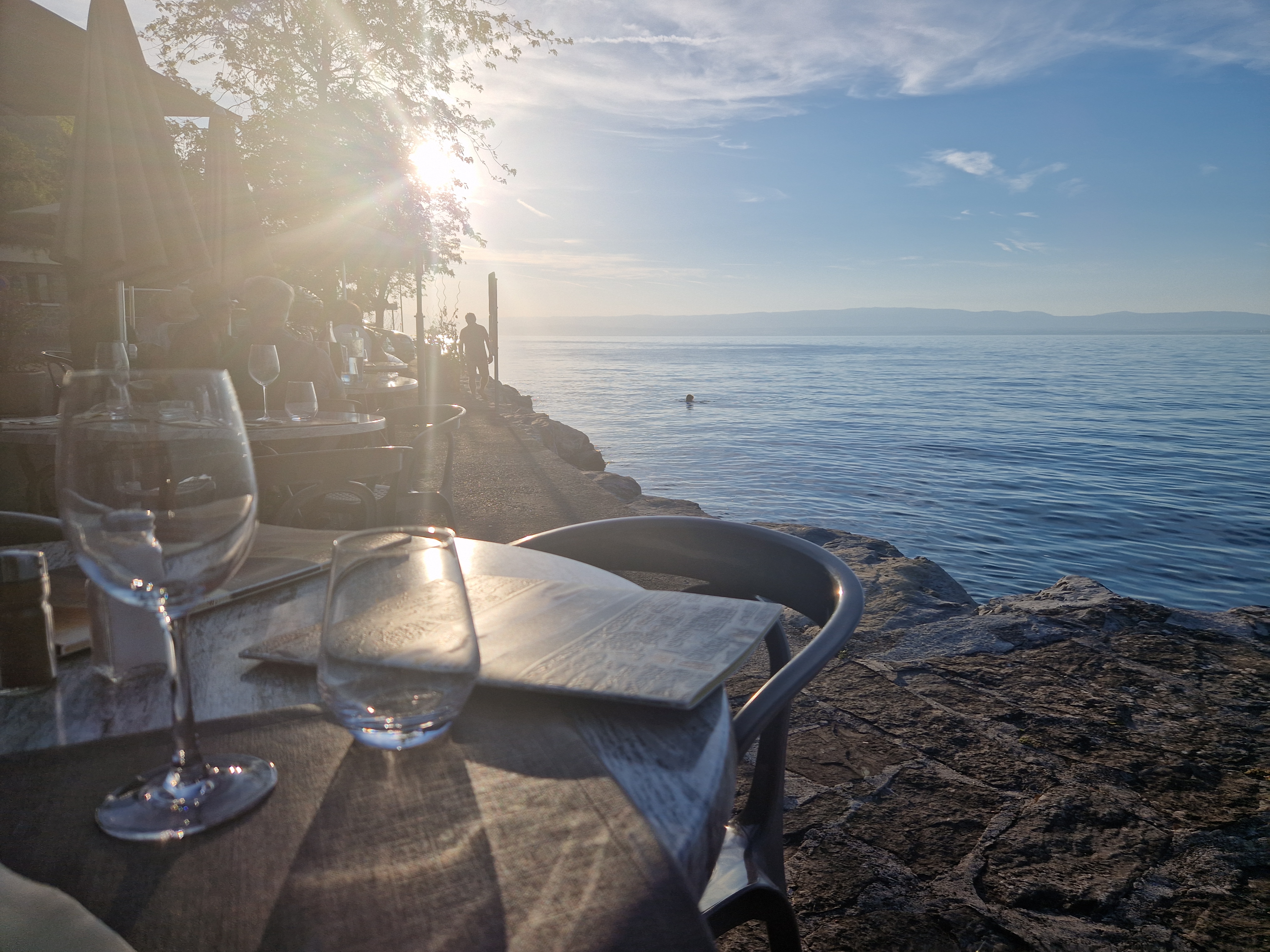 Bel endroit, les pieds dans l'eau, vue, sur la côte suisse, cuisine remarquable, service impeccable.