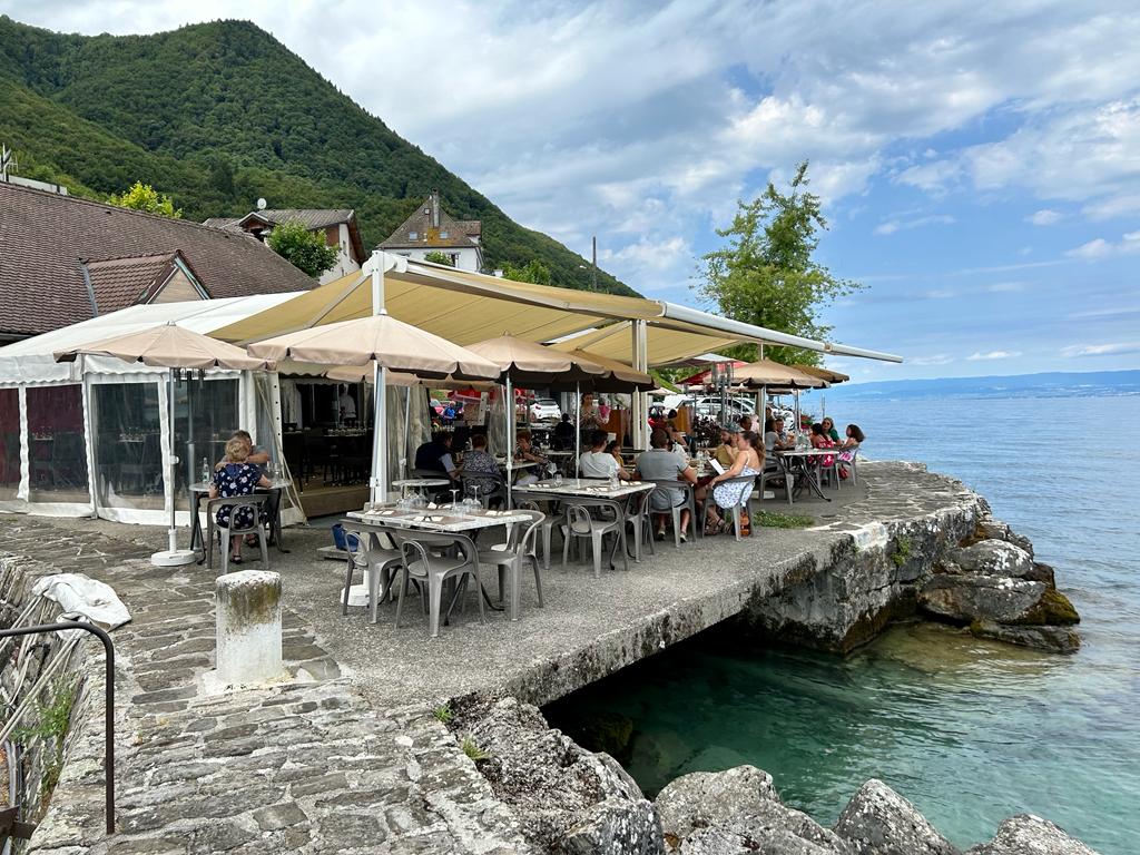 Une magnifique terrasse au bord du lac Leman pour déguster de savoureux filets de perche du Leman pêchées le matin même. Une halte obligatoire si vous aimez les poissons. Les poissons du lac sont délicieusement préparés.