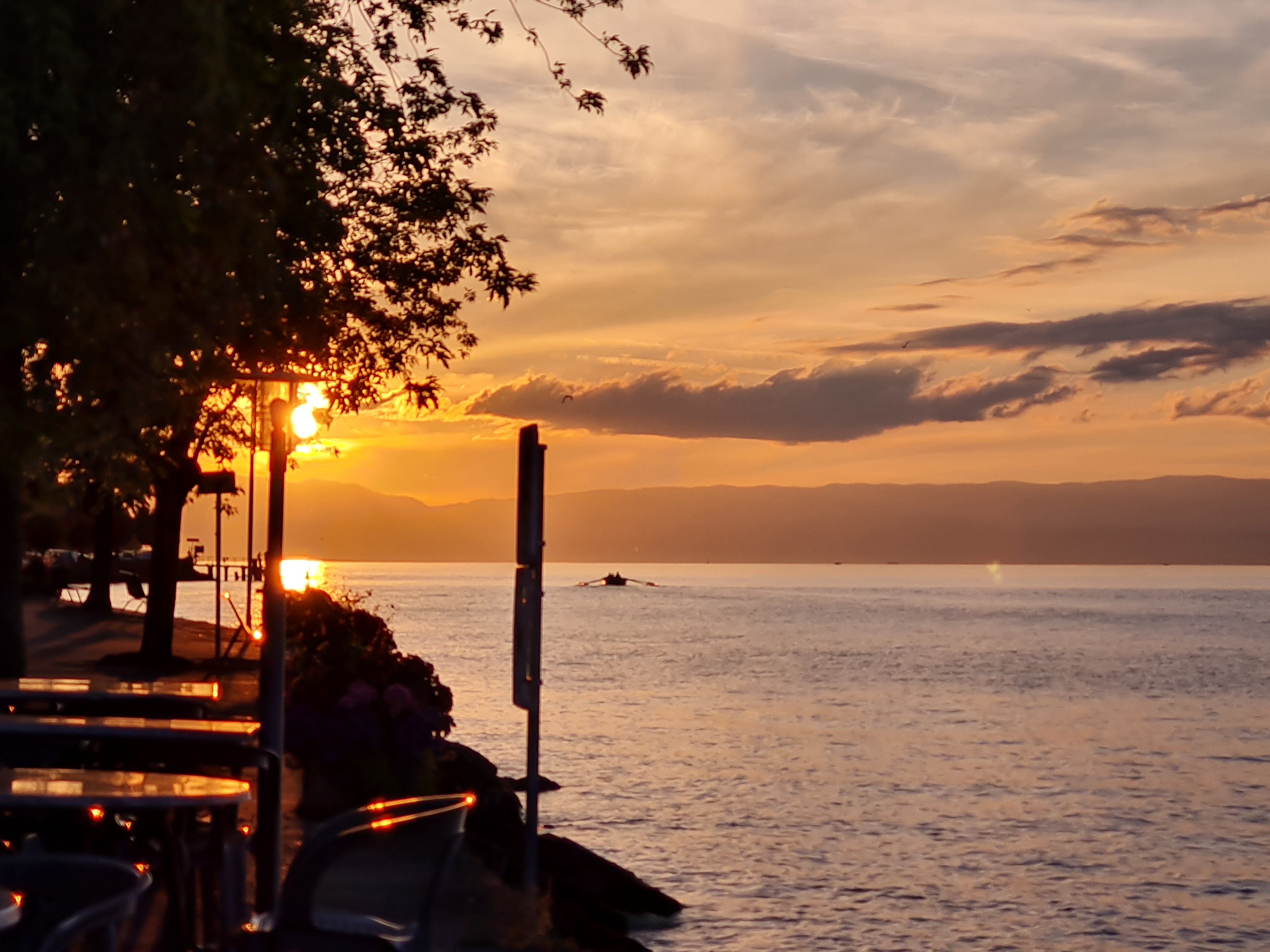 Le cadre est très agréable avec une vue magnifique du lac au coucher du soleil et le petit port. Les perches et féras sont délicieuses, on aurait aimé que des légumes soient proposés à la place des frites.