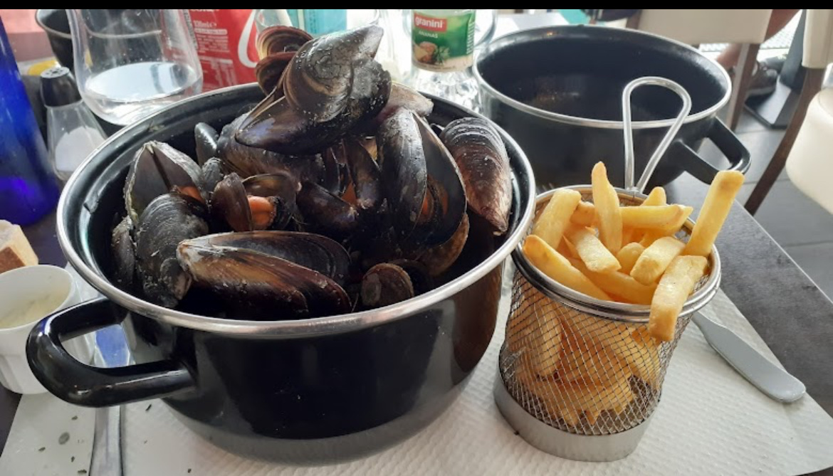 Nous avons été déçu ! Nous sommes venues pour trois moules frites, mais il en restait seulement que pour deux personnes. Nous avons trouvé un petit poisson dans nos moules ! Belle découverte en prenant nos moules, avec comme argument « ça se mange, il est tombé dans les moules en cuisine» …. C’est dommage sinon service très bien malgré le peu de choix dessert.