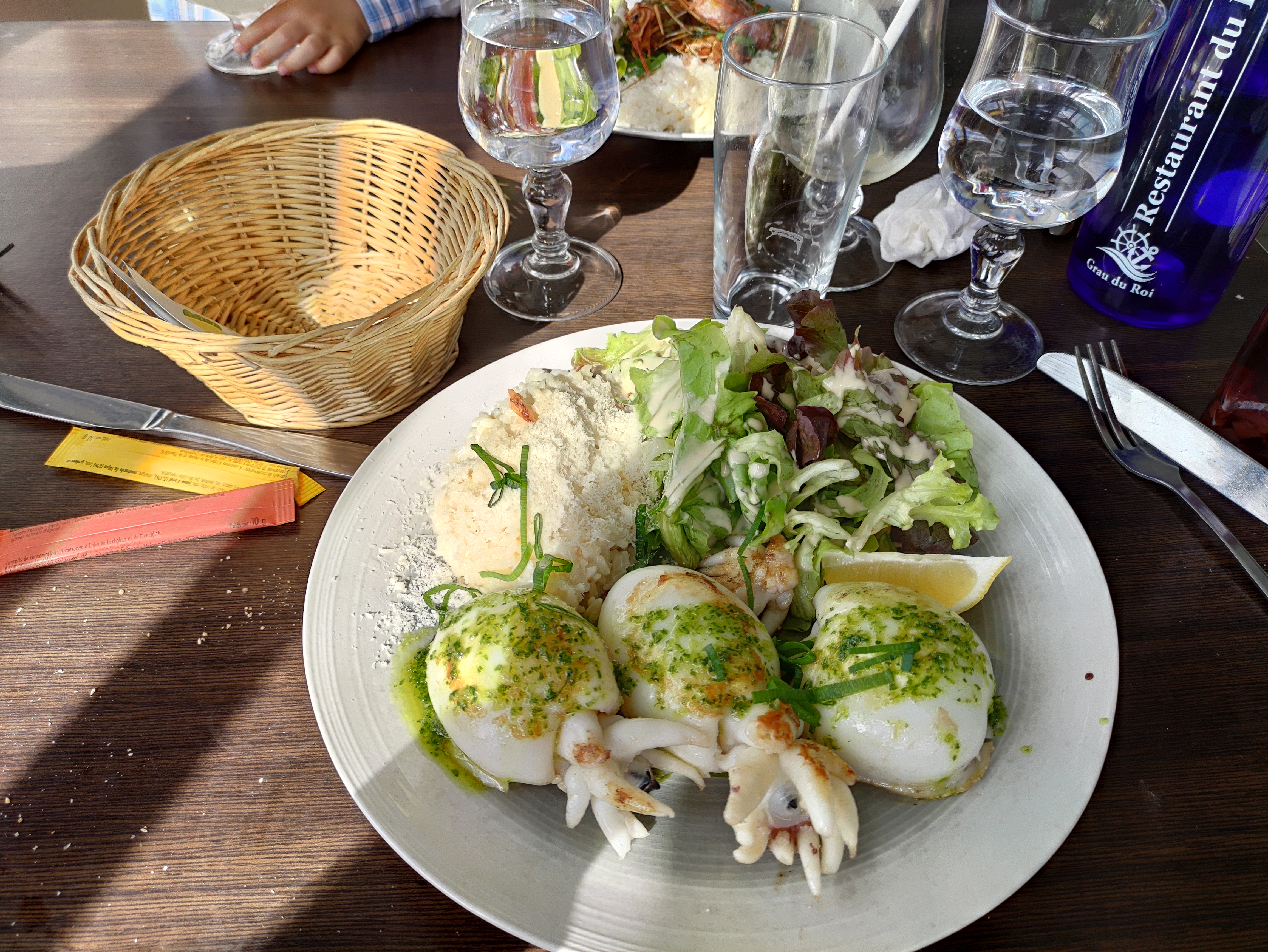 Nous avons passé un très bon moment en terrasse, au soleil, en ce dernier dimanche de novembre. Nous avons choisi le menu du phare, non sans avoir dégusté au préalable une bouteille de picpoul et de la friture pour l'apéritif. Nos attentes ne furent pas déçues, et le service fort sympathique. Nous y reviendrons