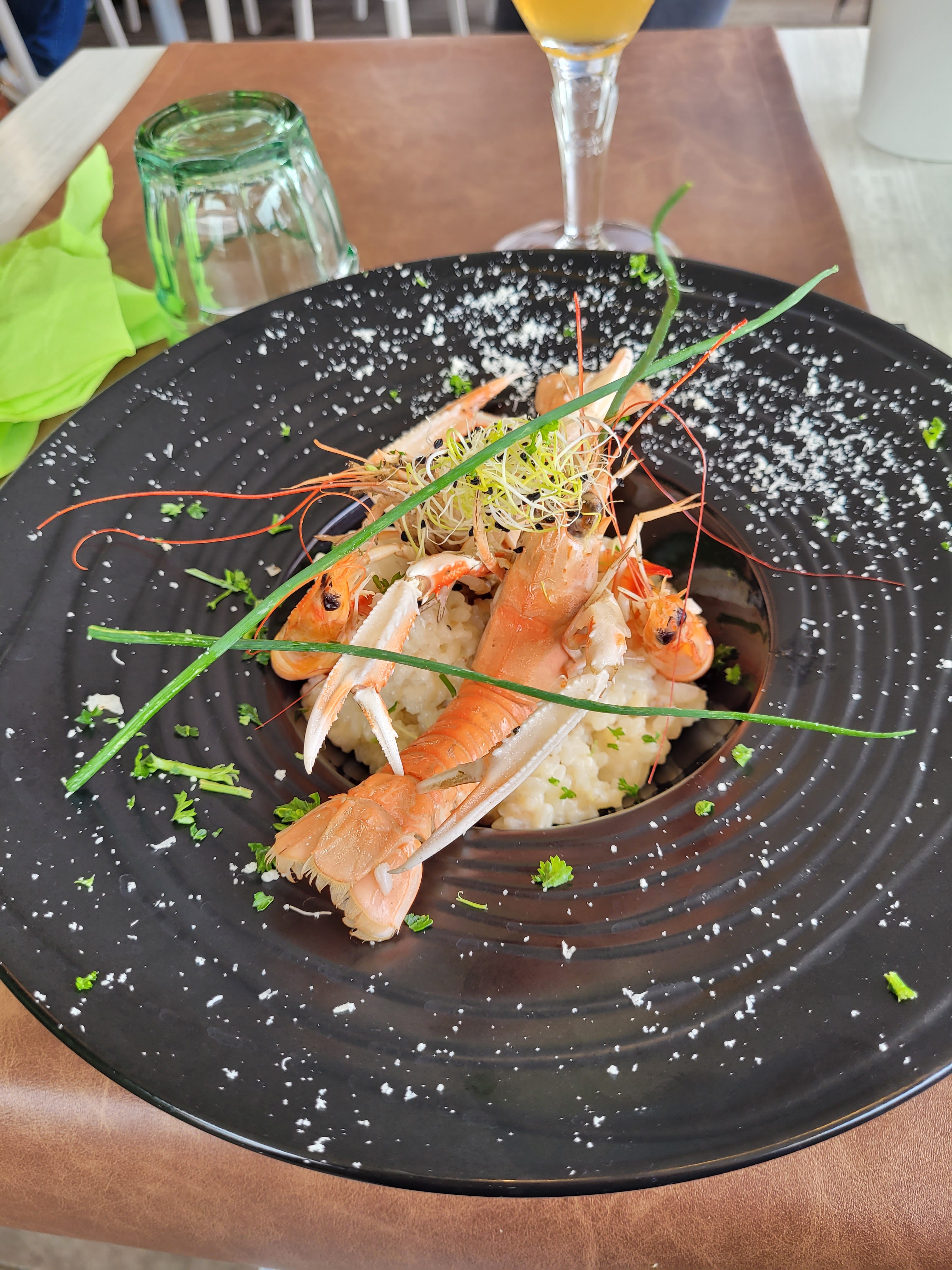 Accueil mal aimable, service déplorable. Le patron n'a que les dollars dans les yeux tant que son restaurant est plein. Arrivé à 18h35 pour une réservation à 19h, celui ci nous donne une table en plein soleil nous lui demandons donc une table à l'intérieur pour laquelle celui ci a eu du mal à nous la donner. Une fois installé il nous fait remarqué notre avance de 25 min et nous dit le service ne sera ouvert qu'à 19h. Je lui dit donc si vous voulez on peux partir, et il me répond si vous voulez la table sera prise dans 2 minutes.... bravo à ce grand patron qui a tout l'air d'être un patron près de son argent. Pour preuve il était en extérieur juste pour vérifier que son restaurant se remplissait et une fois plein ne s'occupait que des tables en intérieur.... un restaurant attrape touristes 😡 Le rissoto n'en est pas un bref ma femme s'occupe du commentaire pour les plats....