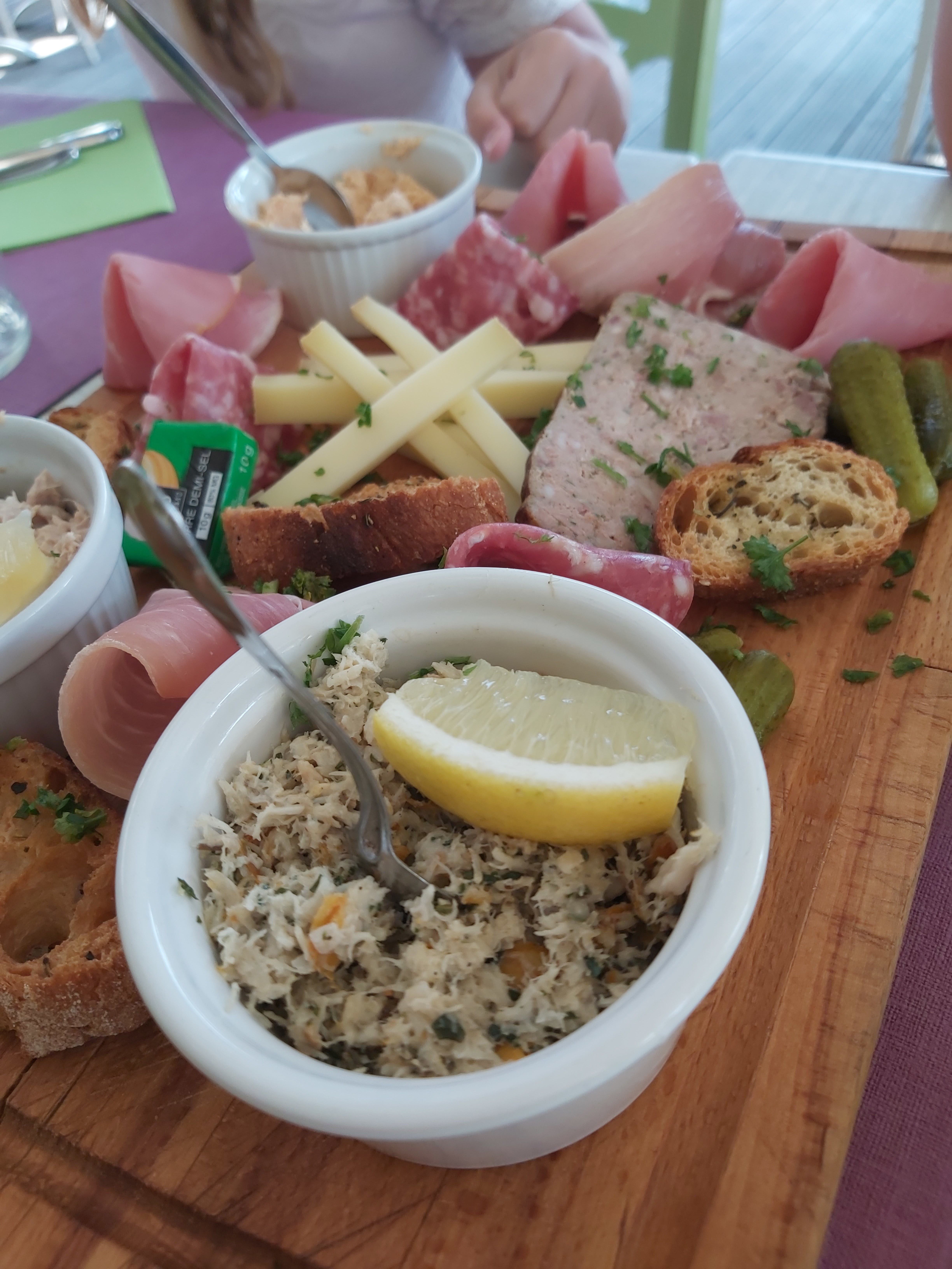 Conditions météo de fin septembre en ce jour du mois d'août, ce qui a dû avancer la date du brame dans la région !!! En effet, le patron a passé son temps à bramer après son personnel, ce qui est surprenant dans un port, je me croyais à Chambord l'espace d'un instant. Cependant les serveuses sont vraiment adorables, le service, la qualité des produits et les quantités impeccables, voir même super copieux, avec un cadeau pour notre petite. Donc ca mérite bien 5 étoiles ! Nous reviendrons une fois le rut terminé.