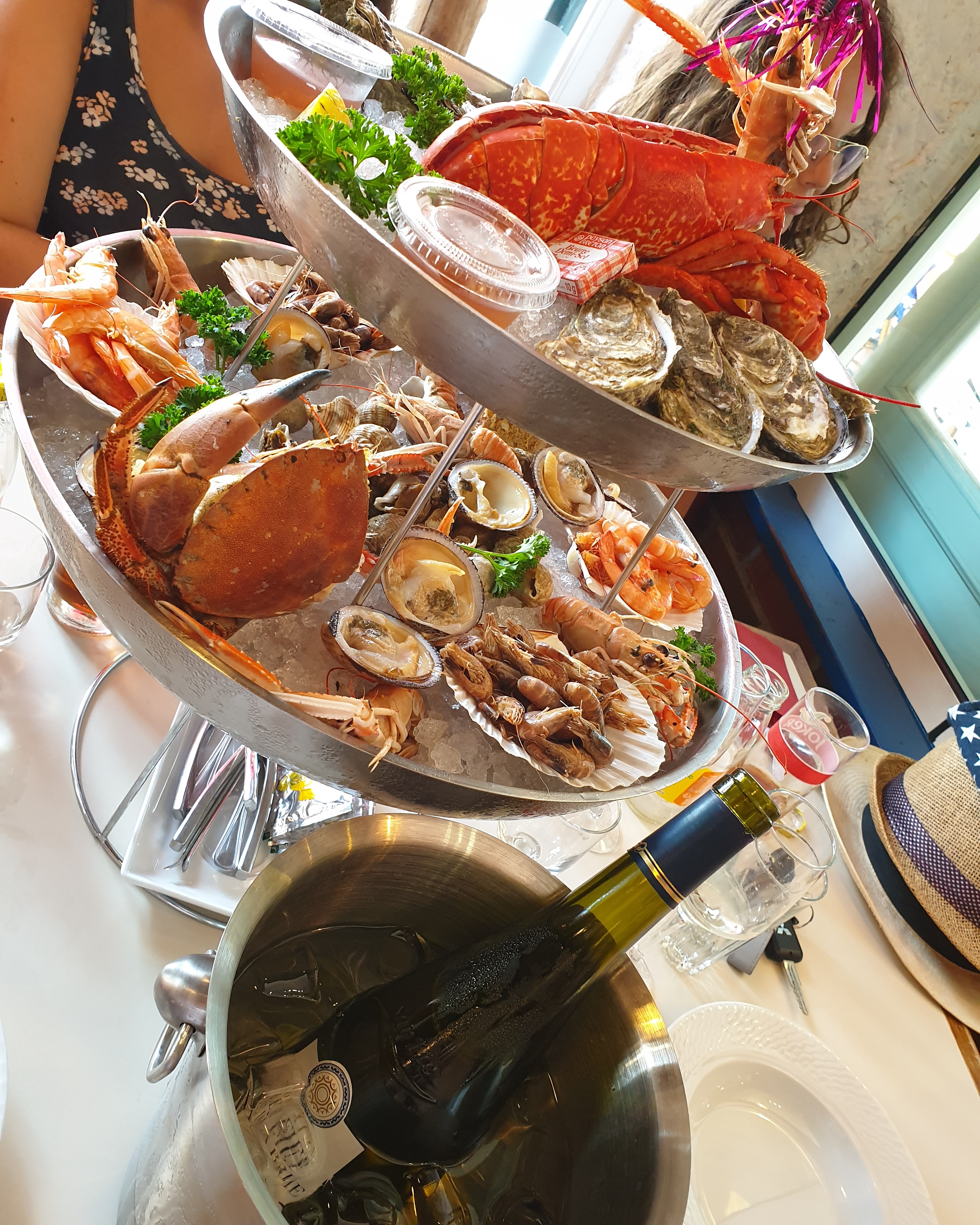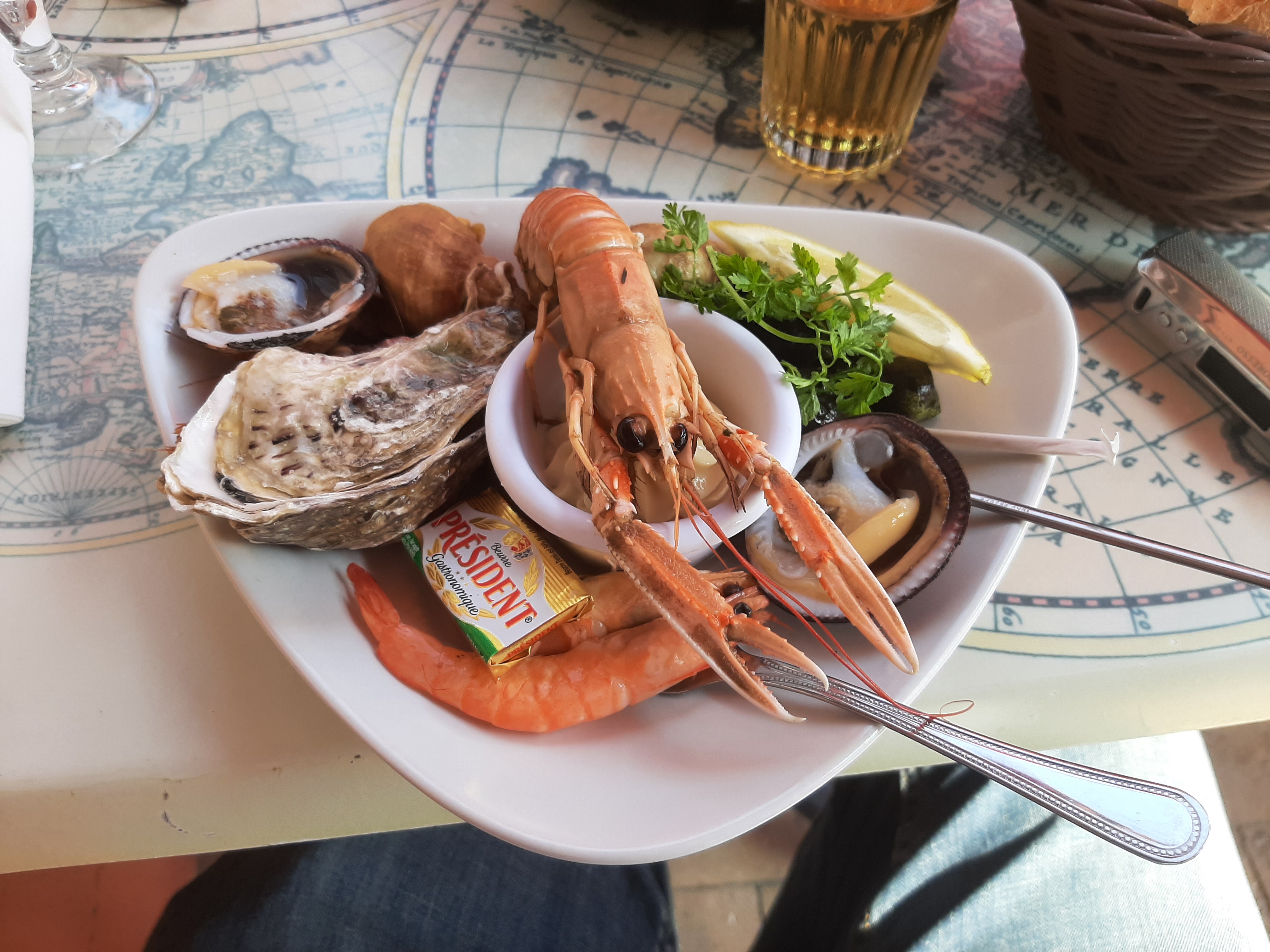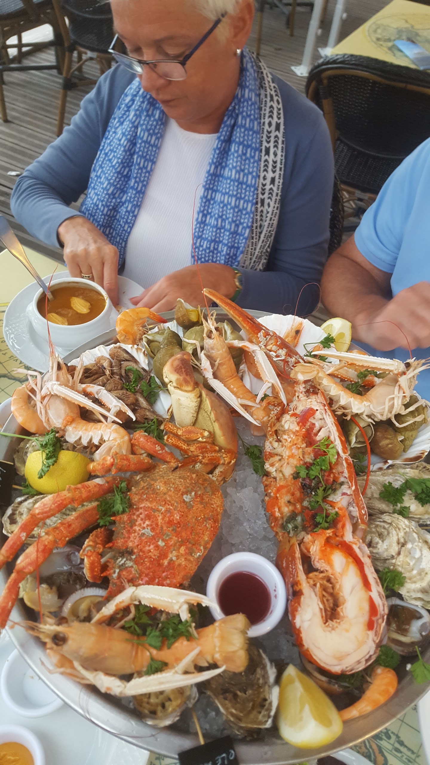 Depuis longtemps que j attendait un plateau de fruits de mer....digne de ce nom ,des produits frais et bien cuisinés. j aurait mis les cinq étoiles si les quantités de fruits de mer aurait été un peu plus importantes. 95 € pour deux avec une bouteille de muscadet compris dans le prix et un homard bleu, cela reste raisonnable. Je me suis régalé. Le service efficace malgré la canicule, je vous conseille vivement de venir en début de service et de réserver pour avoir un service optimal. Un décor sympathique dans son jus et une vue directe sur la baie. Je reviendrai donc.....