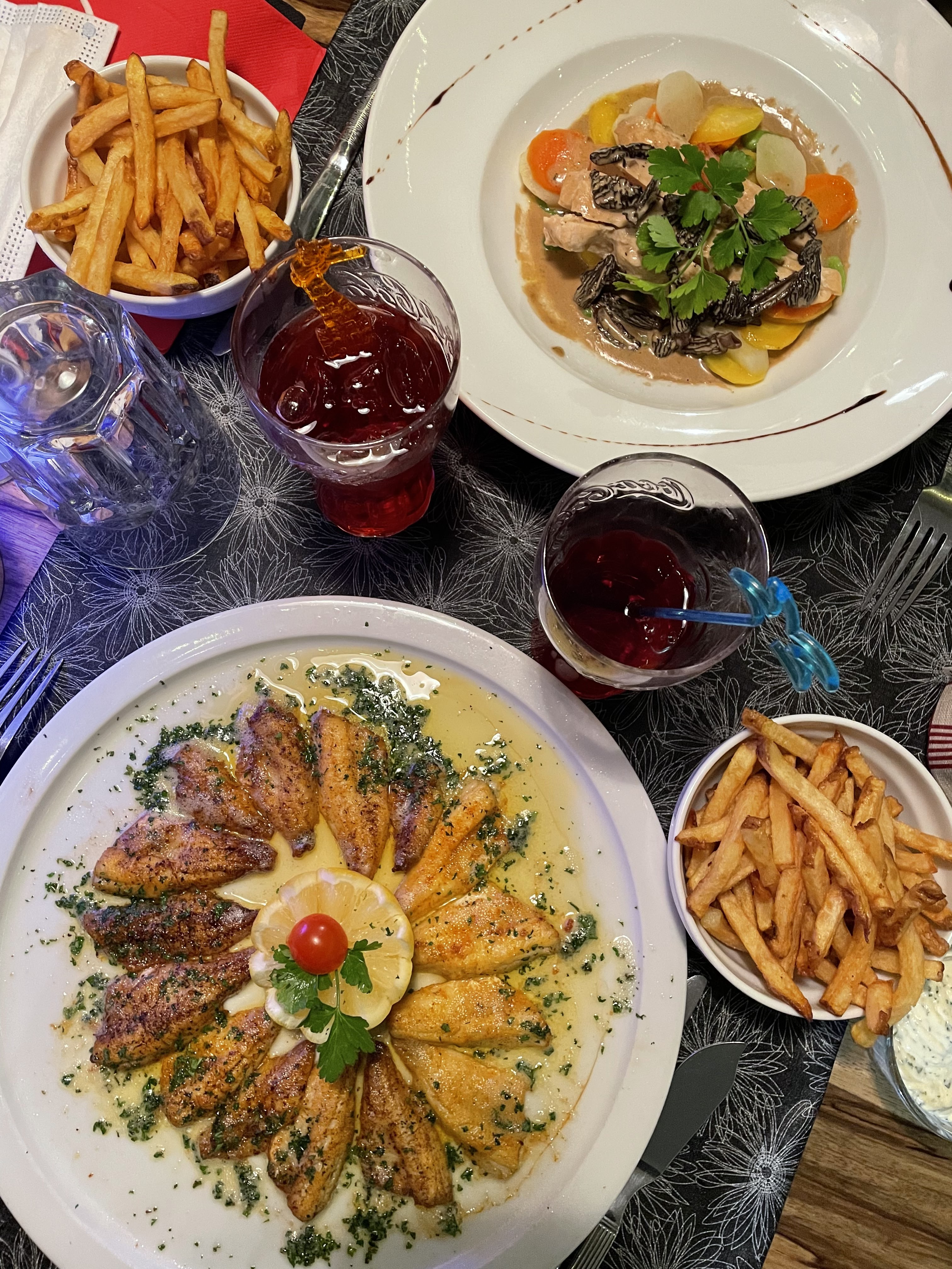 Nous avons mangé des filets de perche et une friture très bons les plats mais ça reste quand même des plats chers quand au dessert le palais avec une créme au citron rien d extra ..pour 9.50 euros dommage .même si le palais est fait maison et la cuillère de crème au citron également