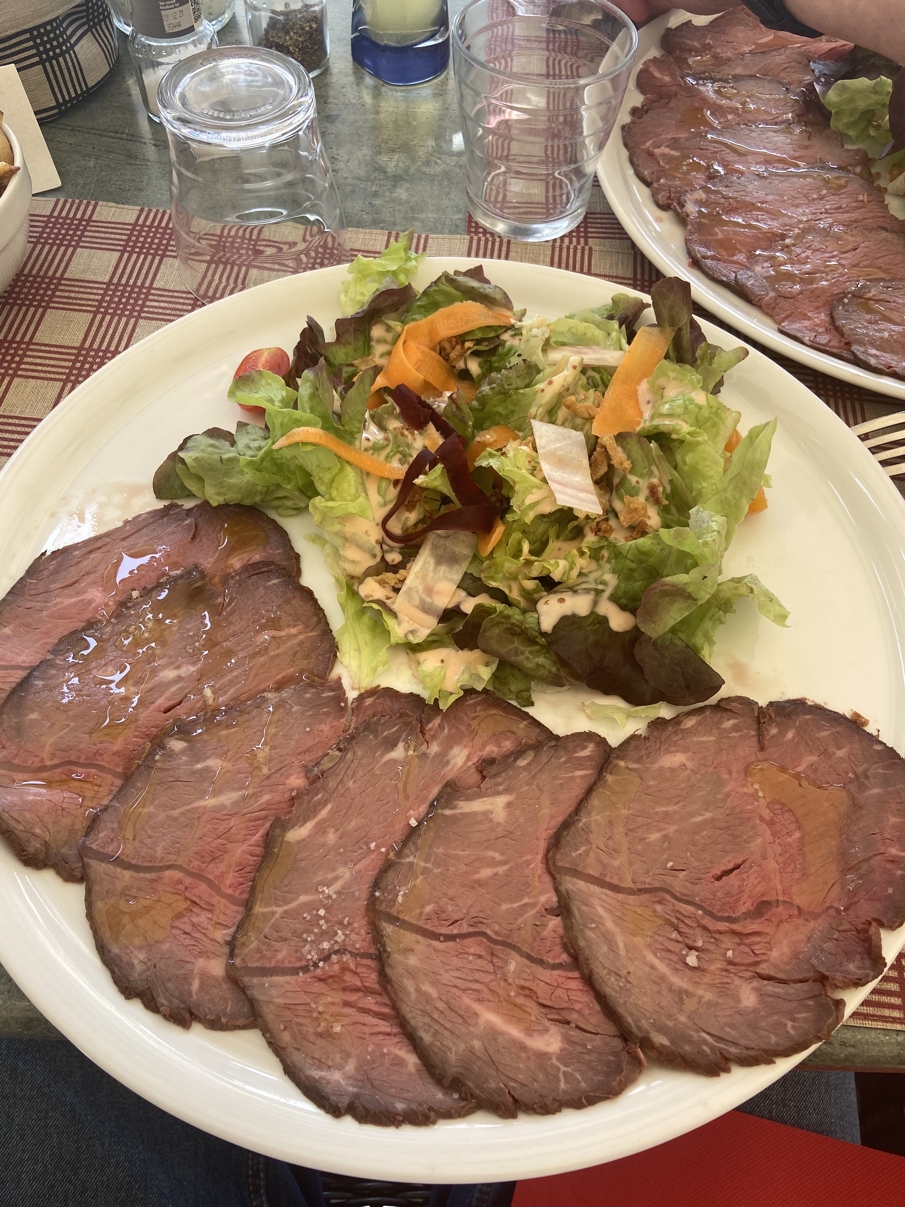 Attente trop longue, on est venu à midi en étant les premiers et on est sorti à 14 h. La viande était bonne mais il y avait vraiment très peu de sauce. Pour un verre de vin on a demandé 3 fois avant qu'on nous le serve. On nous amène du pain alors qu'on avait presque terminé. Le service n'est pas à la hauteur.