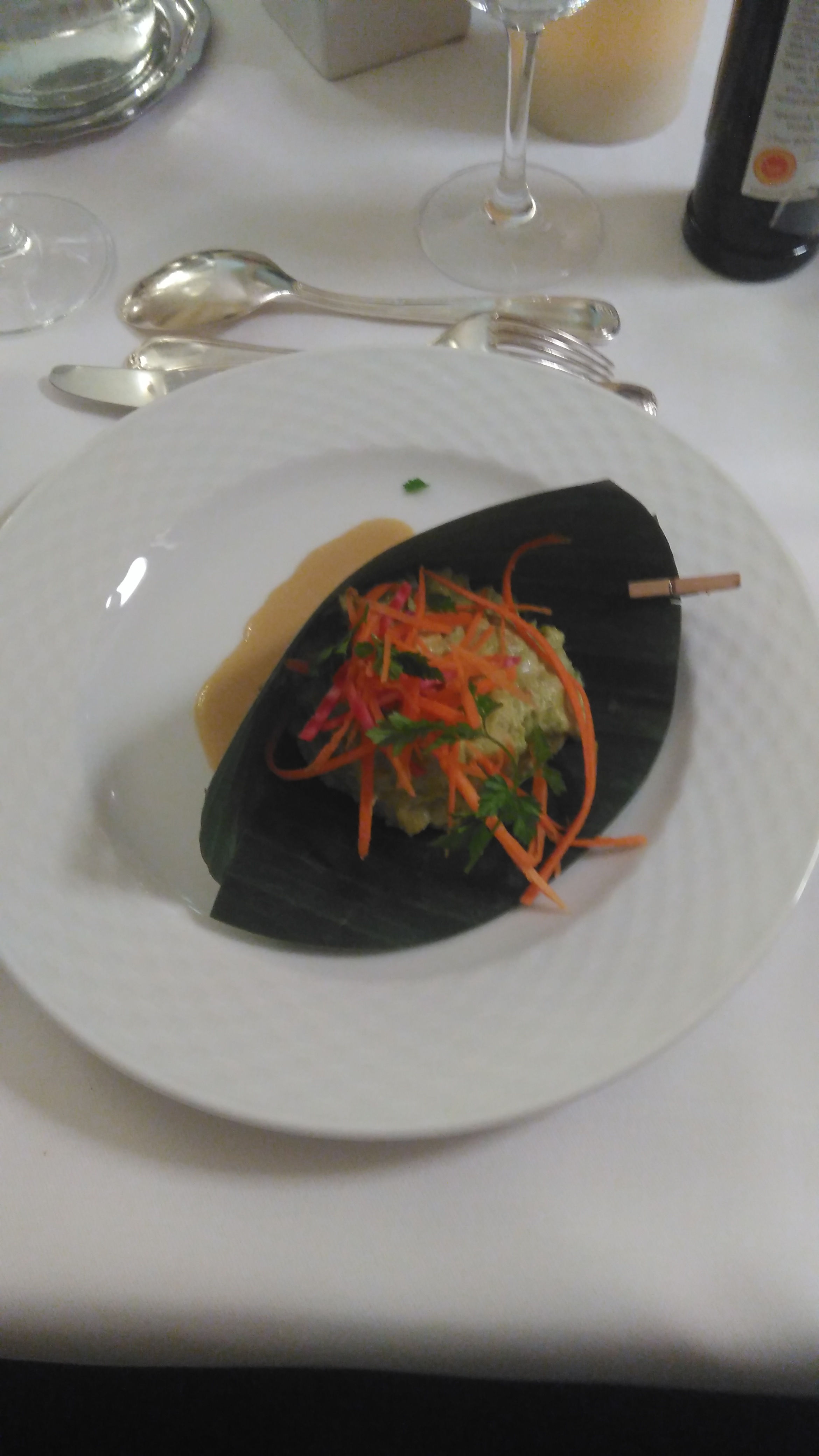 bon menu et on apprend des melanges gourmand- thon marié à la confiture de kassis.Un délice