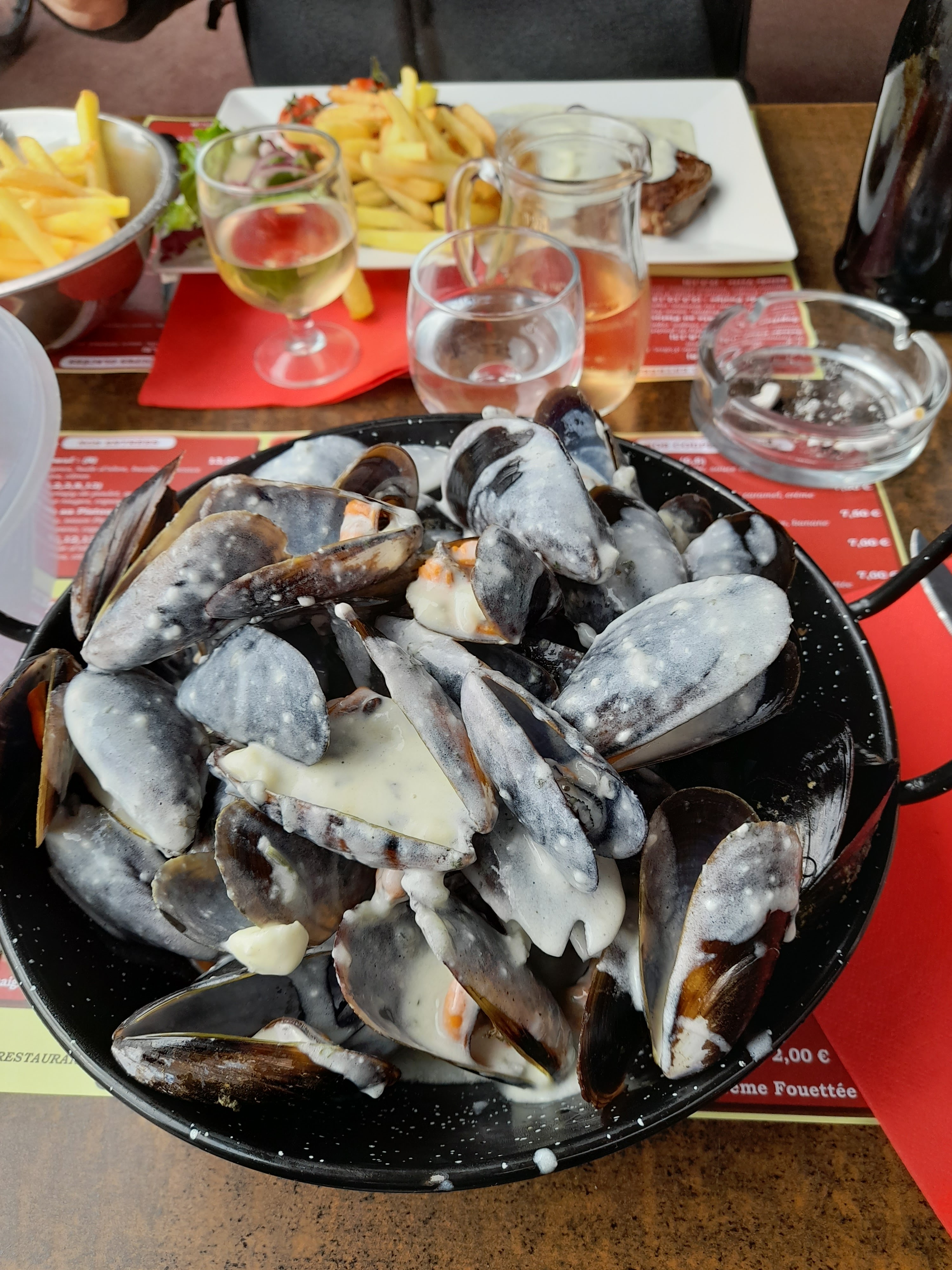 On s'est arrêté pour profiter du bord de mer avant de rentrer à Grenoble. On a été bien accueilli, les 3 moules frites différentes que nous avons commandé étaient bonnes (crème d'ail, roquefort et carbonara). C'était super agréable avec une vue sur la mer