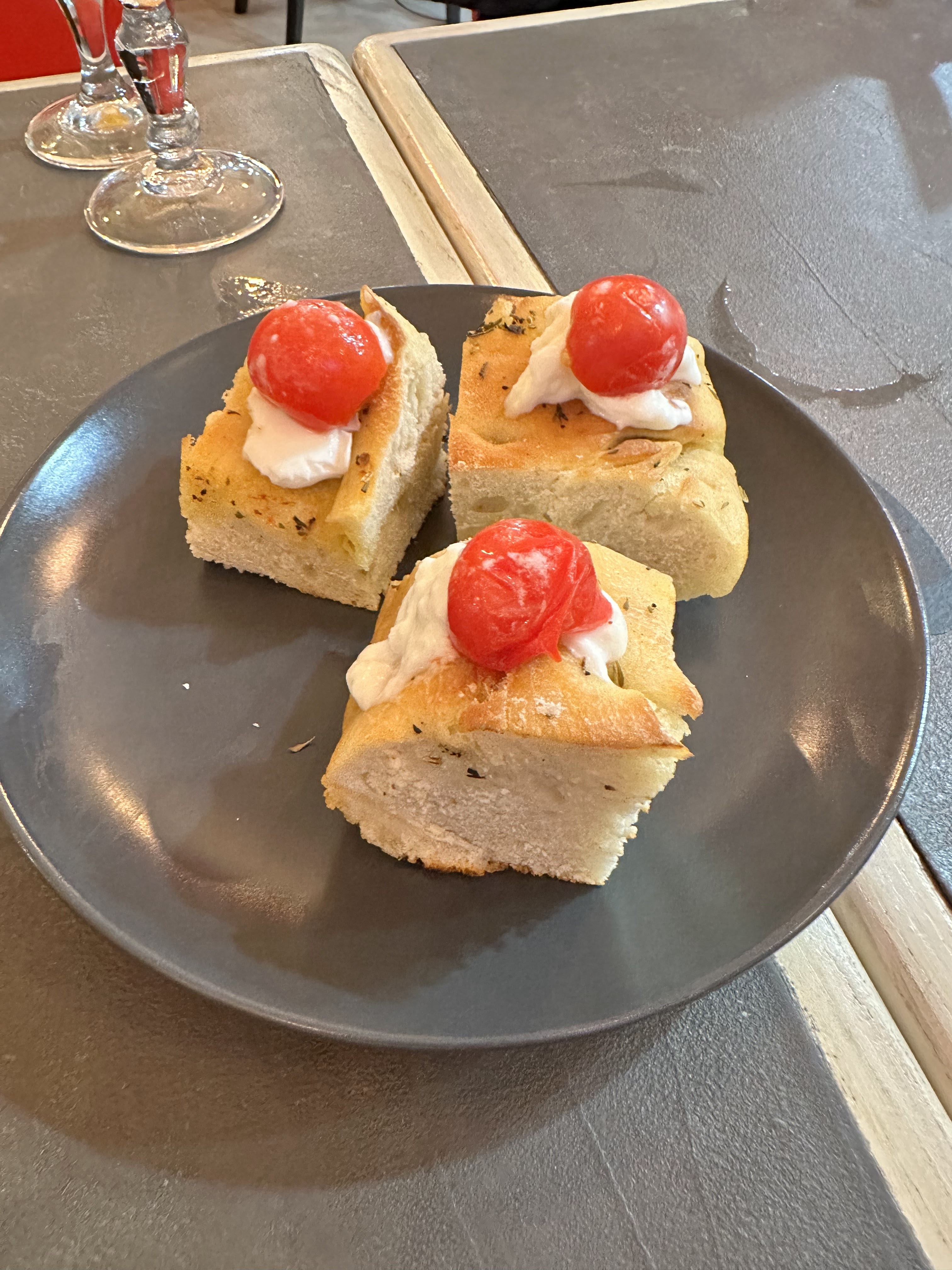 J'ai commander une pizza crème fraîche et saumon, malheureusement la pâte à pizza n'était pas du tout cuite et la crème était hyper liquide. On m'en a donc ramener une autre mais toujours pareil la pâte n'était pas cuite, on m'a expliquer que ça faisait 3j que la pâte était faite et que la couleur blanche était donc normal... Par gentillesse le serveur nous a offert le dessert qui lui aussi était immangeable, un tiramisu au fruit donc le mascarponne était dure et sans goût et les fruits sans goût et ils piquer.. Dommage car le service était plutôt bien