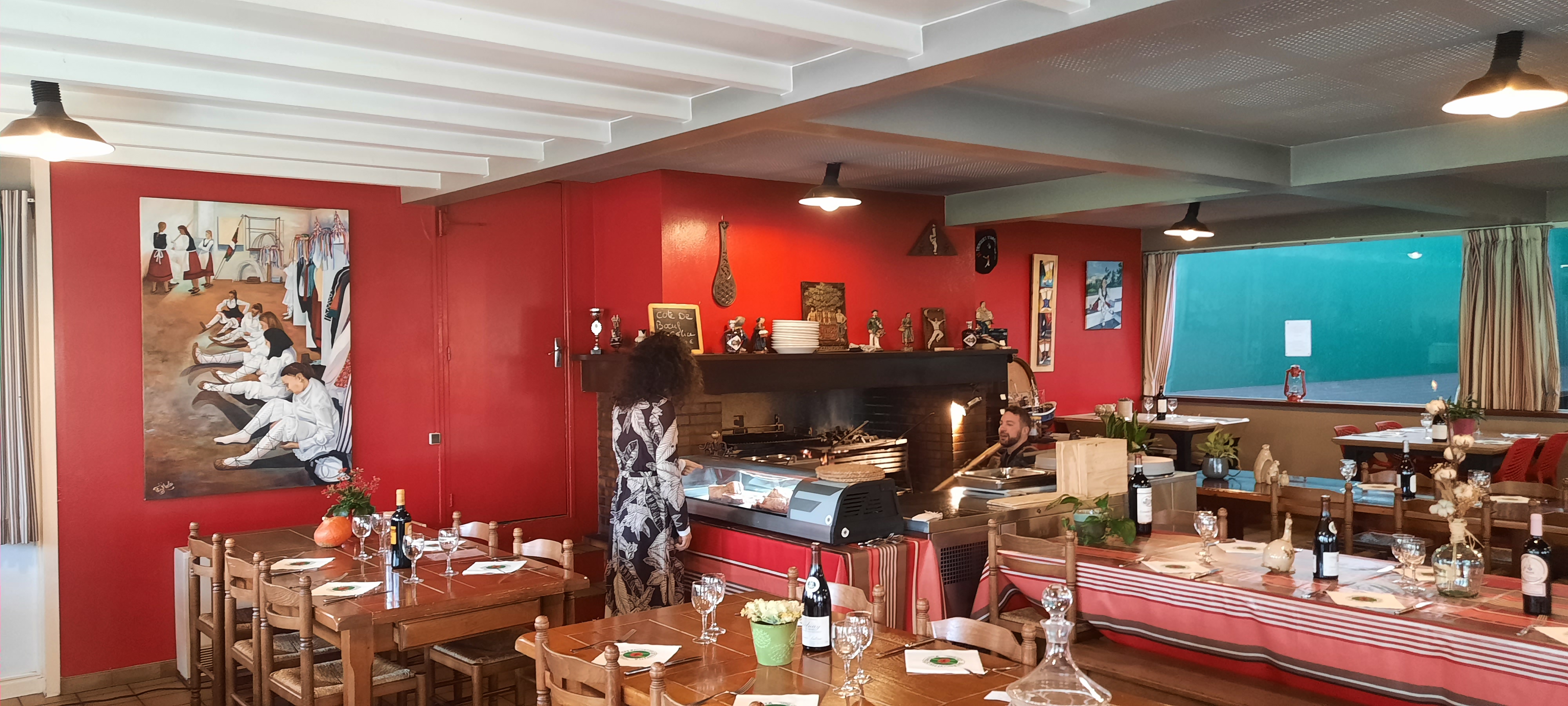 Restaurant sympa avec grillades au feu de bois, spécialités de la région (palombes, cèpes, etc) avec vue sur le fronton, on y sent bien l'ambiance du pays Basque