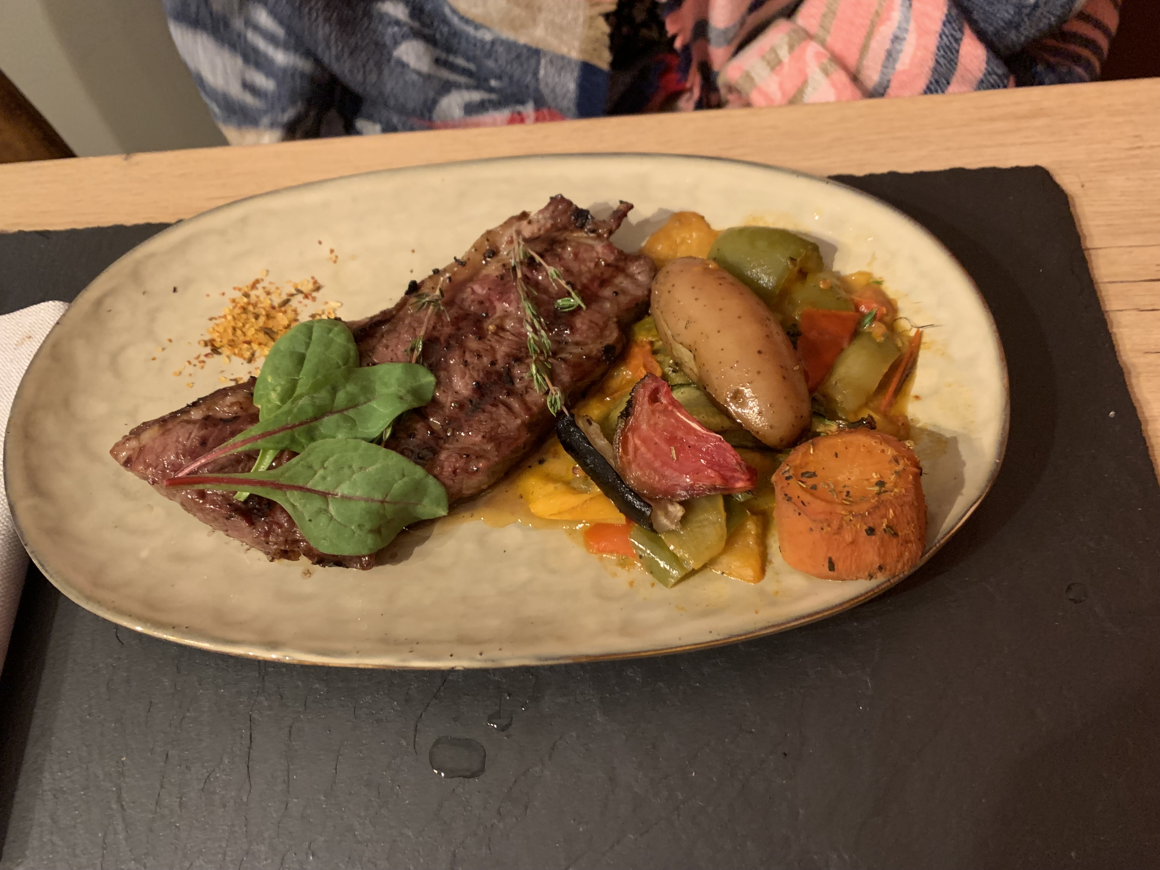Excellent, pièce de bœuf et légumes délicieux,et plein de saveurs, service impeccable.