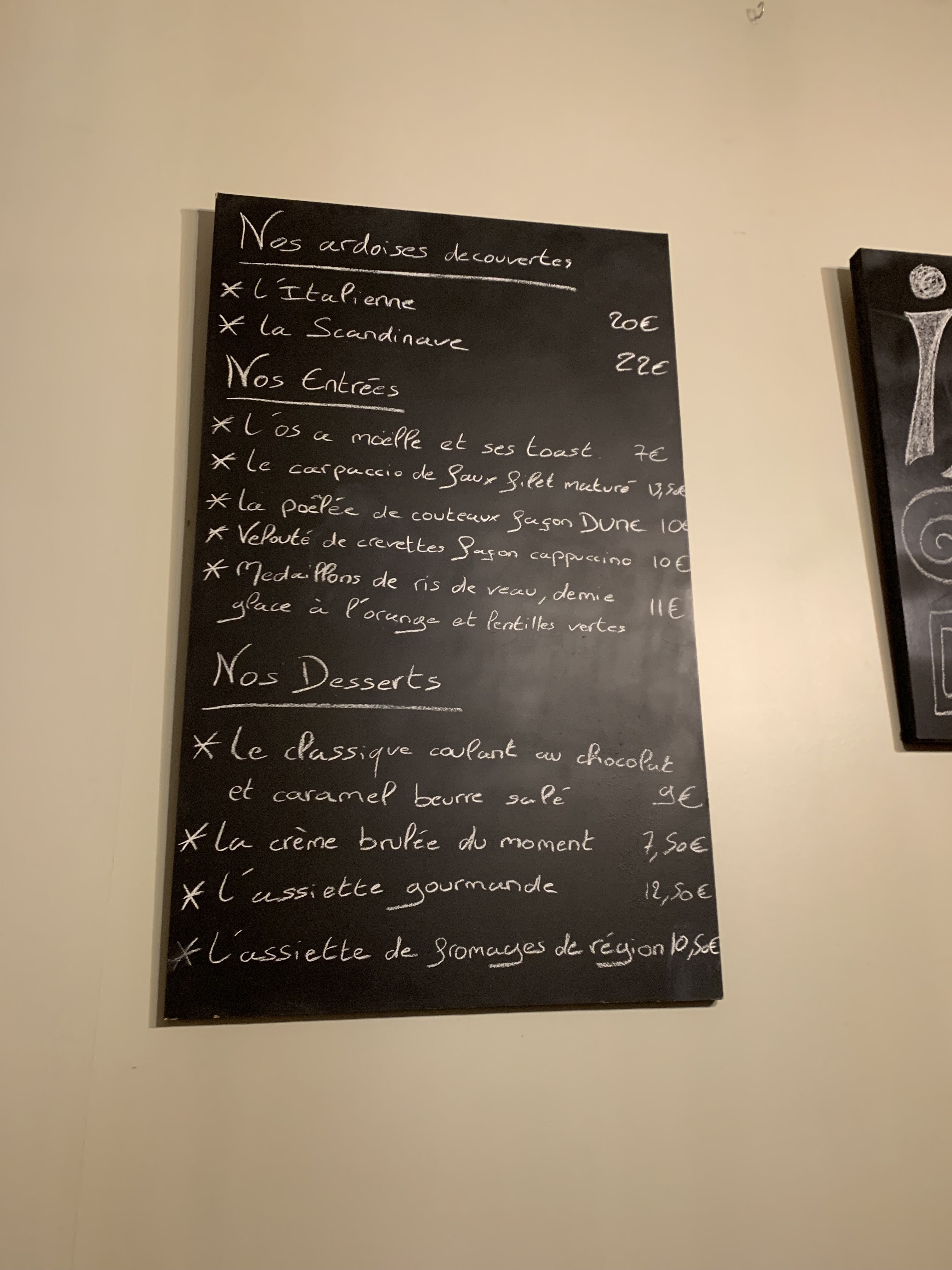 Excellente découverte quelques mets à découvrir sur l ardoise.... tout en fraîcheur et d une fraîcheur nous recommandons à 200%