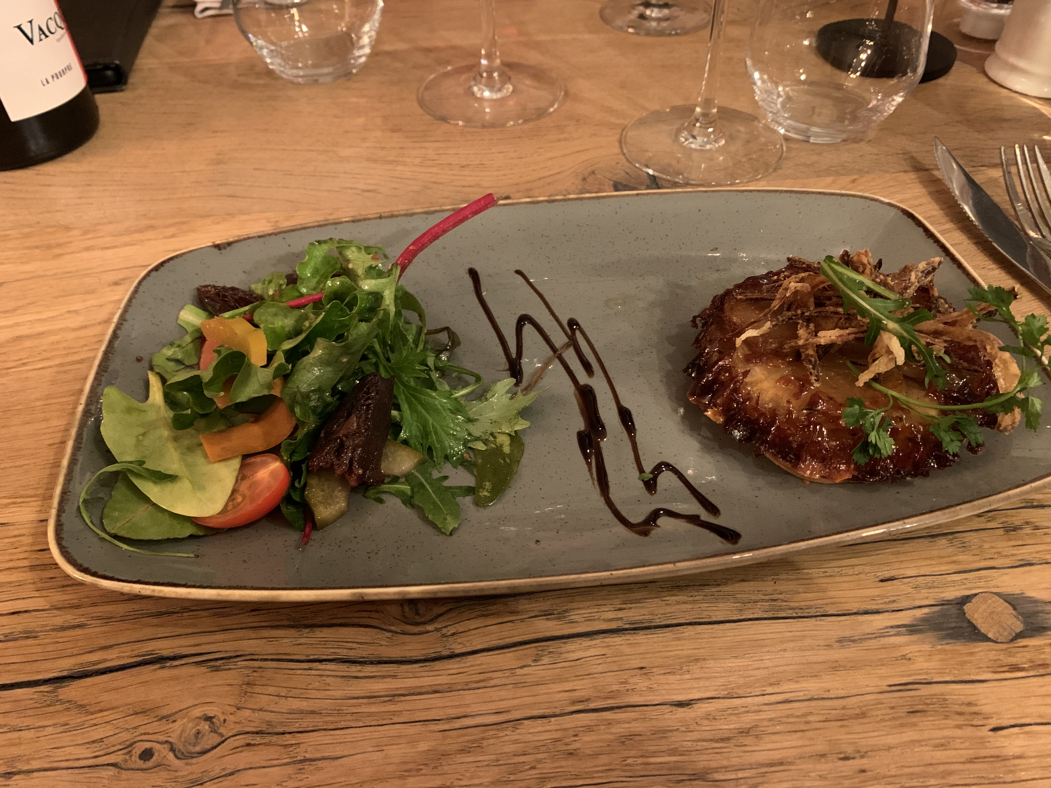 Le lieu est atypique et sympathique en intérieur. La serveuse a été vraiment très professionnelle du début à la fin en nous expliquant les plats. En revanche nous avons été déçus des plats, soit trop de sauce 'type vinaigrette, une viande sans réelle saveur,...heureusement les vins ont sauvé ce déjeuner.