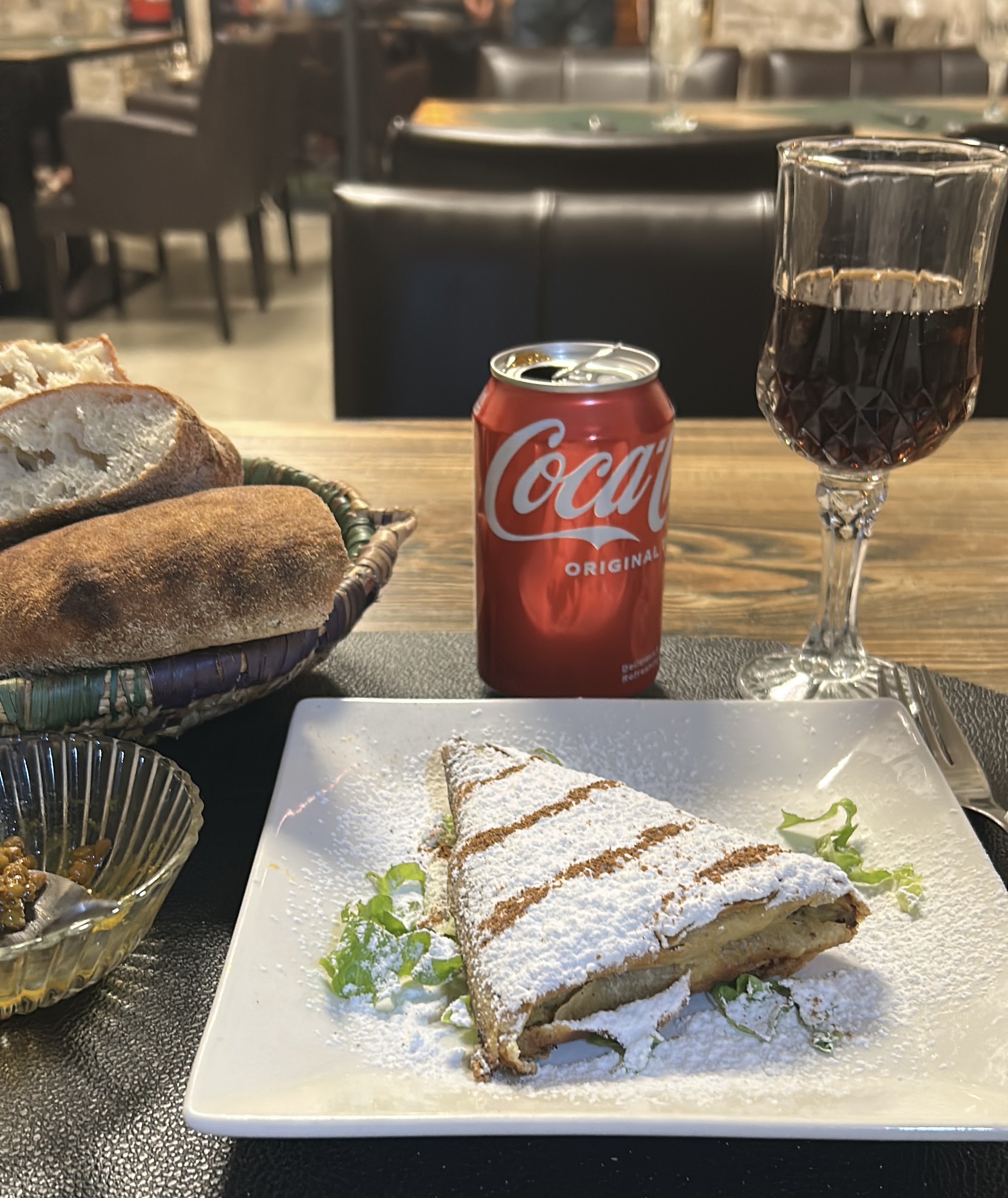 Le tajine d’agneau super bon un délice je suis revenu en manger un le lendemain ! Le pain en baguette était super bon contrairement au pain oriental qui nous servent habituellement. La boisson pas assez fraîche c’est vraiment dommage. Le service au top. Sinon leur tajines est très très bon je recommande