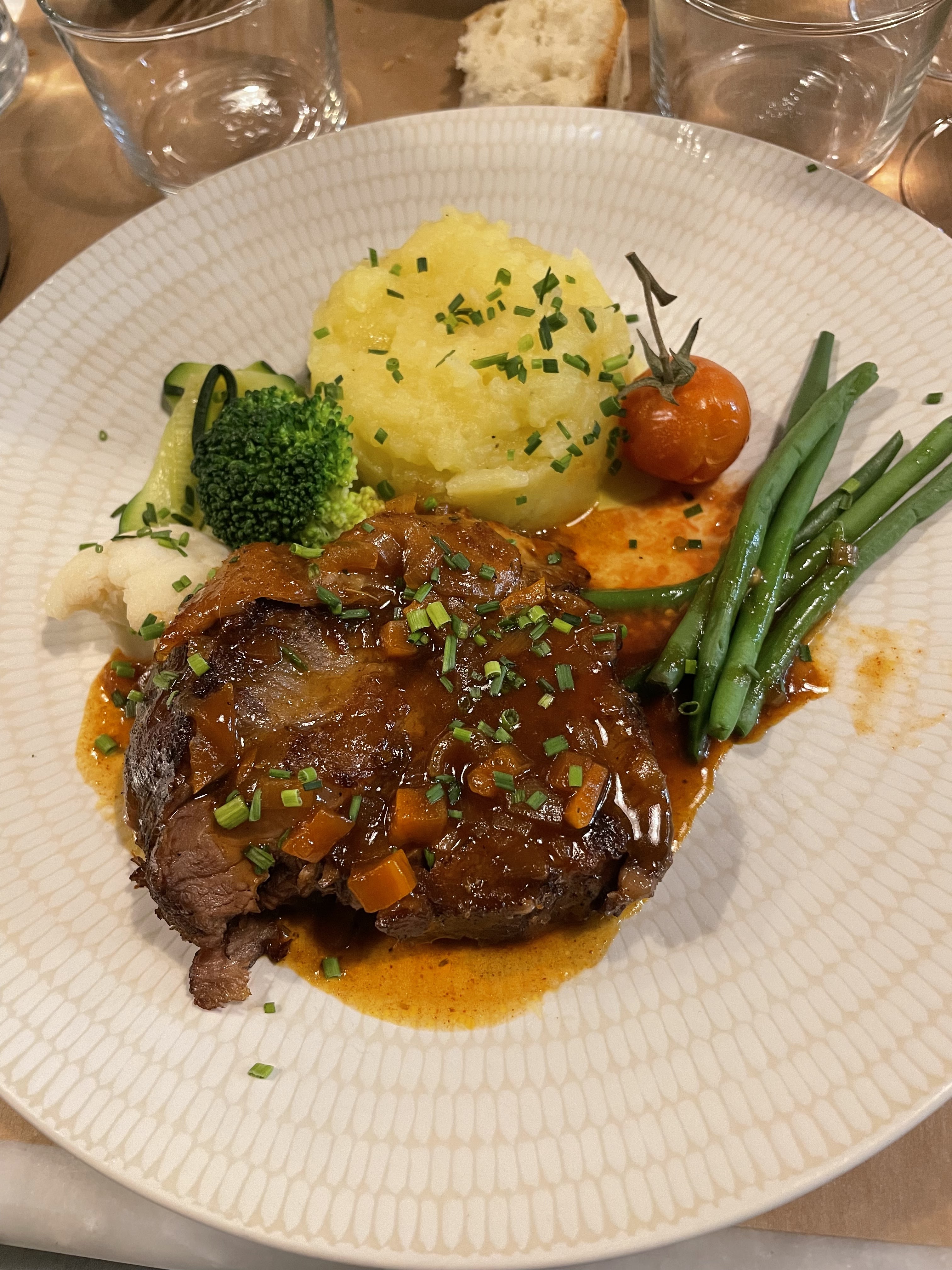 Bonne nourriture, excellent service. Très propre, intérieur scandinave (donc l'ambiance était un peu moins cosy). Cependant, nous y étions un lundi, un seul autre couple était au restaurant. Nous avons tout aimé du repas, du personnel et du restaurant. Nous étions également heureux lorsque la facture est arrivée - c'était un bon rapport qualité-prix à tous points de vue. Le personnel était visiblement à l'aise pour parler anglais ou français.