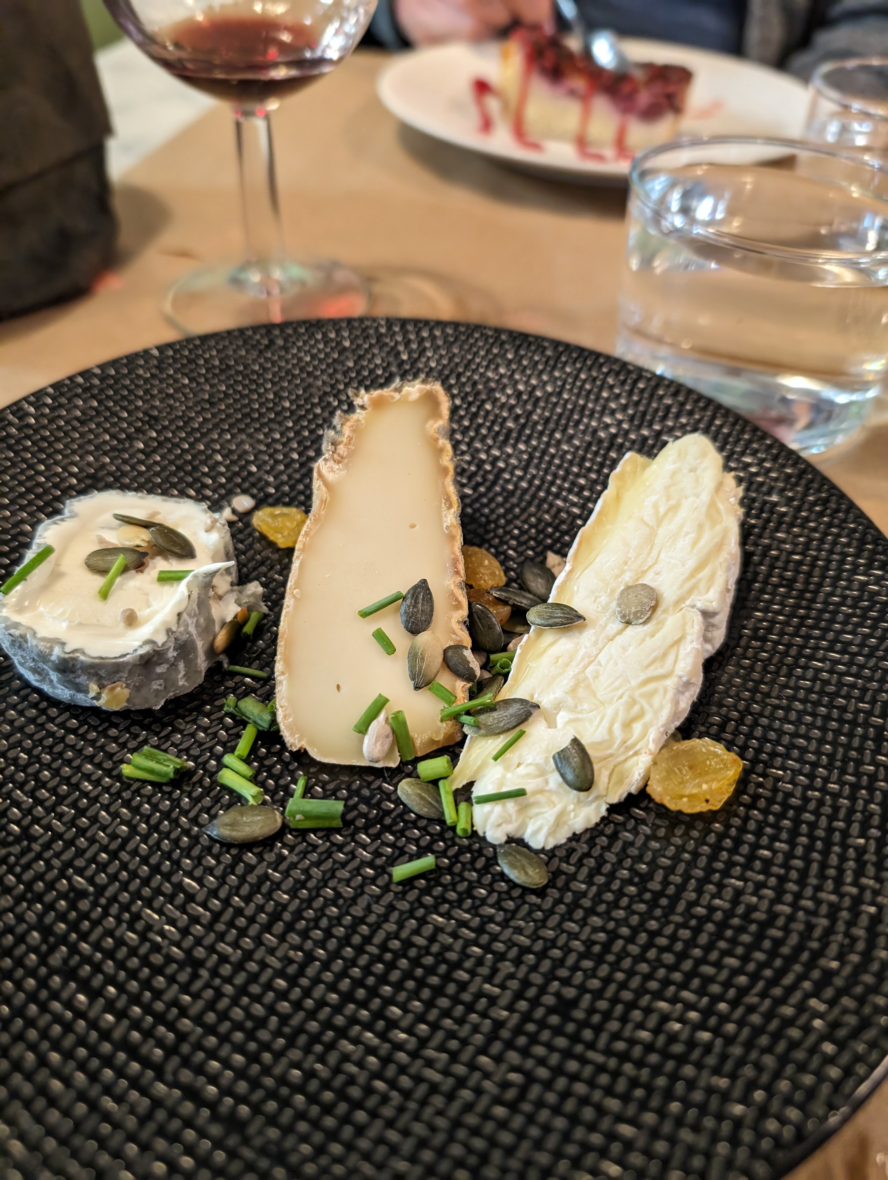 Déjeuner sympathique (16 euros pour plat du jour + dessert du jour ou assiette de fromages + verre de vin + café ou thé) Serveuse agréable Les portions des assiettes ne sont pas trop grandes, mais dessert compris c'était plus que bien