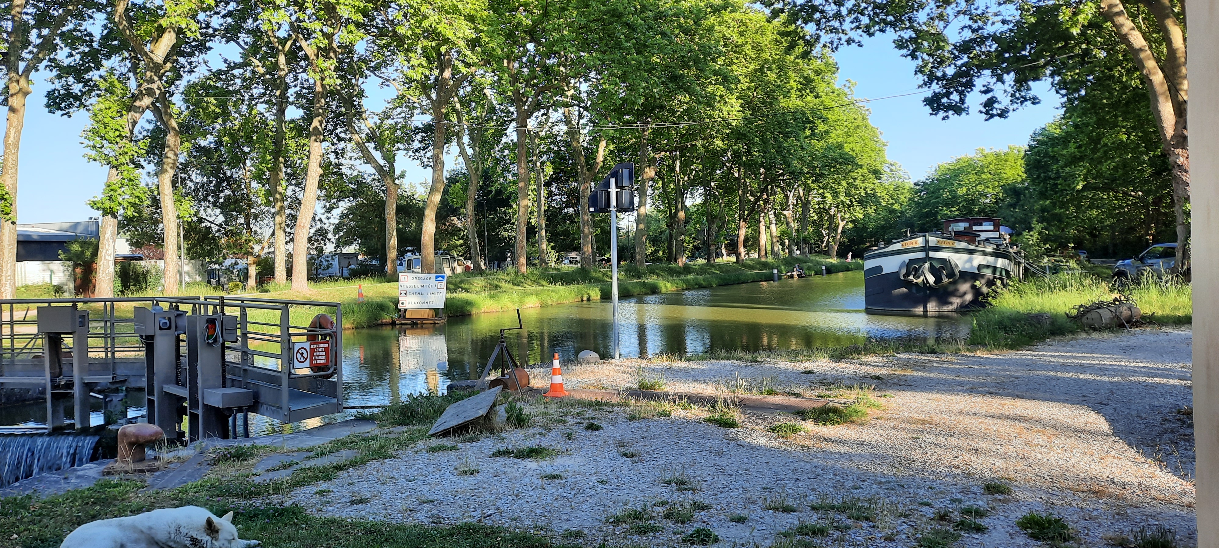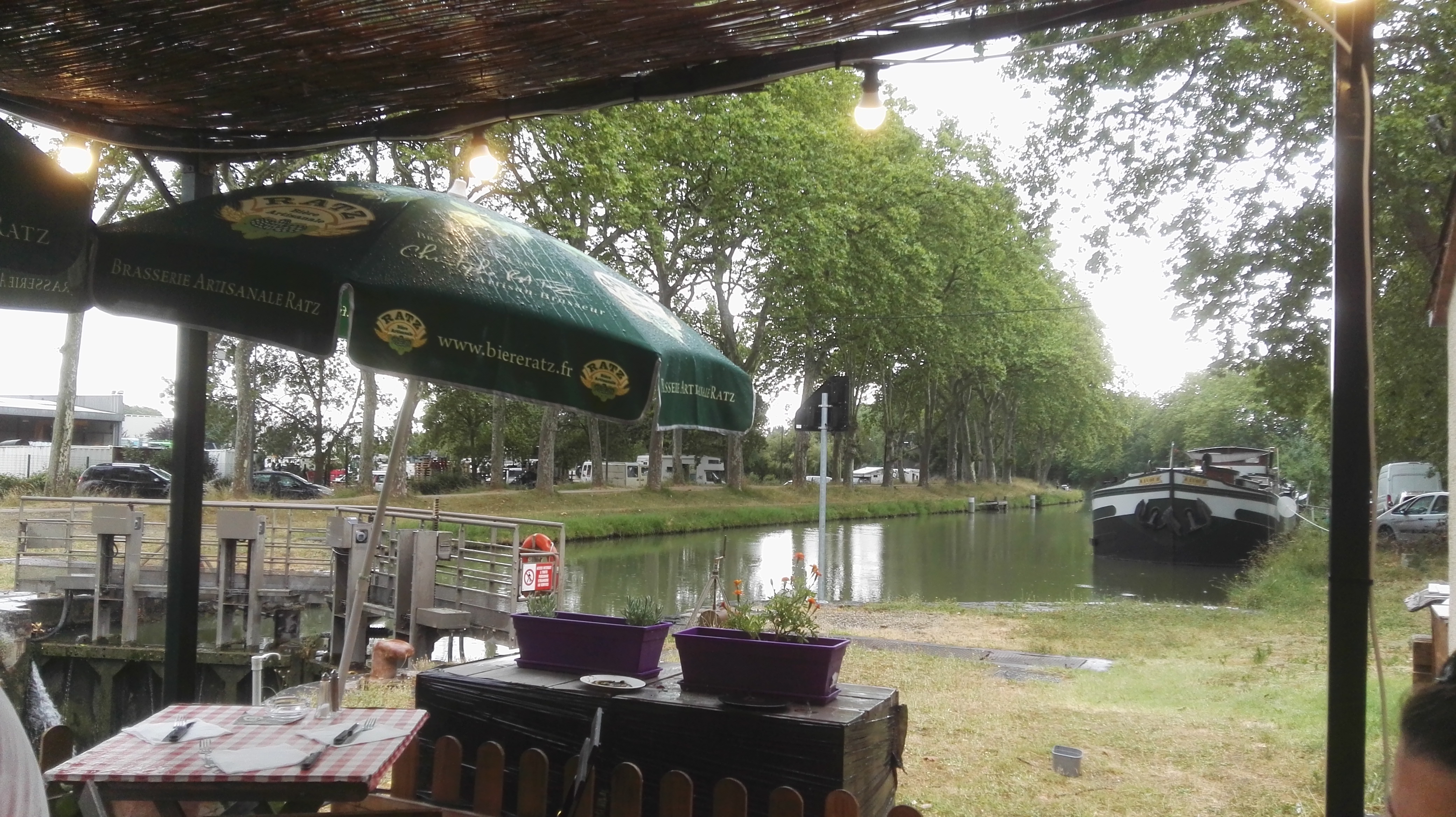 Super endroit pour un midi détente. Dans une ancienne écluse, avec terrasse au soleil, littéralement au bord du canal du midi.