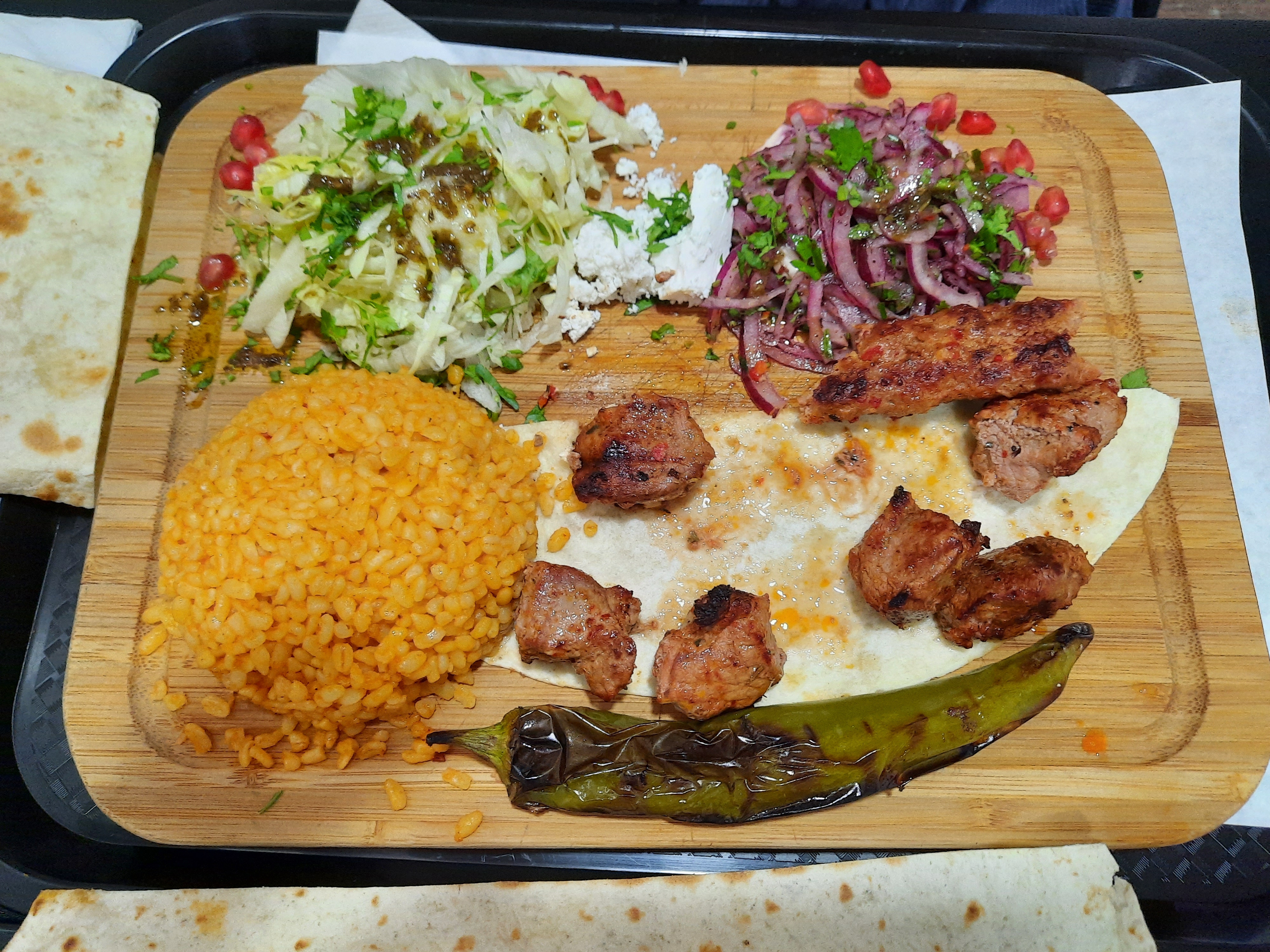 Franchement excellent. Du pain maison fait devant soit à la viande très goûteuse et les frites maison en passant par les légumes(au top les grenades,le fromage feta etc...)juste l'un des meilleurs d'île de France que j'ai goûter