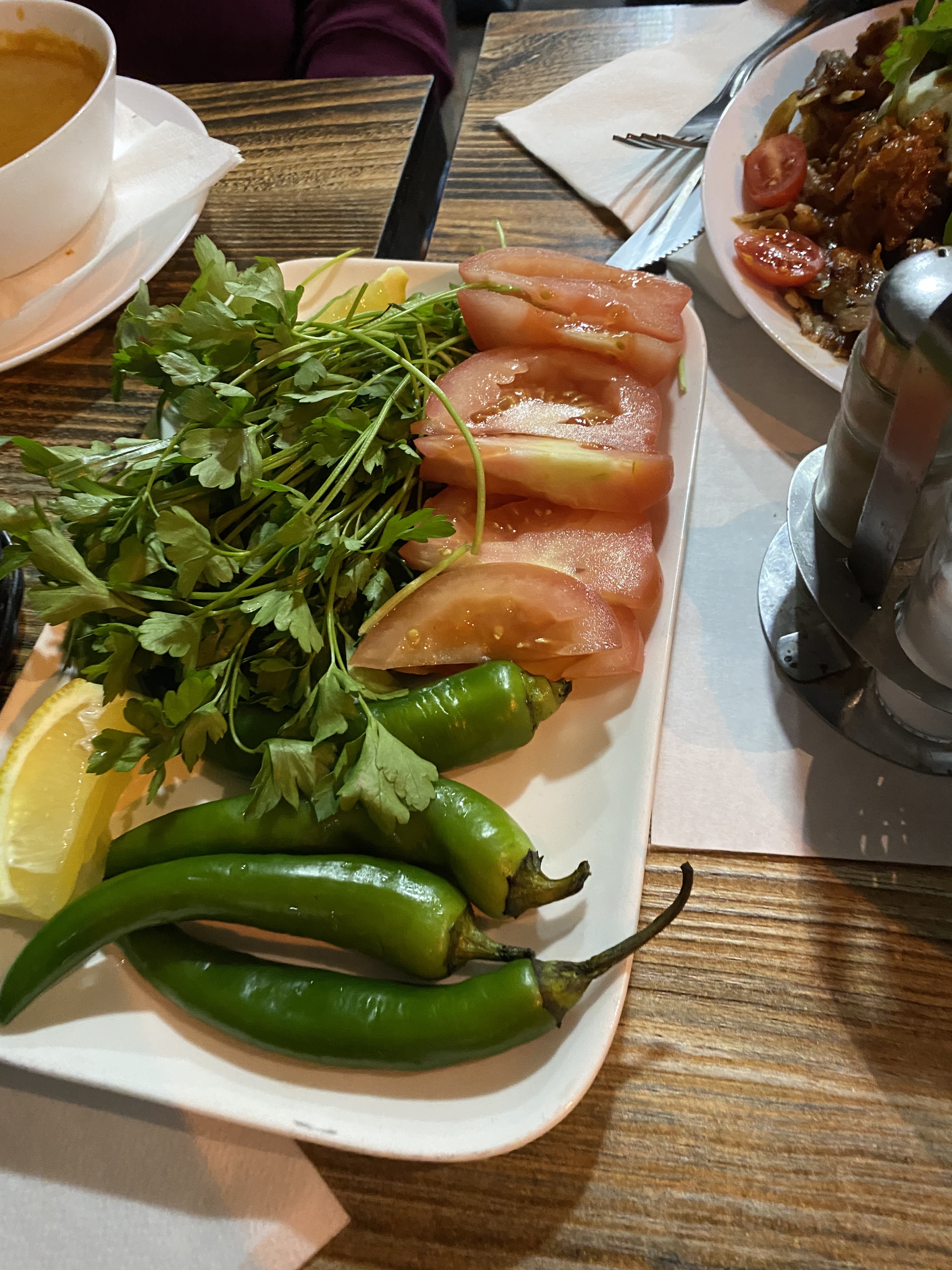 Très bonne nourriture et la portion pour une personne était assez grande - la soupe aux lentilles est excellente, le poulet ou le wrap à la viande contient tellement de viande à l'intérieur - un petit restaurant simple - ils étaient un peu en retard avec la commande mais dans l'ensemble, c'était bon !