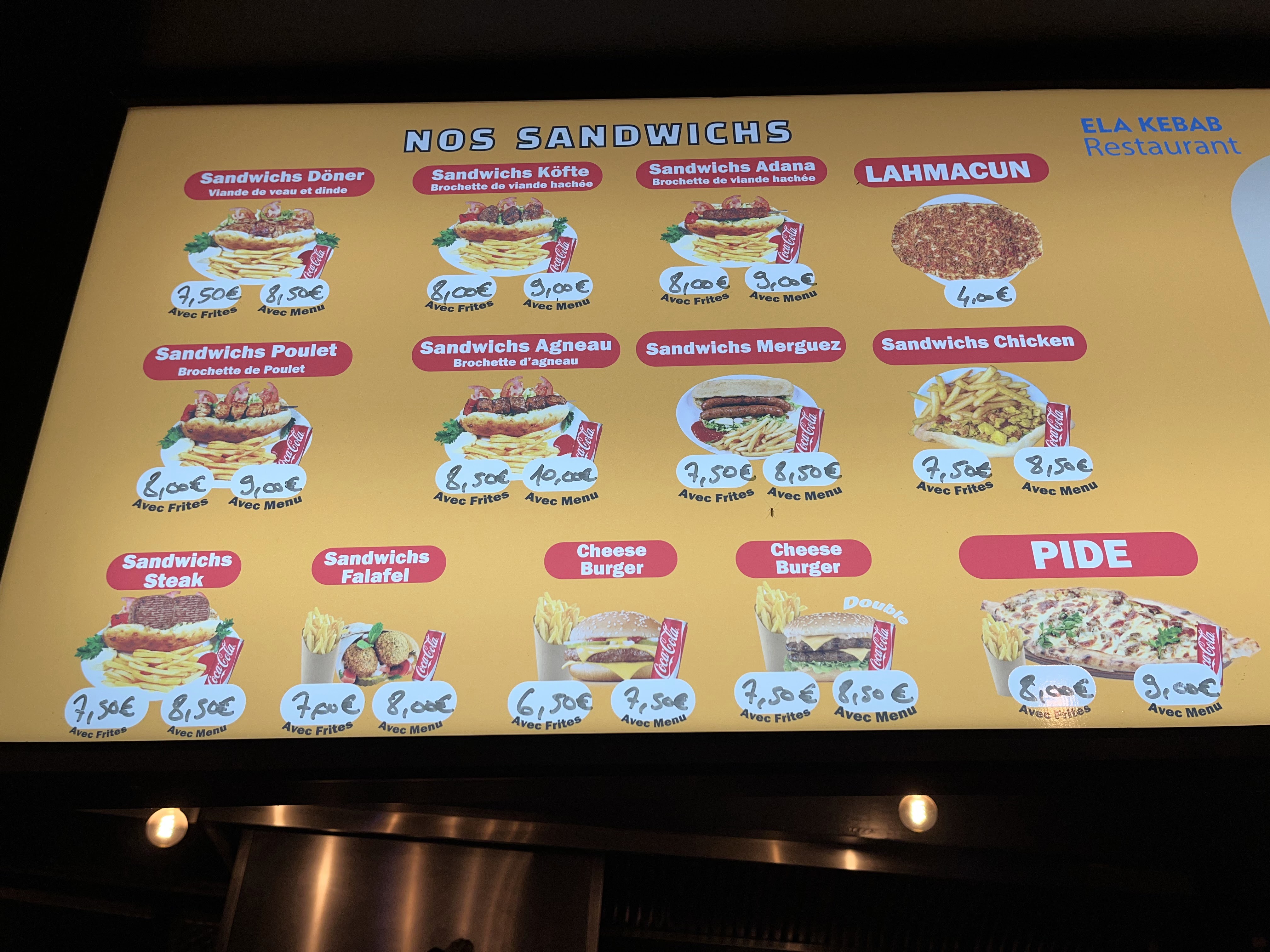 L'enseigne ne donne pas envie mais croyez moi le kebab et les frites sont excellents. Par contre l'ambiance est froide les employés parlent sur les gens entre eux
