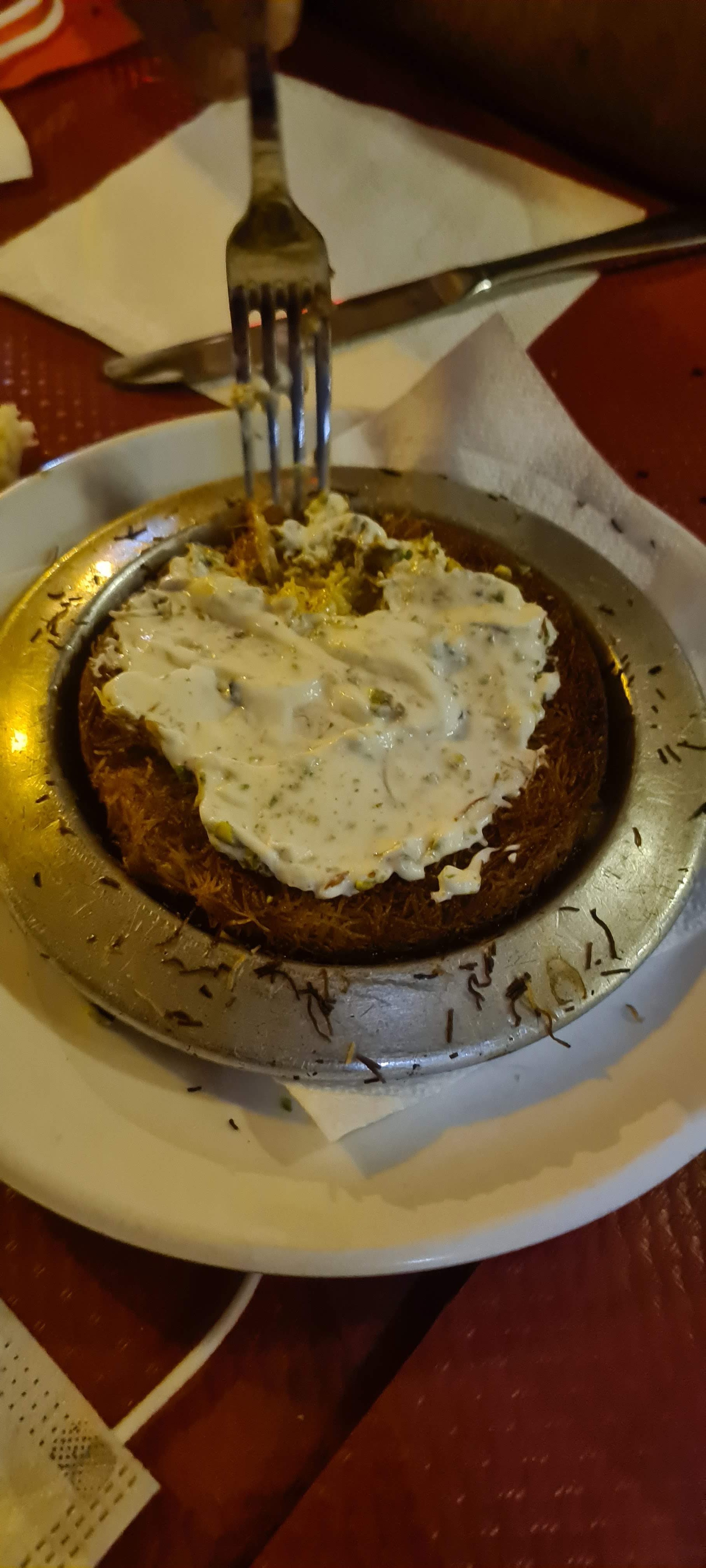 Je cherchais une collation la nuit j'ai été bien accueilli, je vous recommande Le knefeh il est excellent tout me paraît bon et frais