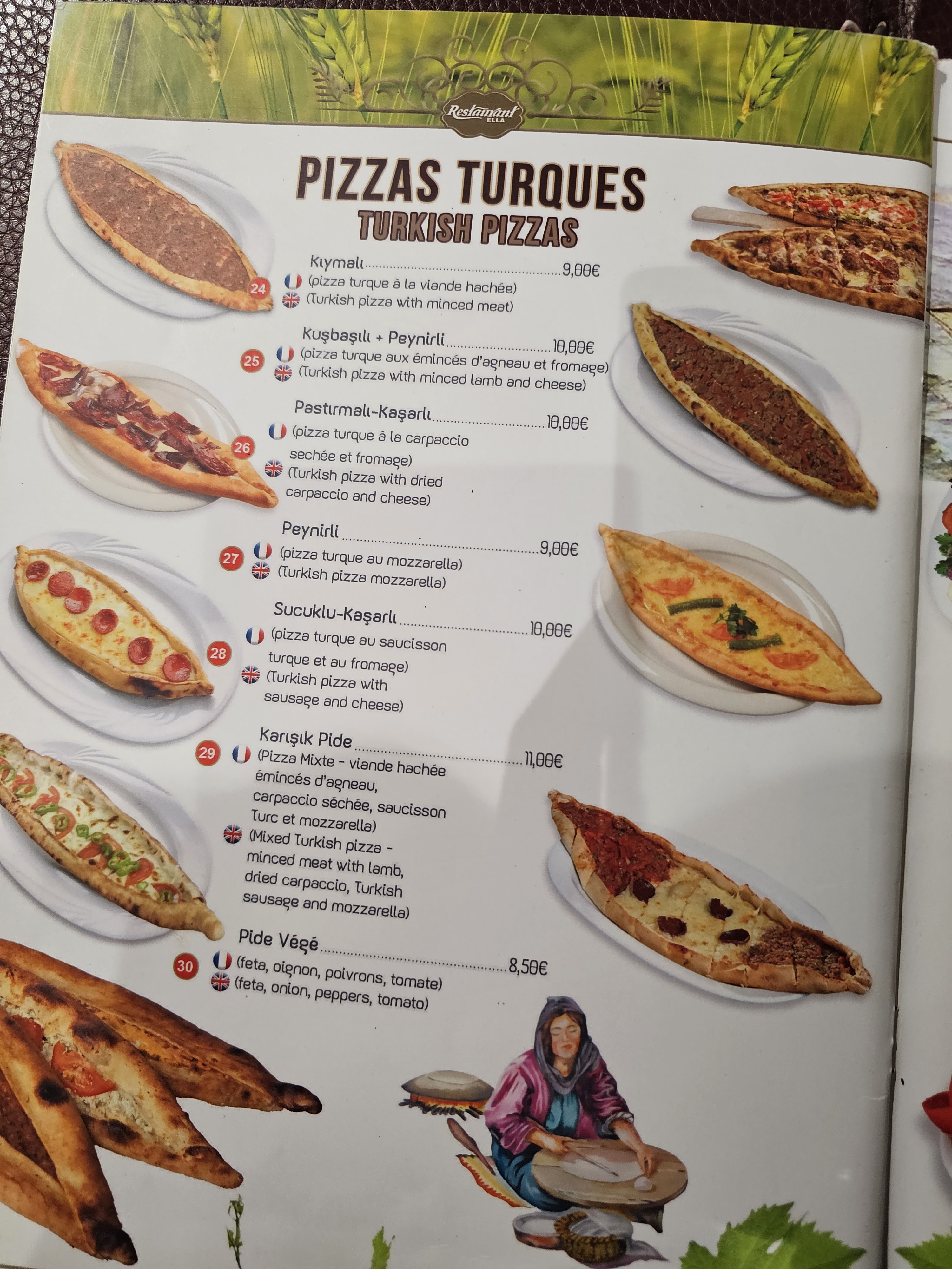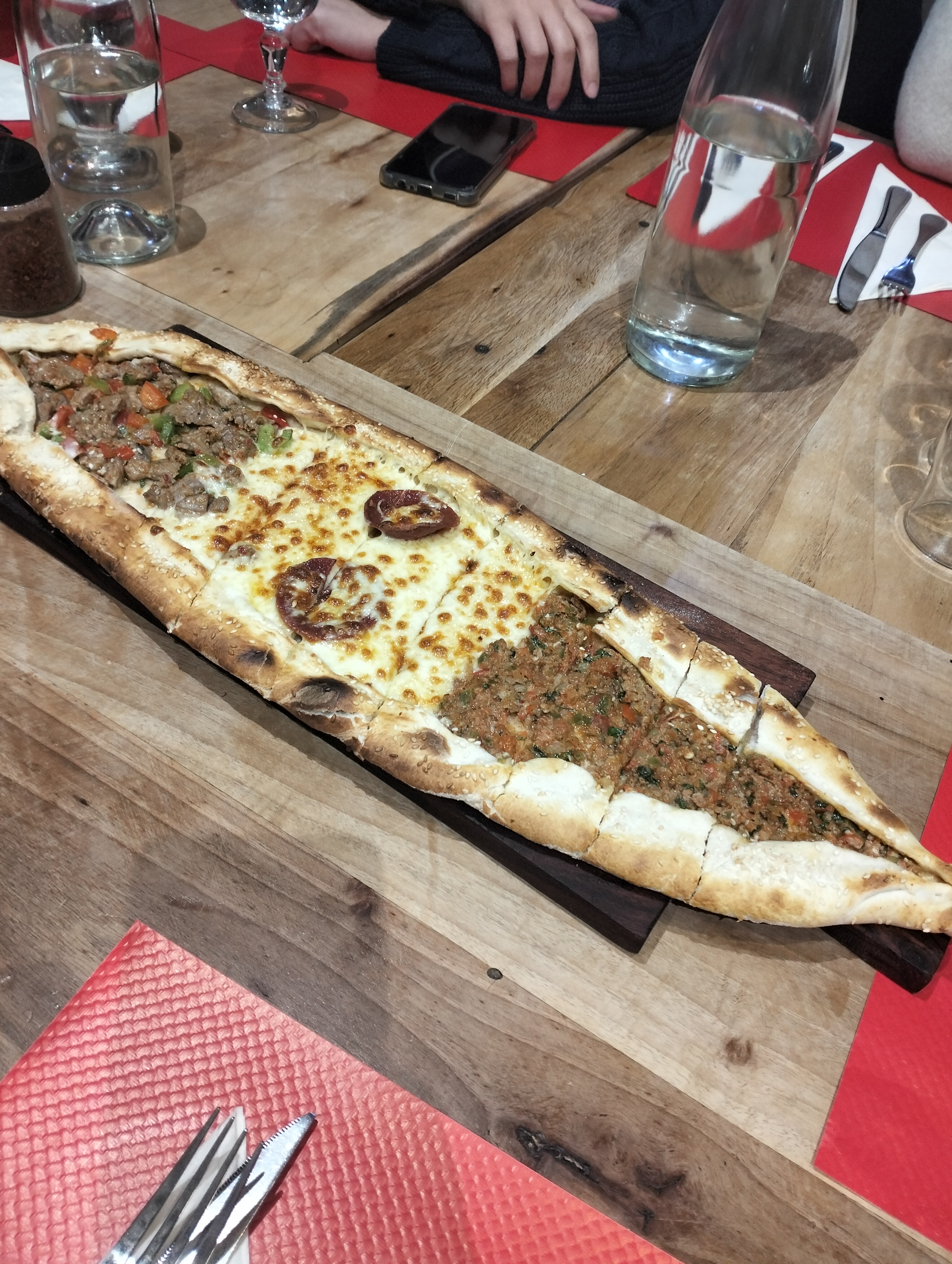 Ça faisait bien longtemps que je n'avais pas mangé une pizza turque et j'en avais gardé un très bon souvenir. Déception ici avec une pâte molle au centre, qui manquait de cuisson et gorgée d'eau. Dommage le cadre et le service sont plutôt bien.