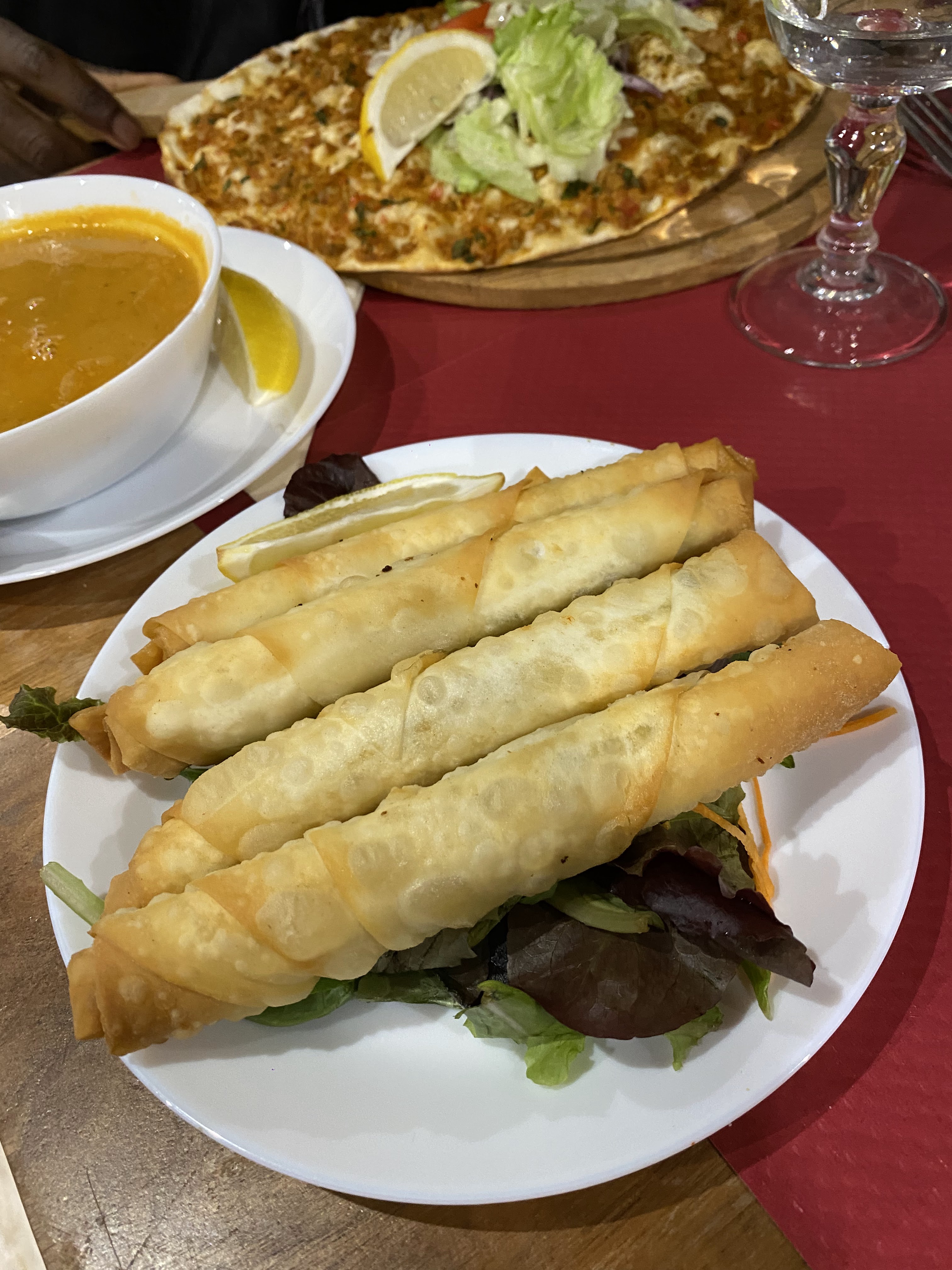 J'ai pris une soupe aux lentilles et une assiette de grillades variées c'était excellent ! Impossible de partir sans goûter le dessert signature appelé kunafa c'était un pur délice 🤩