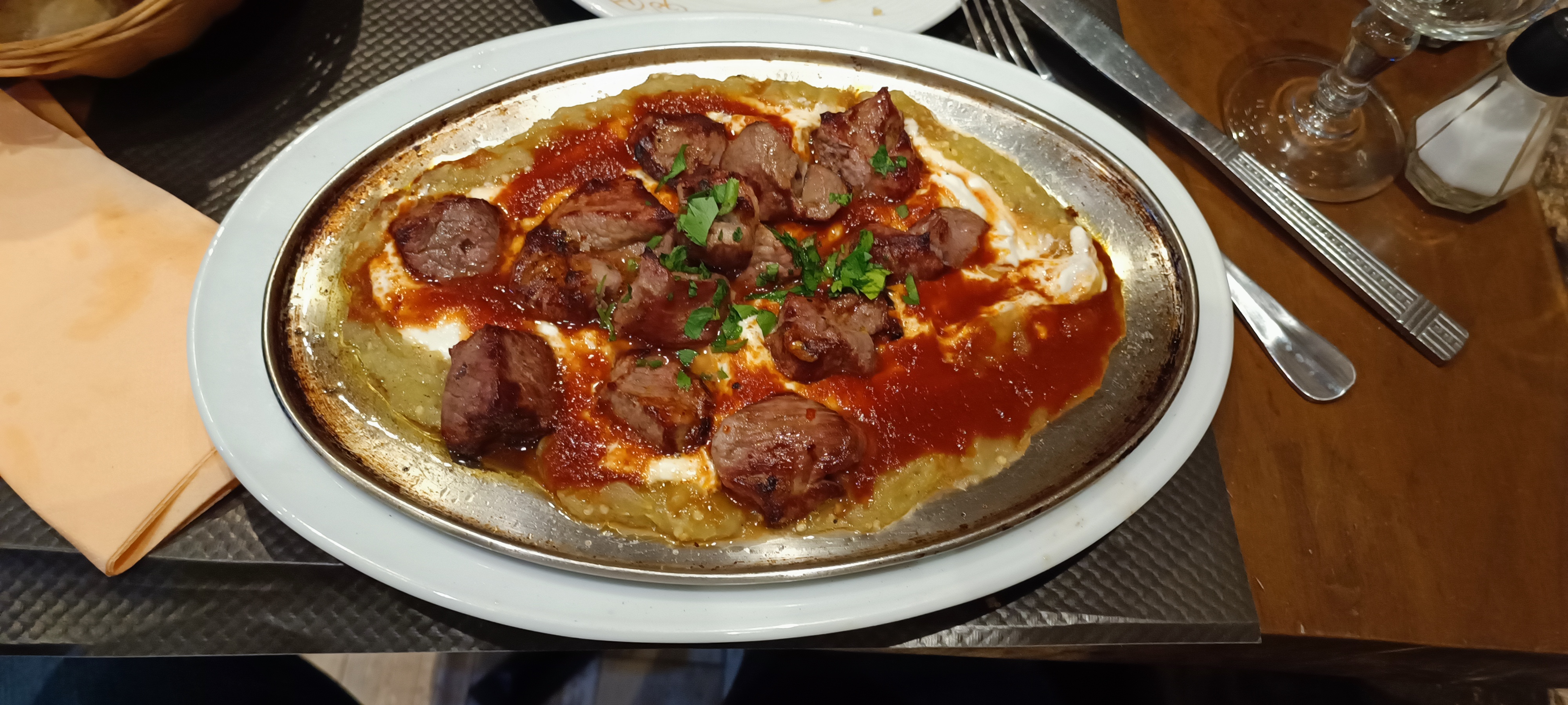 visité ce jour en dîner suite à une video tiktok nous voulions tester, bon accueil , installation rapide, prise de commande rapide et le service aussi, il dispose d'une grande salle , ce restaurant enregistre un beau taux de fréquentation, les plats étaient copieux et bons (yogurtlu sis, ali nazik) . moyenne de prix : 20€/plat , l'entrée à 7€50 , les thés nous ont été offerts.