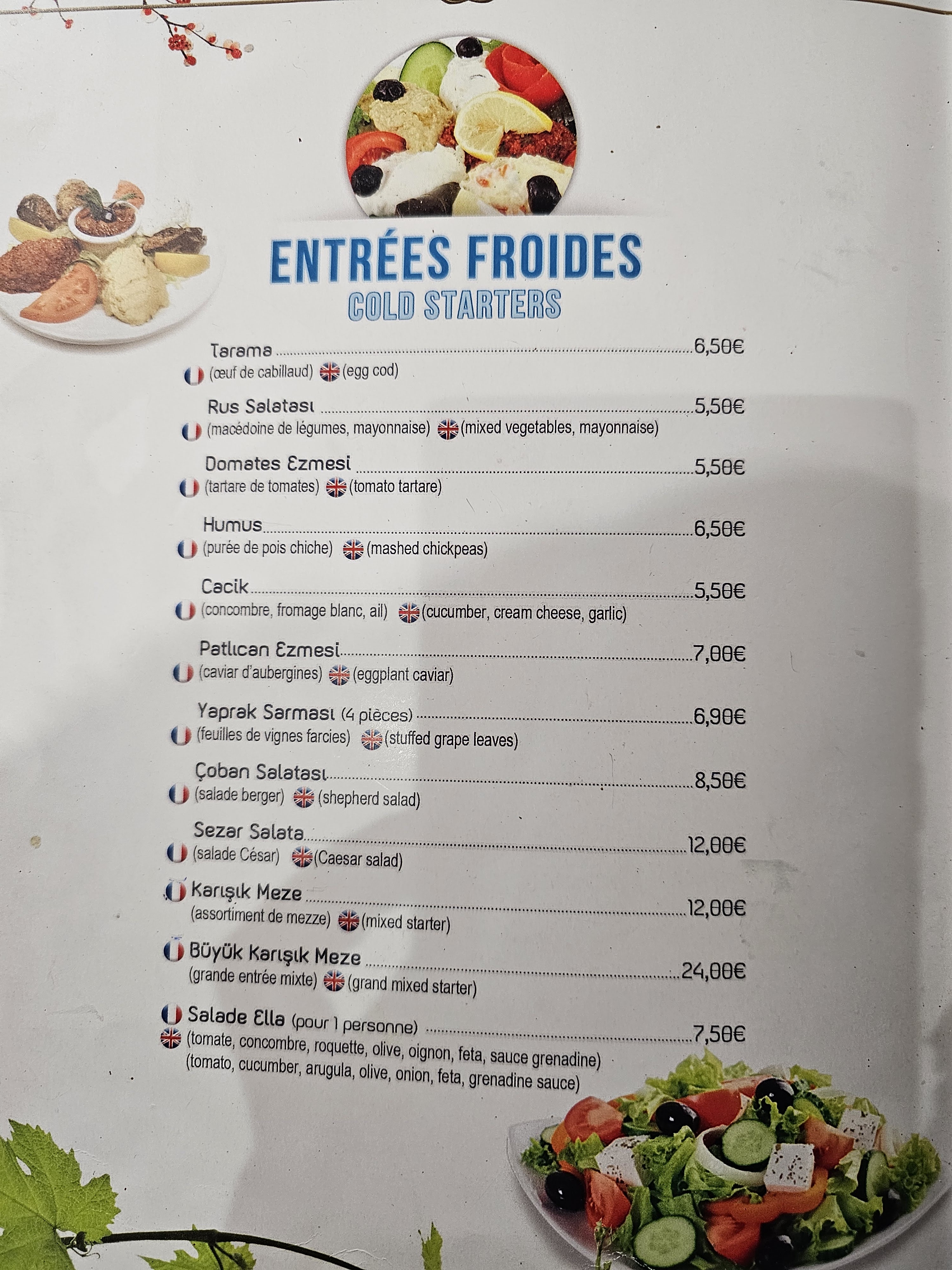 Bonjour J’ai mangé là-bas il y a deux jours, soit le 17/03/2022 je suis resté cloué au lit pendant 2 jours avec vomissement…. Intoxication alimentaire violente Les produits ne sont pas de qualité et assiette très peu garni seulement deux accompagnement au lieu de 3 dans tout les autres restaurant turques…. Ceci dit je suis très réconforté par mon commentaire puisque je ne suis pas la première personne à avoir vomis. Mon conseil a fuir si vous voulez préserver votre santé
