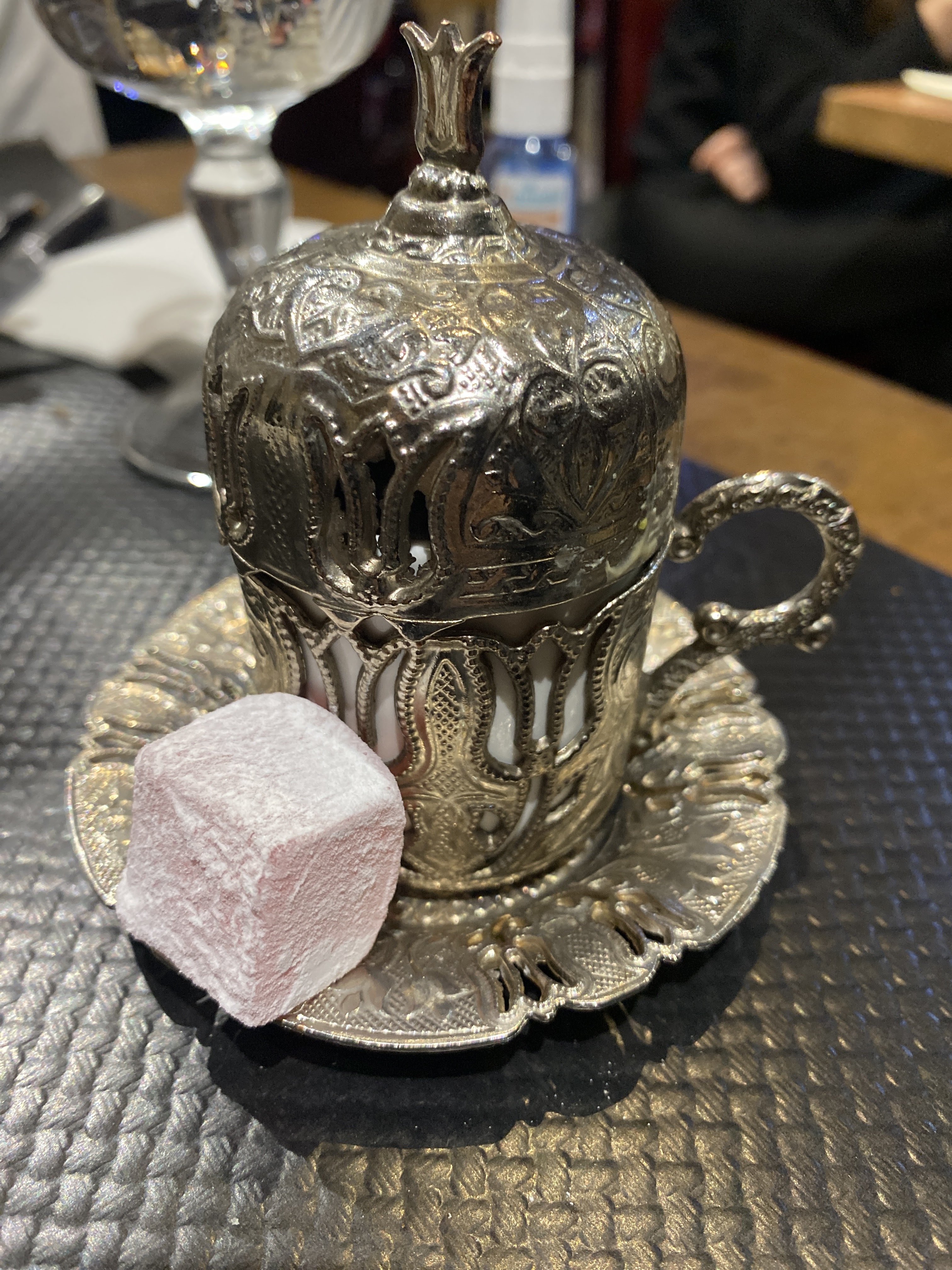 C’était une très belle expérience avec des collègues qui avaient hâte de tester les spécialités turques, les plats étaient très bons et copieux, le restaurant est très propre et l’ambiance générale avec la décoration est top. Seul bémol, la jeune serveuse fumait sa cigarette à l’entrée du restaurant lorsqu’on est arrivés, elle a fini par jeter son mégot devant nous devant l’entrée du restaurant, ce n’était pas joli à voir mais sinon nous avons été chaleureusement accueillis par la gérante et l’équipe. Bonne continuation !