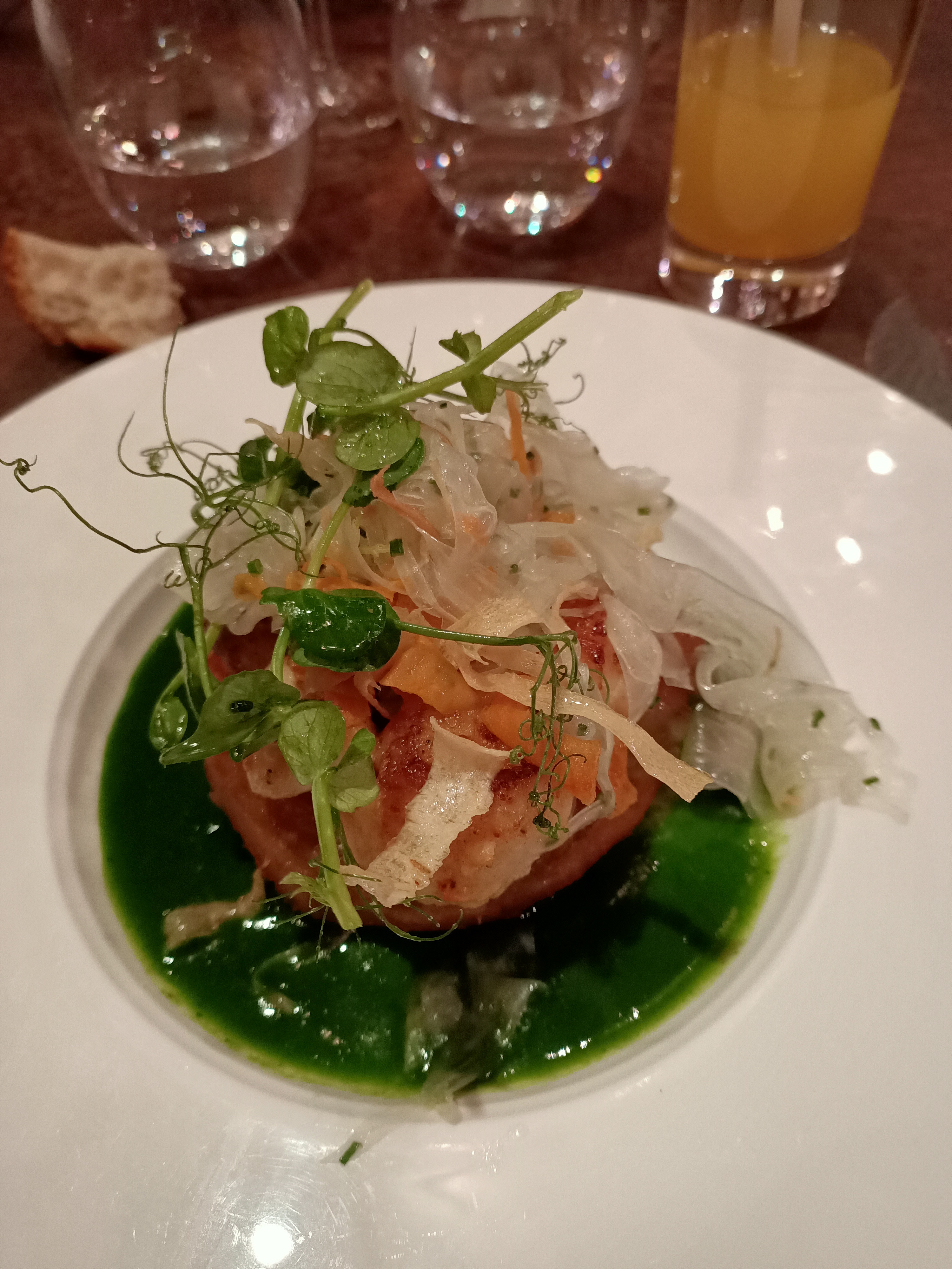 Restaurant avec un cadre agréable , assiettes très jolies et bien garnies . Très fin