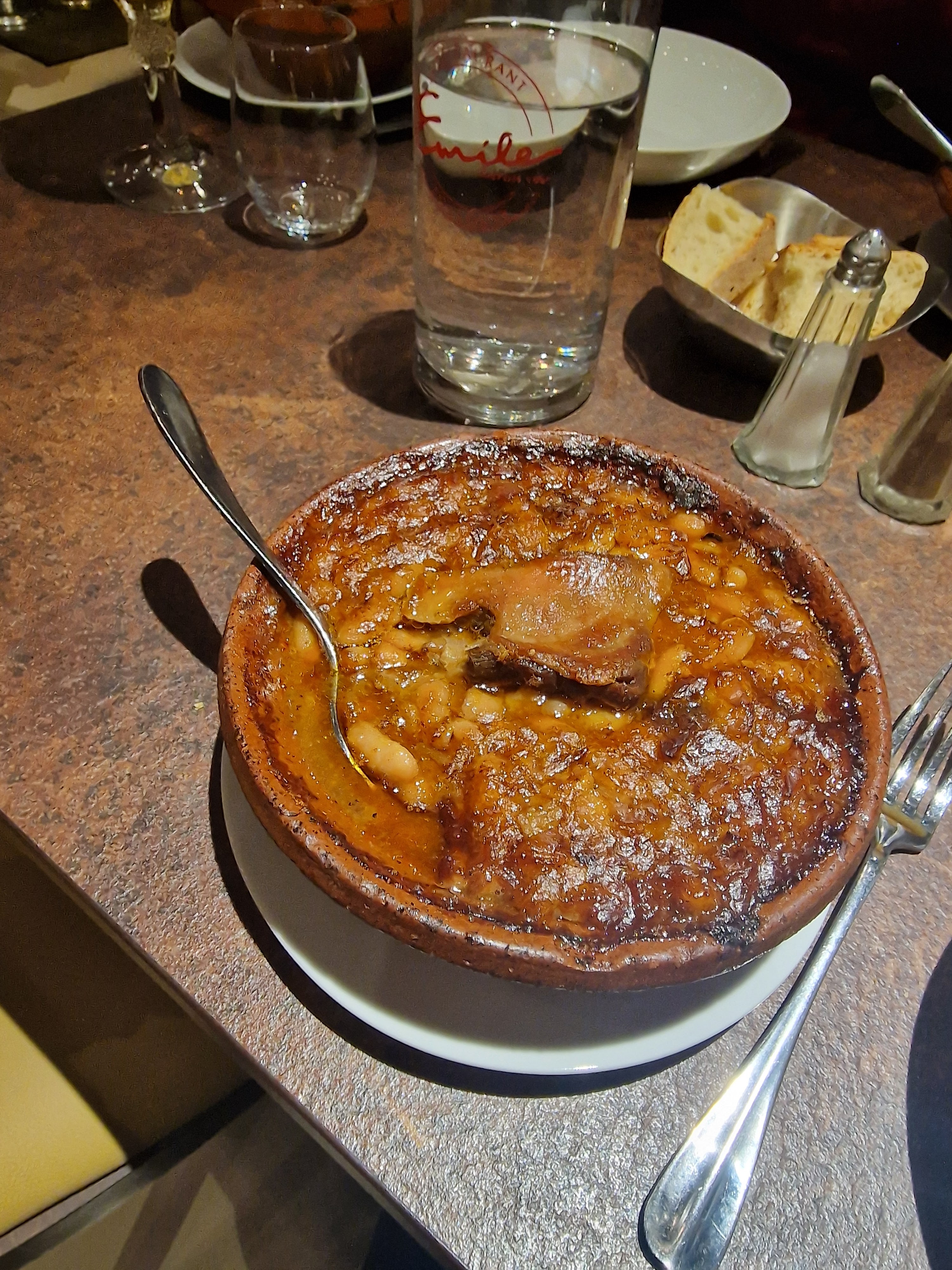Champion du monde en ….2017 L’eau a coulé depuis le long de la Garonne et vomi dans les dégueuloirs du Pont Neuf Car le cassoulet que j’ai mangé n’était pas celui que j’attendais…. Un plat médiocre même pas à la hauteur d’une bonne cantine d’entreprise…. J’dis ça parce que il y a plus de cinquante ans le chef cuistot de mon lycée faisait un cassoulet du tonnerre …. Ne mérite vraiment pas ces éloges en particulier ceux des guides . Chez Emile …. Chez Emile …