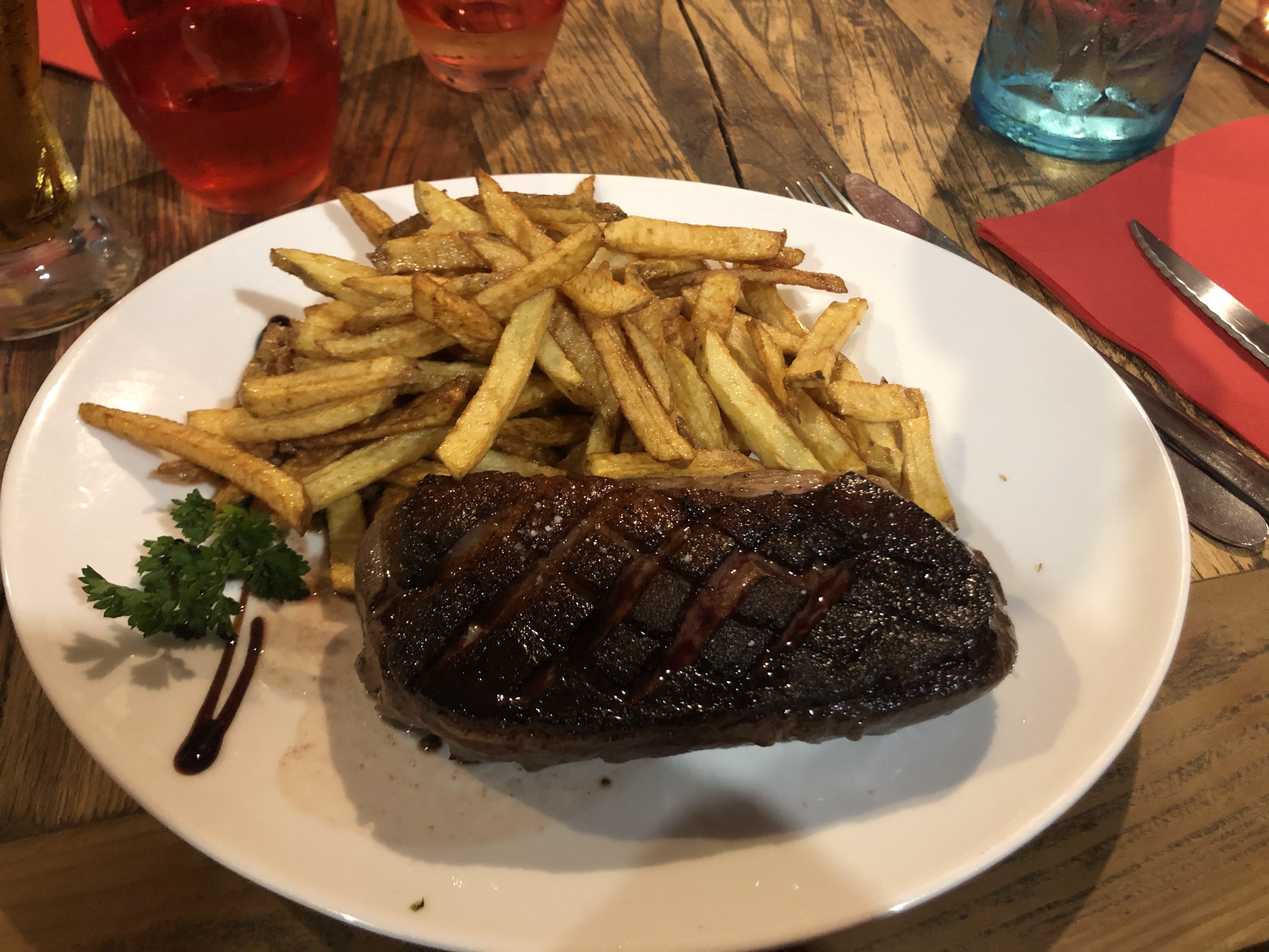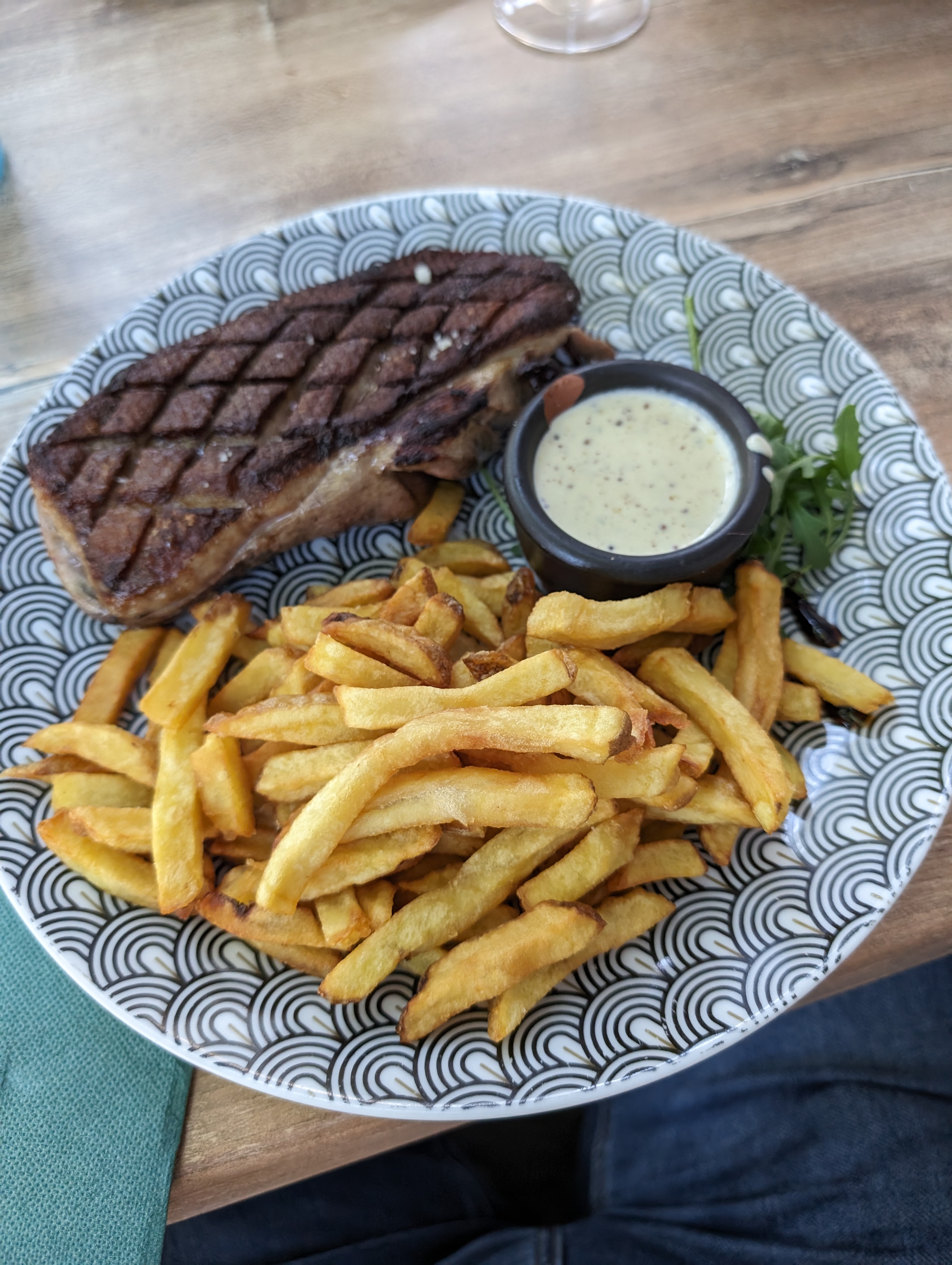 Nous avons passée un très bon moment, bon accueil et des serveuses très polie. Ma fiancé a pris une entrecôte avec frites, et moi un burger, malheureusement ne mangeant pas de porc j’ai pas pu manger mon plat, rien est précisée dans les menus, si il y a du porc ou non .. Essayer d’avoir un minimum de précisions..