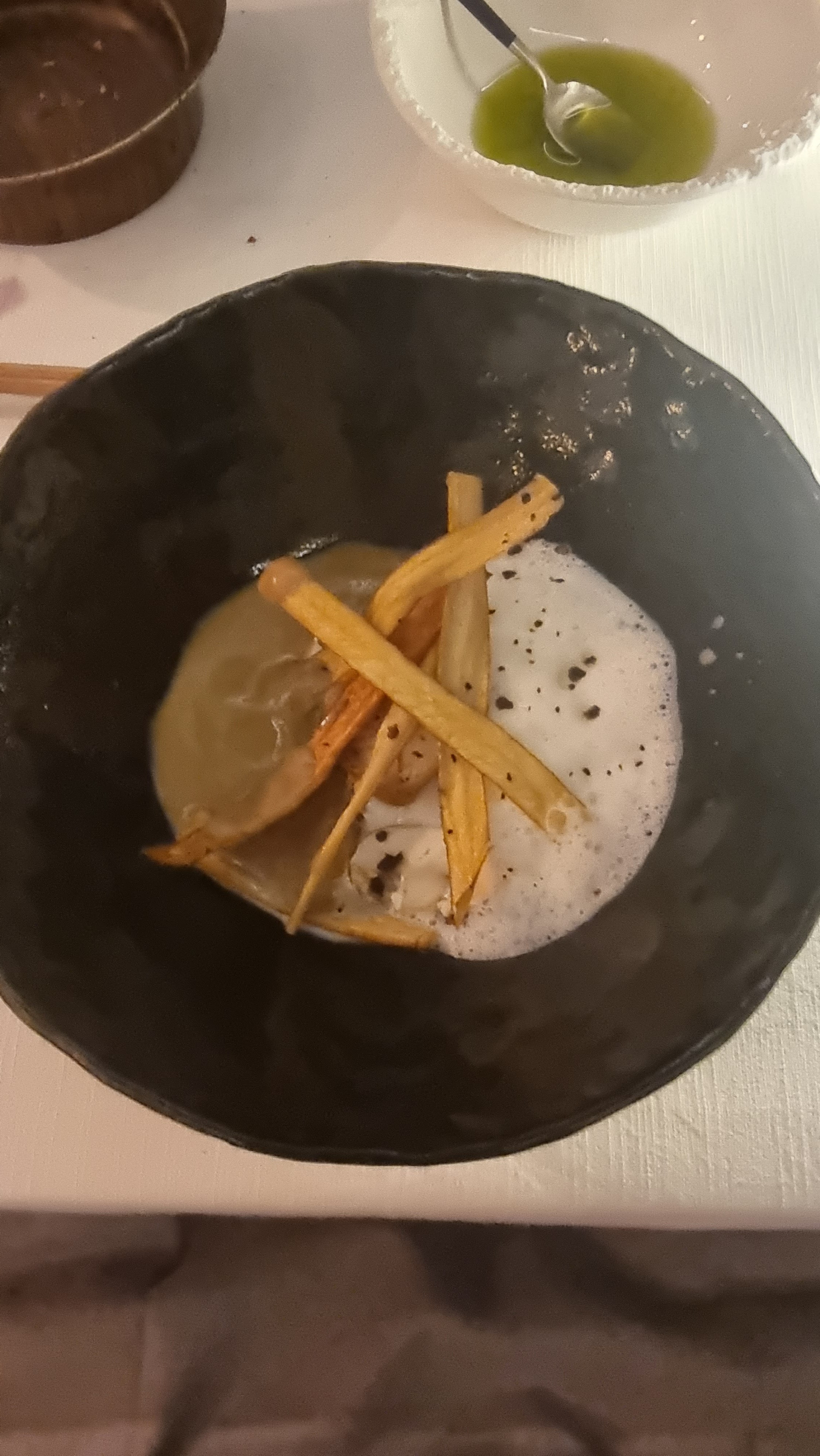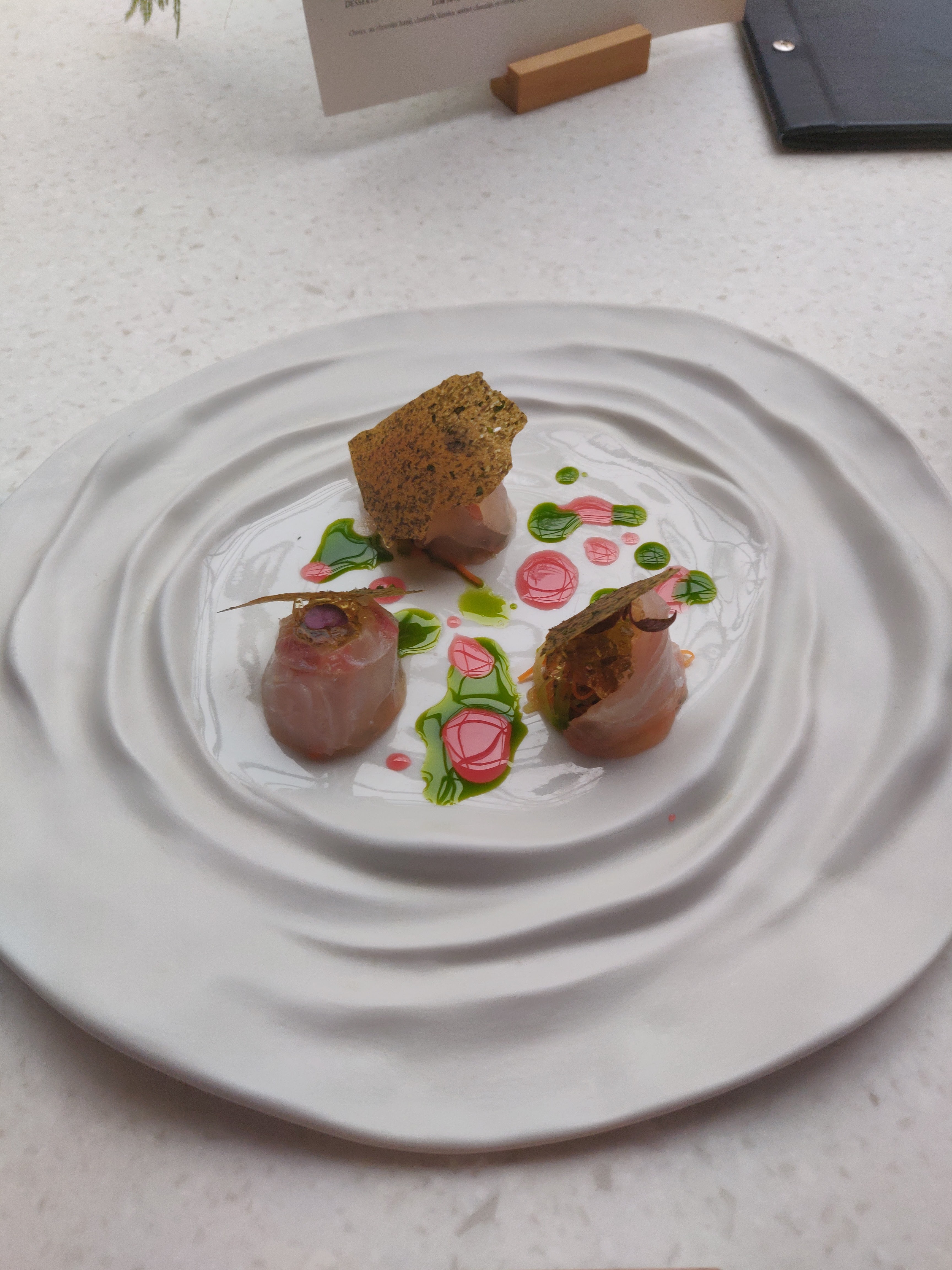Une cuisine magnifique aussi bien dans l'assiette que dans la finesse de la vaisselle de présentation. Une expérience très conseillée et qui dépasse de loin certains 1 étoile parisien dans lesquels nous avons dîné. N'hésitez pas ce restaurant mérite d'être découvert.