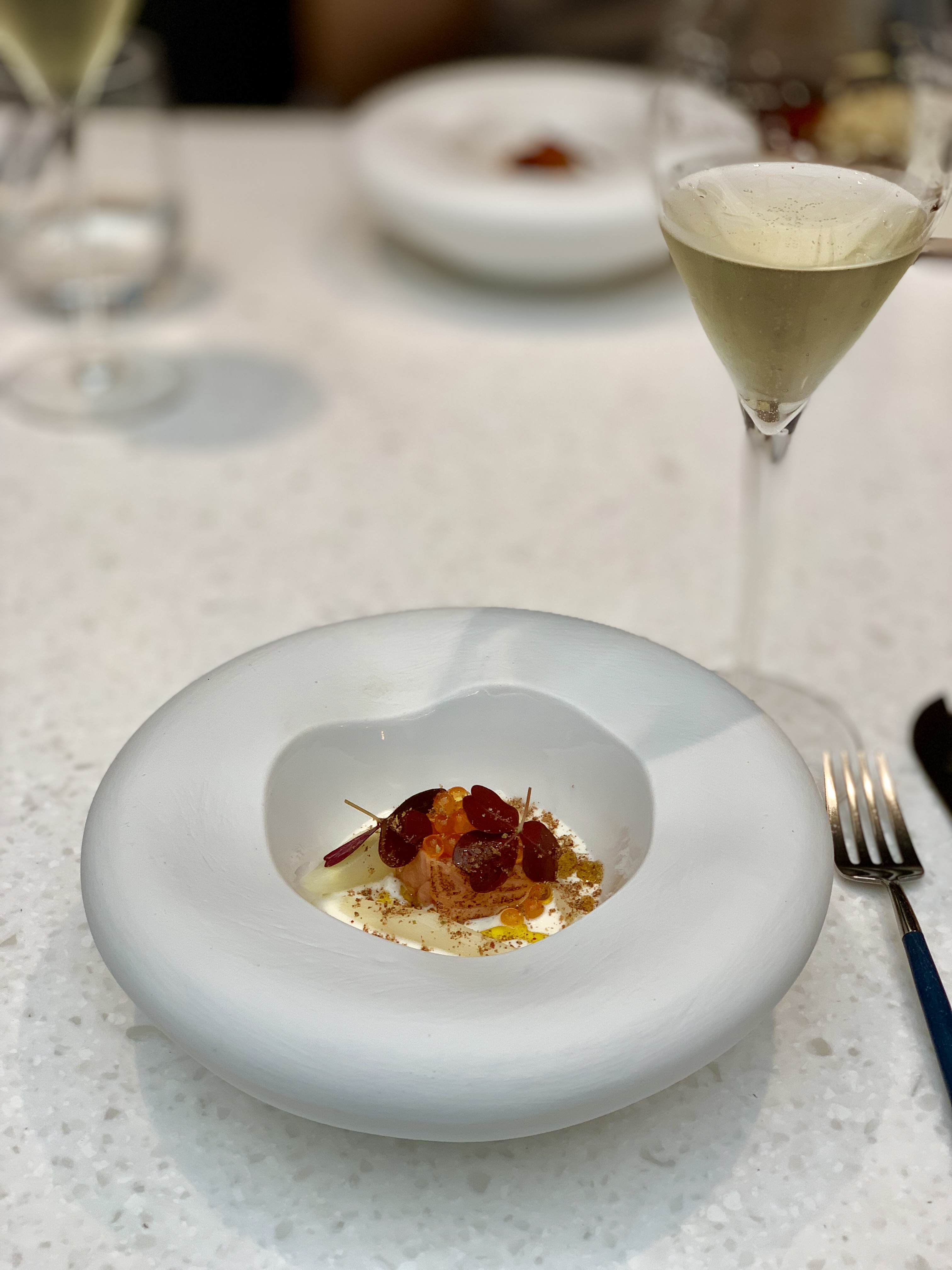 Meilleure expérience culinaire de ma vie. Chaque plat était une explosion de saveur avec un équilibre incroyable. Ayant choisi l'option mets et vins, j'ai aussi été impressionné par l'expertise des sommeliers qui ont su trouver l'alliance parfaite. Le cadre ainsi que l'équipe était toute aussi agréable. J'ai passé grâce à vous un très beau moment. Et un dernier merci pour la petite pâtisserie anniversaire