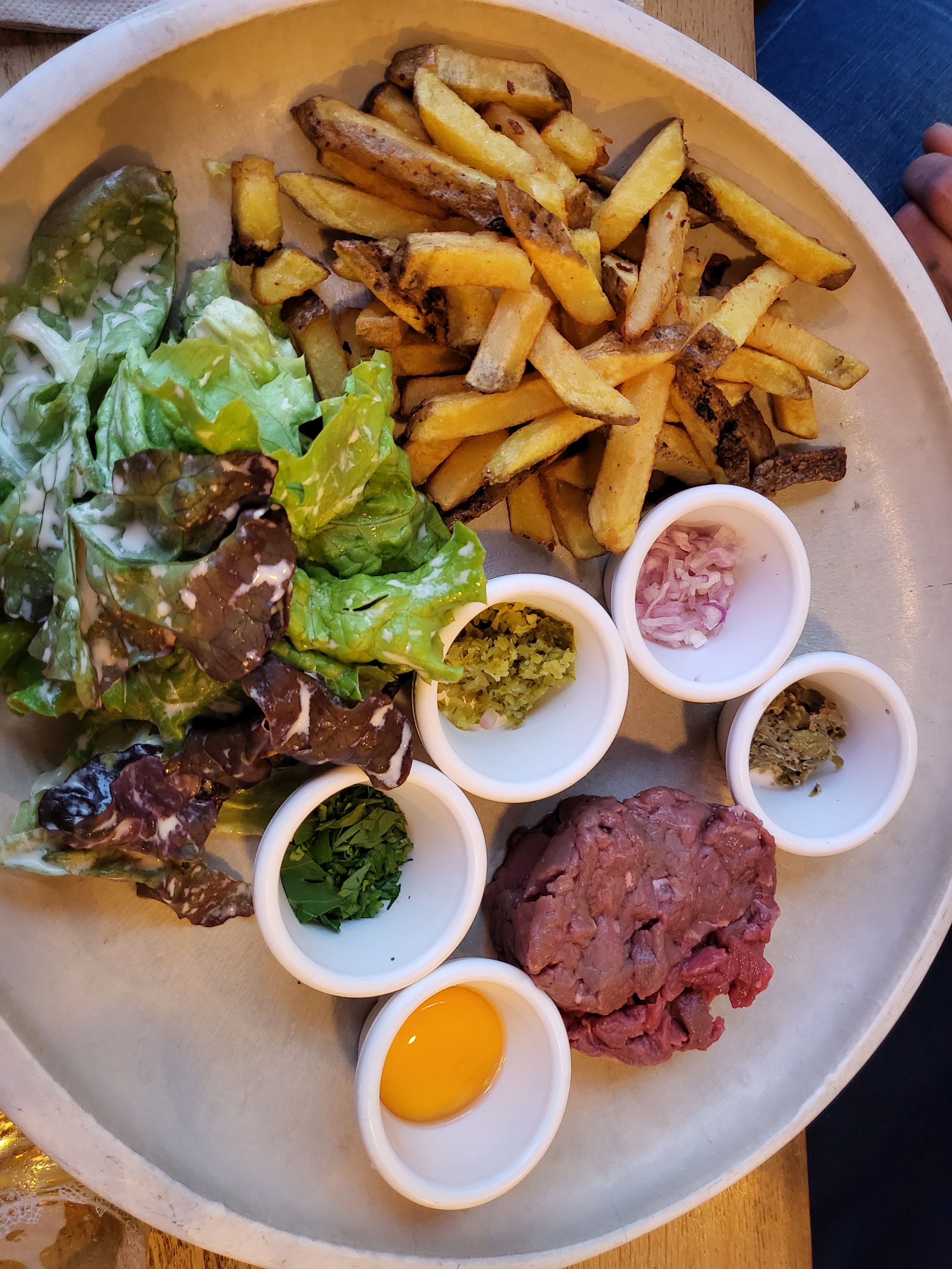 Très bon bistrot. Tout est bon et frais, des plats simples mais délicieux. Amateurs de steak tartare allez-y !