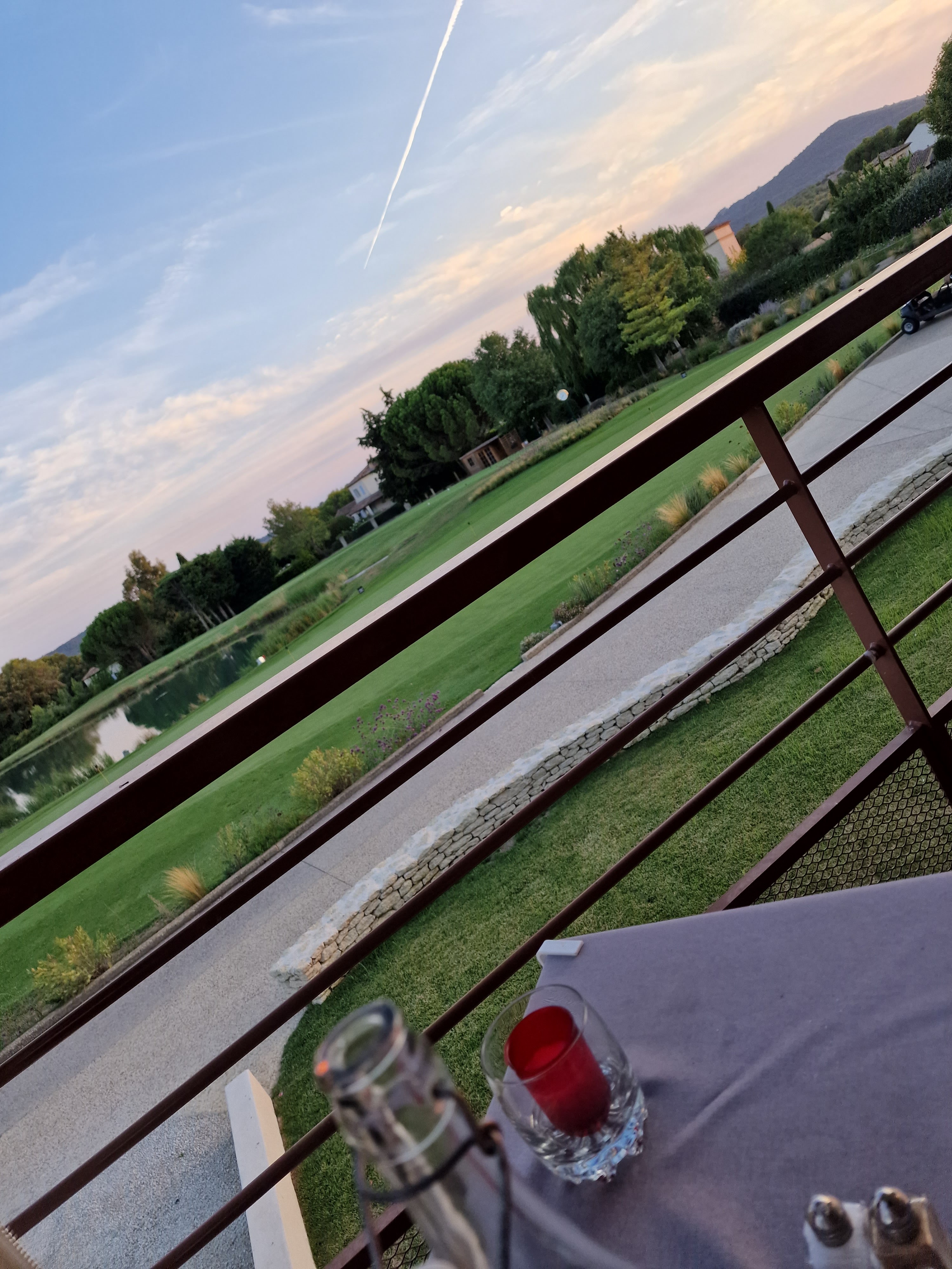 Le cadre: magnifique avec vue sur petit étang, Green de golf et magnifique couché de soleil. Accueil : Tout dependra de la serveuse qui vois accueille, Sandrine adorable, courtoise et de bon conseils, la 2eme ne connait aucune formule de politesses... La cuisine : Les plats sont bons mais ne méritent pas leurs prix au vue des quantités servie... 1 salade dans un petit bol 19 euros, 5 saint Jacques sans coraux et 10 lamelles ultra fines de courgettes 32 euros ..Le tartare de bœuf est quant à lui correct en quantité et en prix 22 euros. La déception était très grande mais la seveuse Sandrine a su nous faire passer cette déception. ( j'espère d'ailleurs qu elle va mieux car elle s'était fait mal mais elle ne pouvait pas quitter le service pour se faire soigner, mieux que du professionnalisme c'est la passion .) Conclusion : Nous y sommes allez par recommandation, mais la nous n y retournerons plus. A ce prix là nous attendons un sevice de irréprochable, et de qualité. J espère simplement que c'était le mauvais soir et que le reste du temps c'est mieux, mais nous nous y risquerait plus.