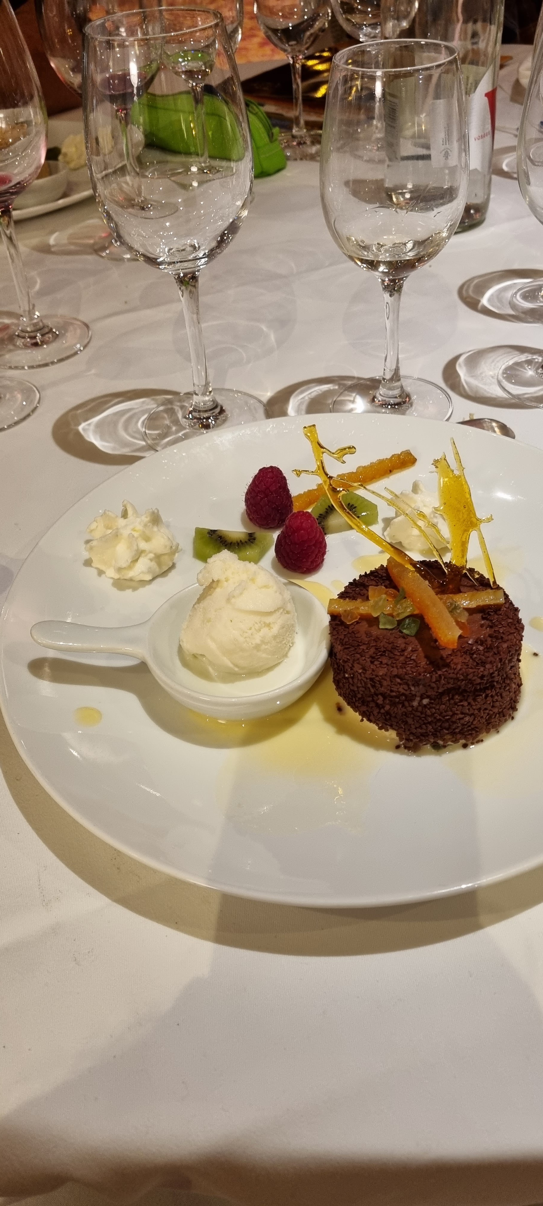 Parfait très bonne soirée personnel bien le personnel devrait servir les dames en première et ranger mieux leurs desserte