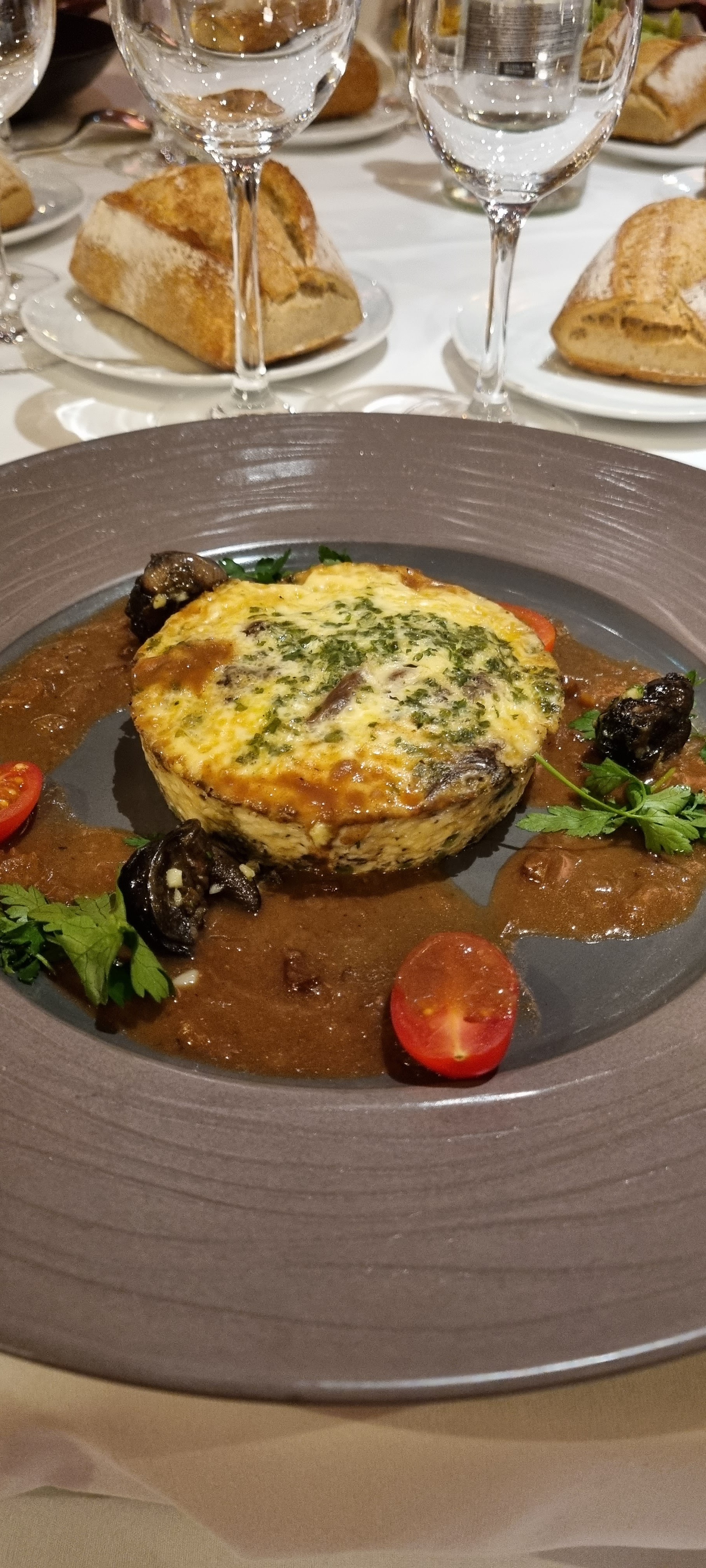 Entre le clafoutis d'escargot aux pleurotes, le magret de canard au cassis noir chutney aux raisins sucre roux et la douceur riz au lait fruits confits, mon ventre (et aussi mon cœur) balance ! Eh bien, j'ai tout pris et j'ai tout apprécié 🤭