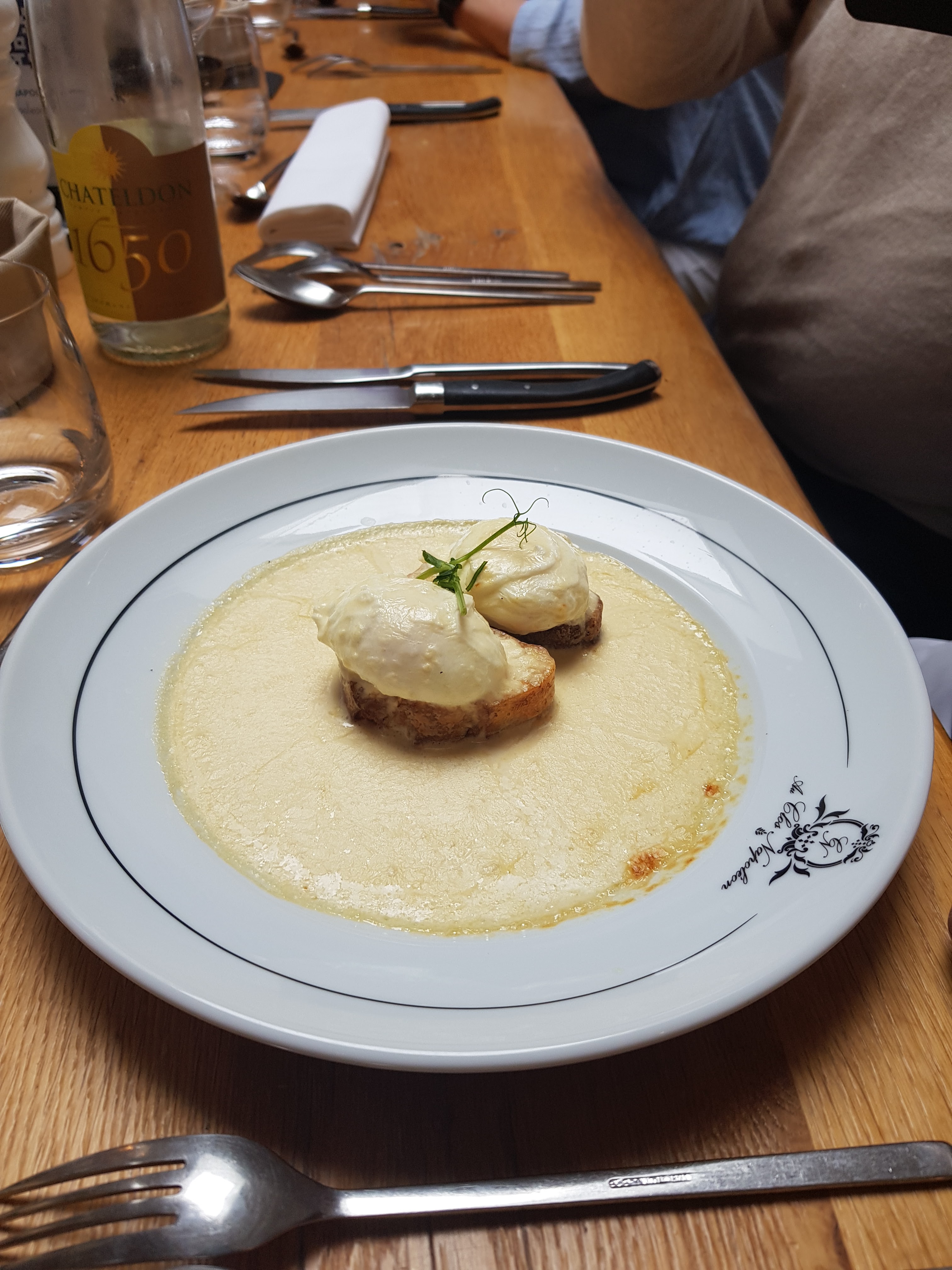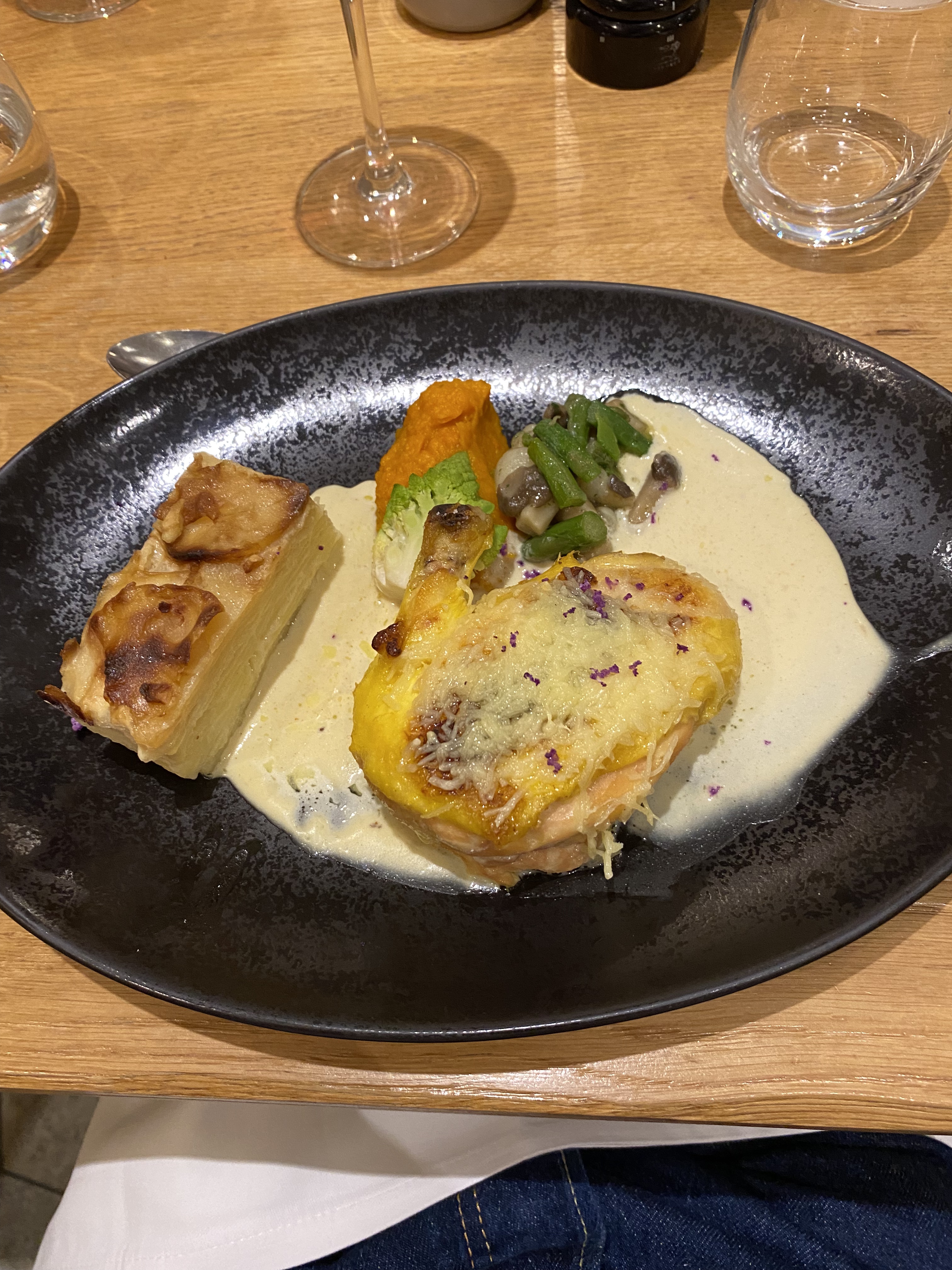 La présentation du plat n est pas digne de ce type de restaurant, et la sauce époisse peux mieux faire.... Aumoniere par contre très bonne, jambon persillé également. Dessert moyen. Accueil correct.