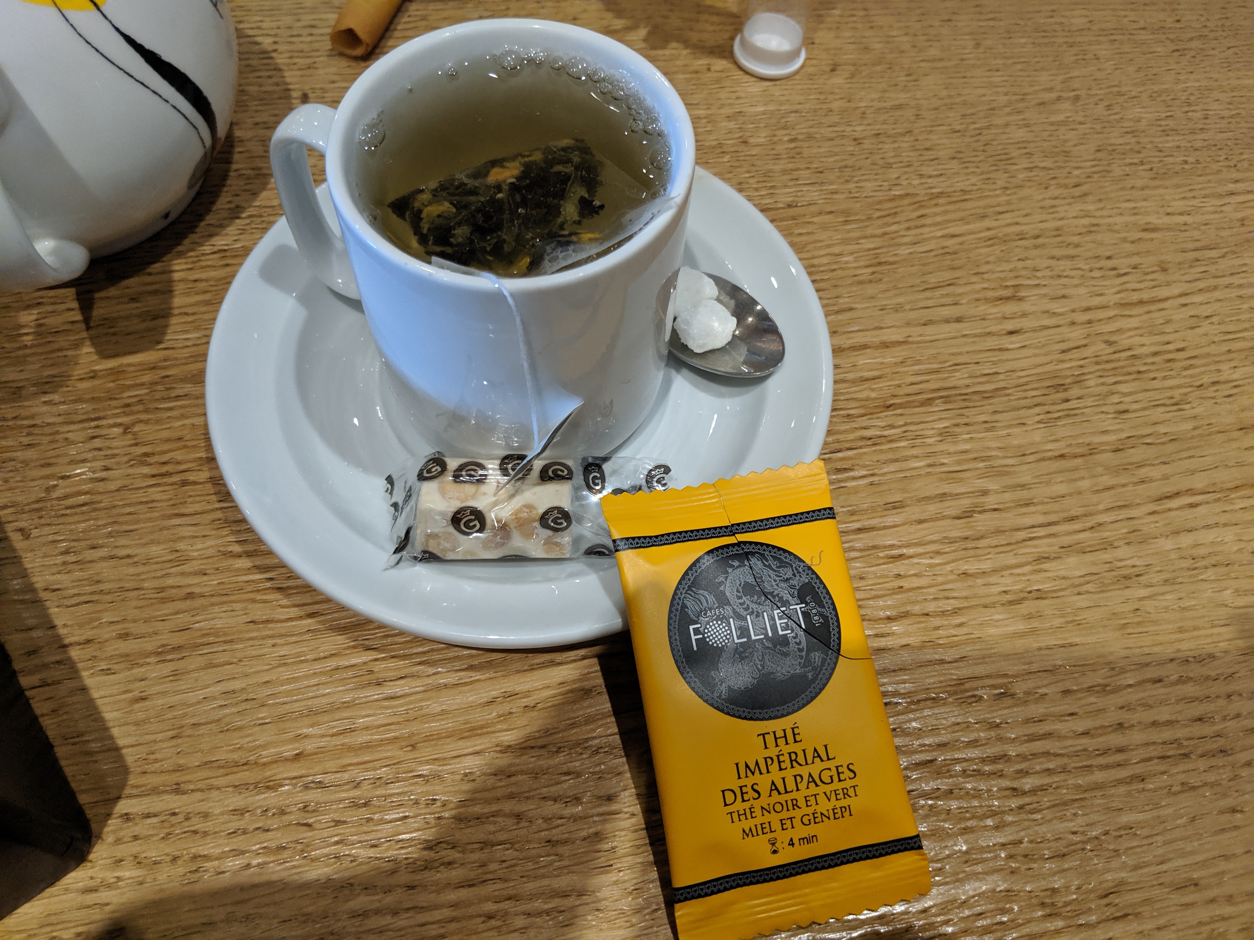 Nous sommes arrivés à 9 au lieu de 8 et j avais prévenu à 17h de ce changement. Nous sommes arrivés 8 couverts au lieu de 9. Il a fallu attendre le service pour nous apporter le 9ème couvert. Pain rassi, il faut demander plusieurs fois de l eau. Nous avons pris des menus et 2 personnes choix à la carte. Le serveur nous dit qu il repassera pour le choix des desserts des choix à la carte. Il n est jamais repassé. Du coup les copines n avaient plus envie de prendre un dessert. Les plats froids, on nous vend une tartelette au citron et nous avons un moelleux praliné recouvert d une basique crème au citron et quelques noisettes. Et pour finir au départ le serveur si classe pendant le service avait revêtu son sweet. Bref très déçue. Je N y retournerai pas.